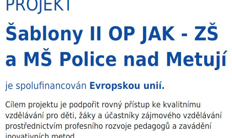 Projekt: Šablony II OP JAK - ZŠ a MŠ Police nad Metují