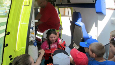 Zde nám záchranáři ukázali, s jakými pomůckami v terénu pracují, potěžkali jsme si jejich kombinovanou brašnu/batoh (2 v 1 J) se zdravotnickými potřebami, které berou s sebou na výjezdy a někteří žáci se nad tíhou až divili J…. Pan záchranář nám ukázal vybavení auta i téměř všechny důležité přístroje, vysvětlil nám, jak fungují a dokonce si někteří žáci mohli na vlastní kůži vyzkoušet, jaké to je ležet na lehátku a nechat si změřit své srdíčko, jak se ošetřují zlomené ruce apod… J. Také jsme byli svědkem zkoušky spojení s dispečinkem z Hradce Králové a nejenom to – dokonce jsme zažili i přímý výjezd jedné posádky záchranného auta. Exkurze nás všechny obohatila vědomostmi a všem záchranářům za zajímavé povídání moc děkujeme. . . . .