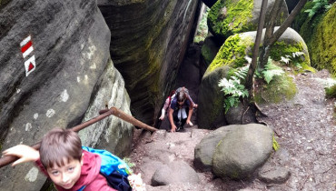 Večer se návštěvníci odebrali domů a páťáci pokračovali v programu ve třídě – soutěže ani ne tak o ceny jako o dobrou náladu, nechyběla noční stezka odvahy, spalo se pak v utichlé škole o to dobrodružněji. Po snídani k nám zase dorazili někteří rodiče, aby se přidali na výlet do skal. Bylo to celé jak jedna velká jízda, dojeli jsme bez úhony a průšvihu až do sobotního odpoledne, všichni velmi spokojení.
