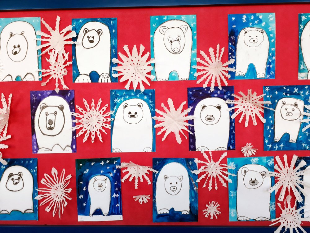 Zimou se nechali inspirovat i v hodinách estetiky. Navštívili také výstavu fotek Děti rýže. Podívejte se na naše fotky a výkresy.