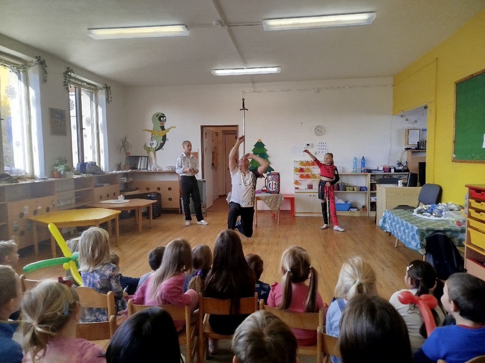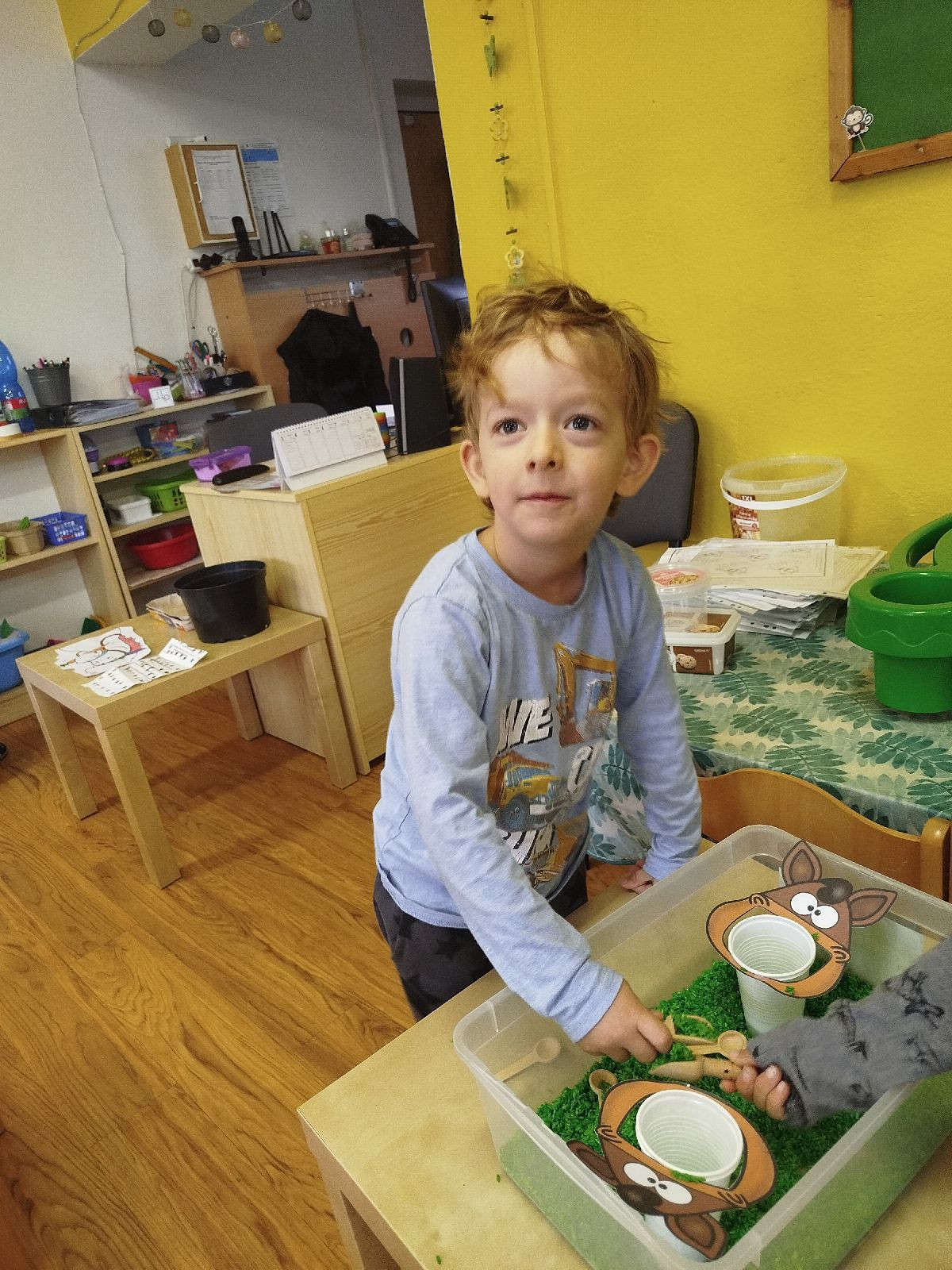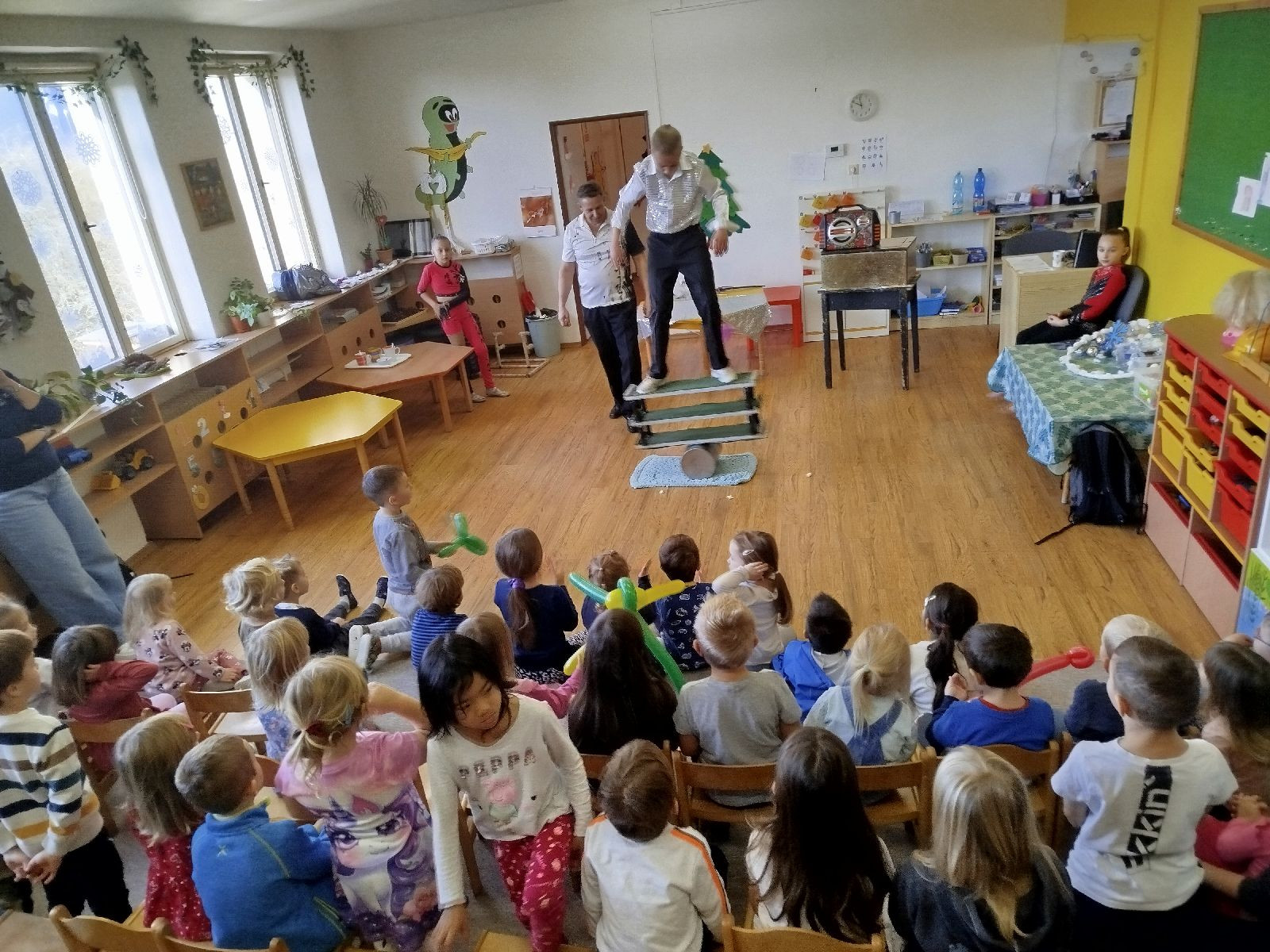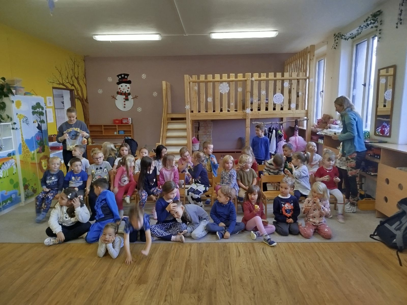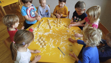 Na začátku listopadu jsme si povídali o sv. Martinovi, upekli si svatomartinské rohlíčky, zopakovali jsme si, co vše si na sebe oblékáme, když se venku ochlazuje. Udělali jsme si výlet do Hronova, do dětské herničky. Navštívil nás ve školce rodinný cirkus. Vyrobili jsme venkovní ozdoby na stromečky stojící na náměstí a poté je i zašli s paní knihovnicí nazdobit. Poslední pátek v tomto měsíci byl hračkový a pyžamový den jako symbol podpory vážně nemocným dětem.