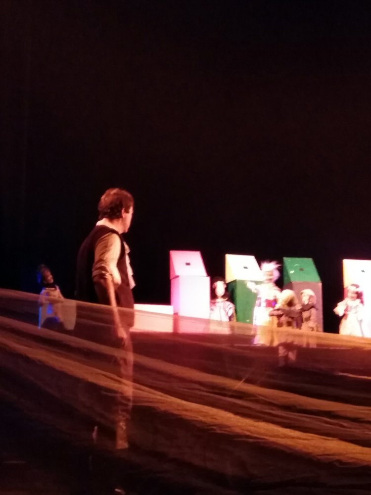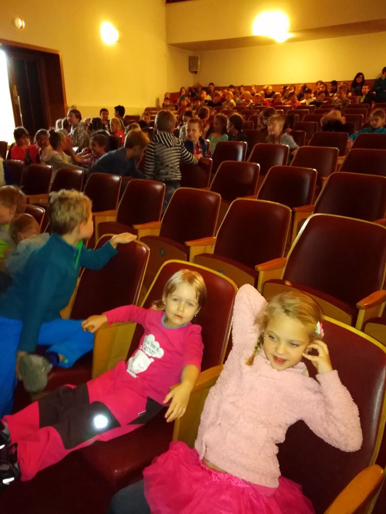 Děti se po skončení představení seznámily s loutkami i loutkoherci. Vše zakončilo společné focení na pódiu divadla.