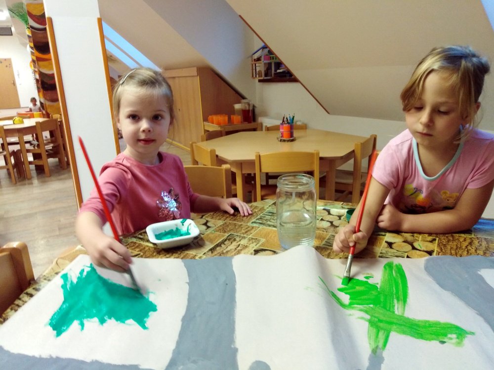 V září nás navštívila společnost Dotkni se křídel – děti poznávaly dravce, jejich způsob života, měly možnost si dravce i pohladit. Poslední týden jsme se zaměřili na naši vesnici, pozorovali jsme různé budovy, domovy svých kamarádů, ráz krajiny. Společně jsme si vyrobili plán vesnice. Září nám rychle uteklo! Co nejvíce jsme využívali pěkné počasí, často jsme odpoledne chodili na zahradu.