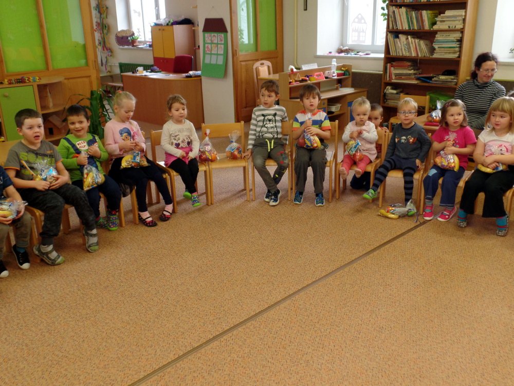 Tak jako každý rok i letos přišel do školky Mikuláš s čertem a andělem. Mladší děti přeskakovaly čertovu metličku, starší děti se zpovídaly ze svých hříchů a pověděly Mikuláši básničku. Všichnidostaly od andílka Mikulášskou nadílku. Nakonec jsme společně zazpívali čertí písničku.