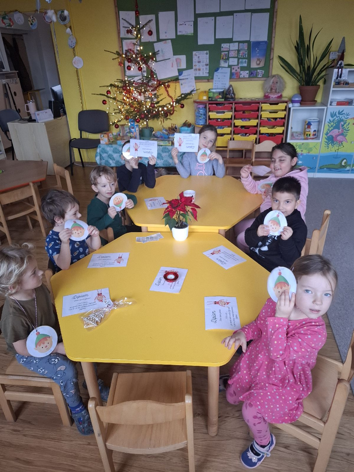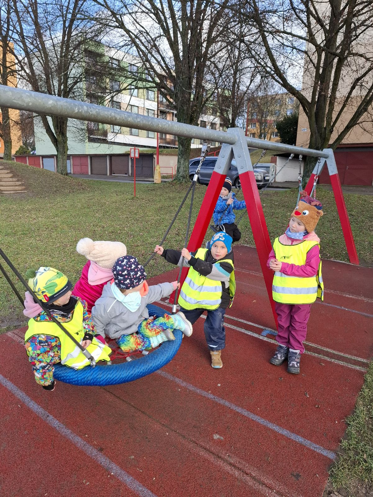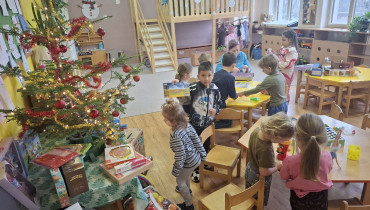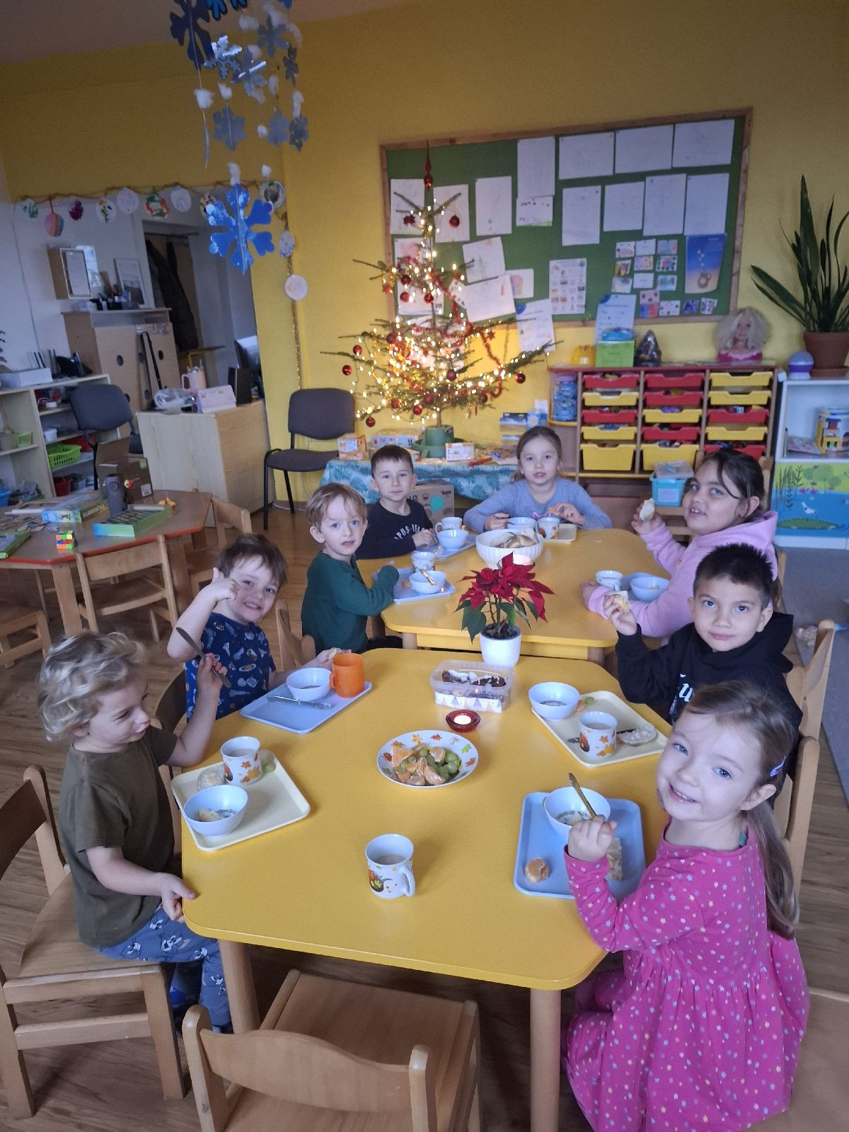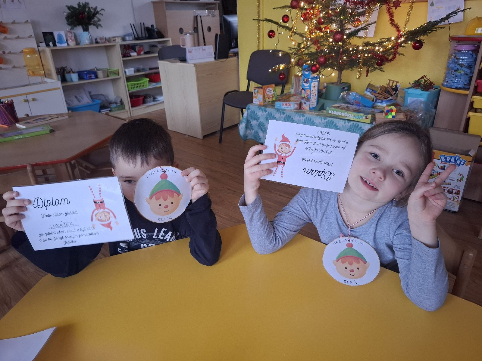 V prosinci k nám zavítal vánoční skřítek Elfík se svými každodenními úkoly. Povídali jsme si o Mikuláši-čertu-anděli, adventu a Vánocích. Udělali jsme si krásný čertovský den, který si náležitě užili. Začali jsme trénovat a péct perníčky na vánoční besídku pro rodiče. Navštívili jsme vánoční dílničky v Merkuru a vyrobili pro rodiče dárečky. Pak už jen netrpělivě vyhlíželi Ježíška, který nám nakonec nadělil spoustu krásných dárečků.