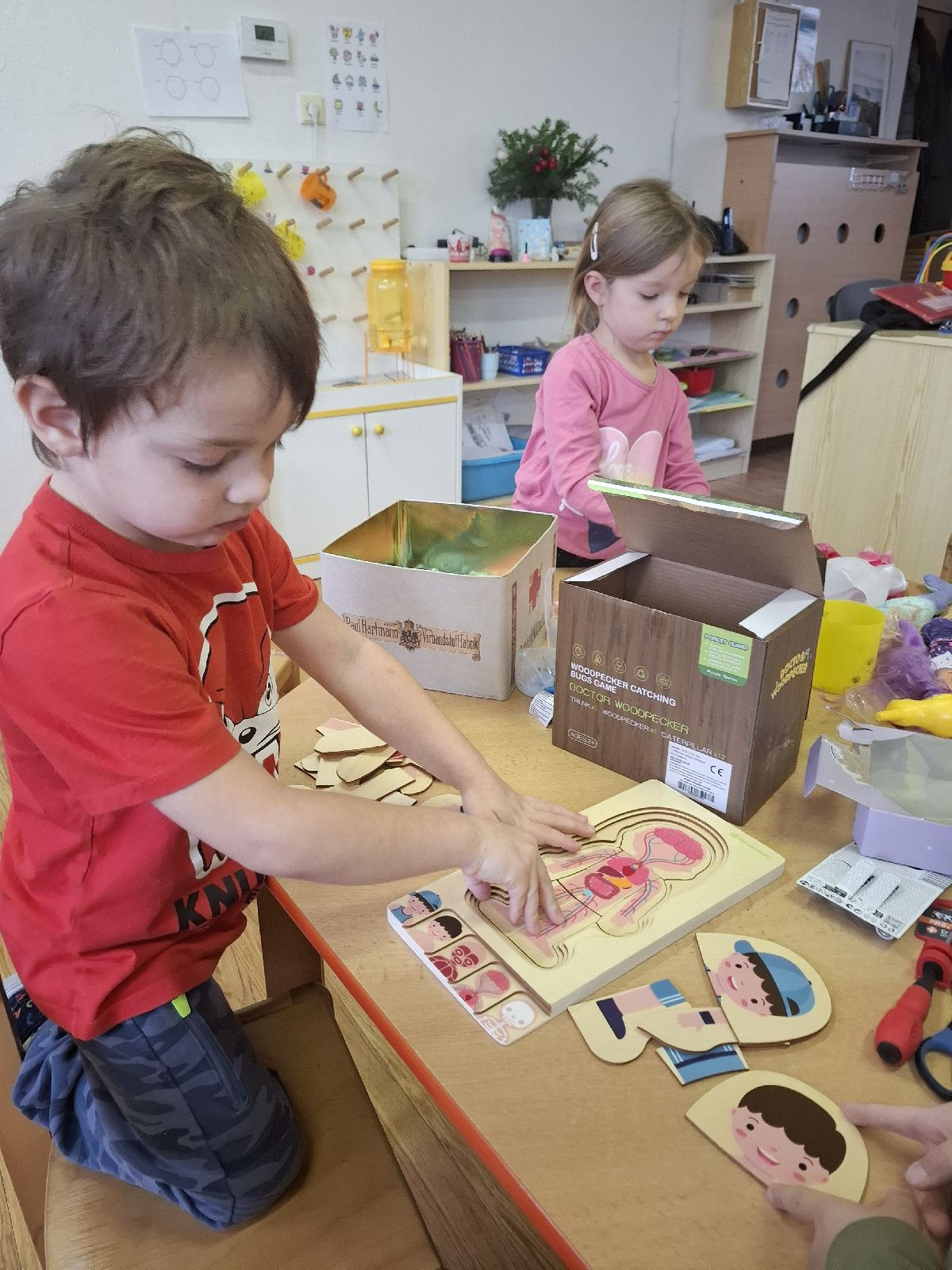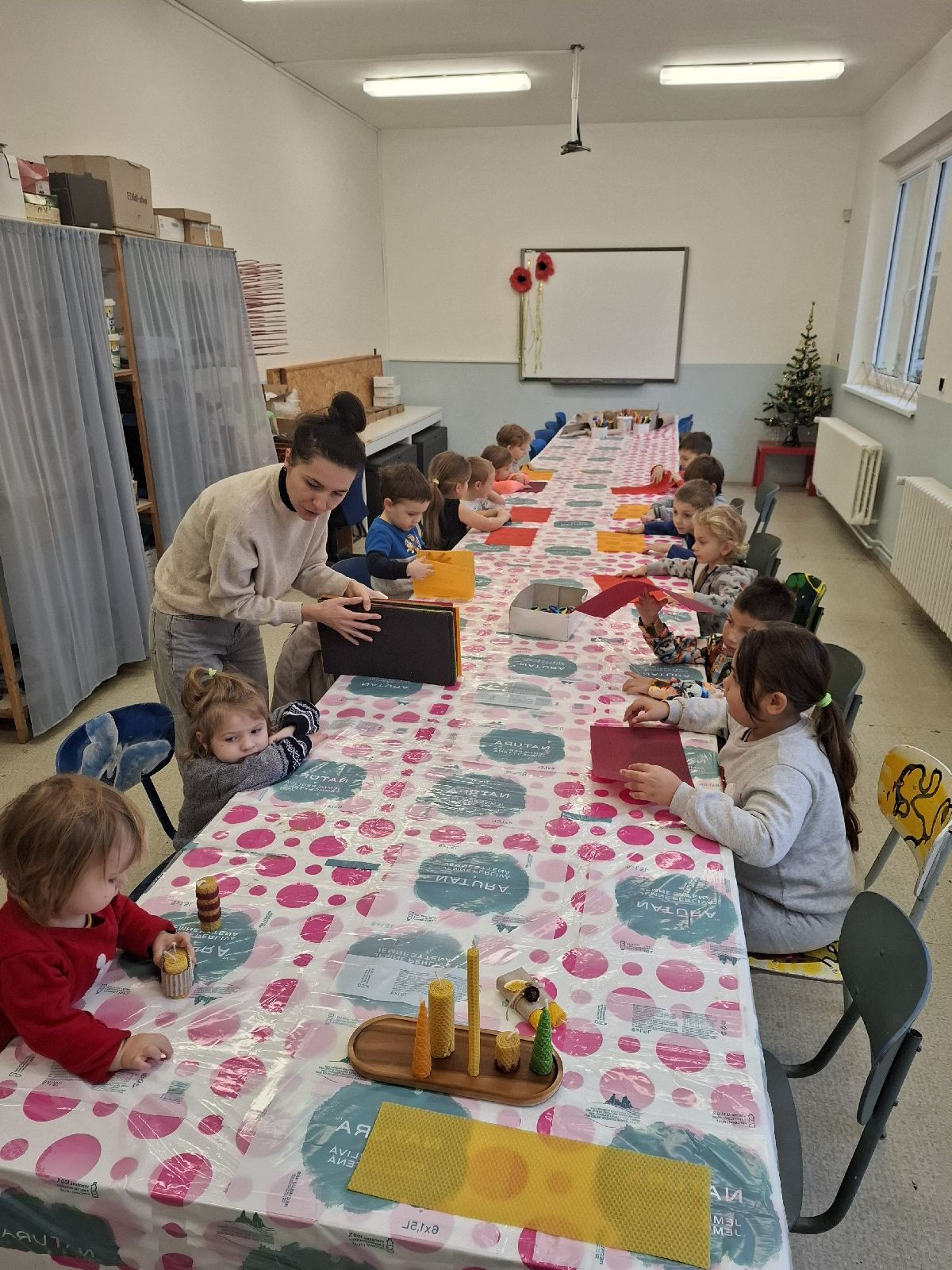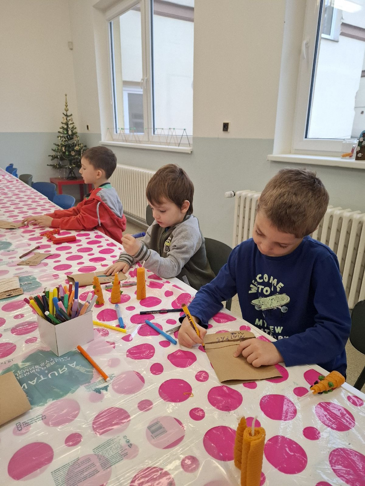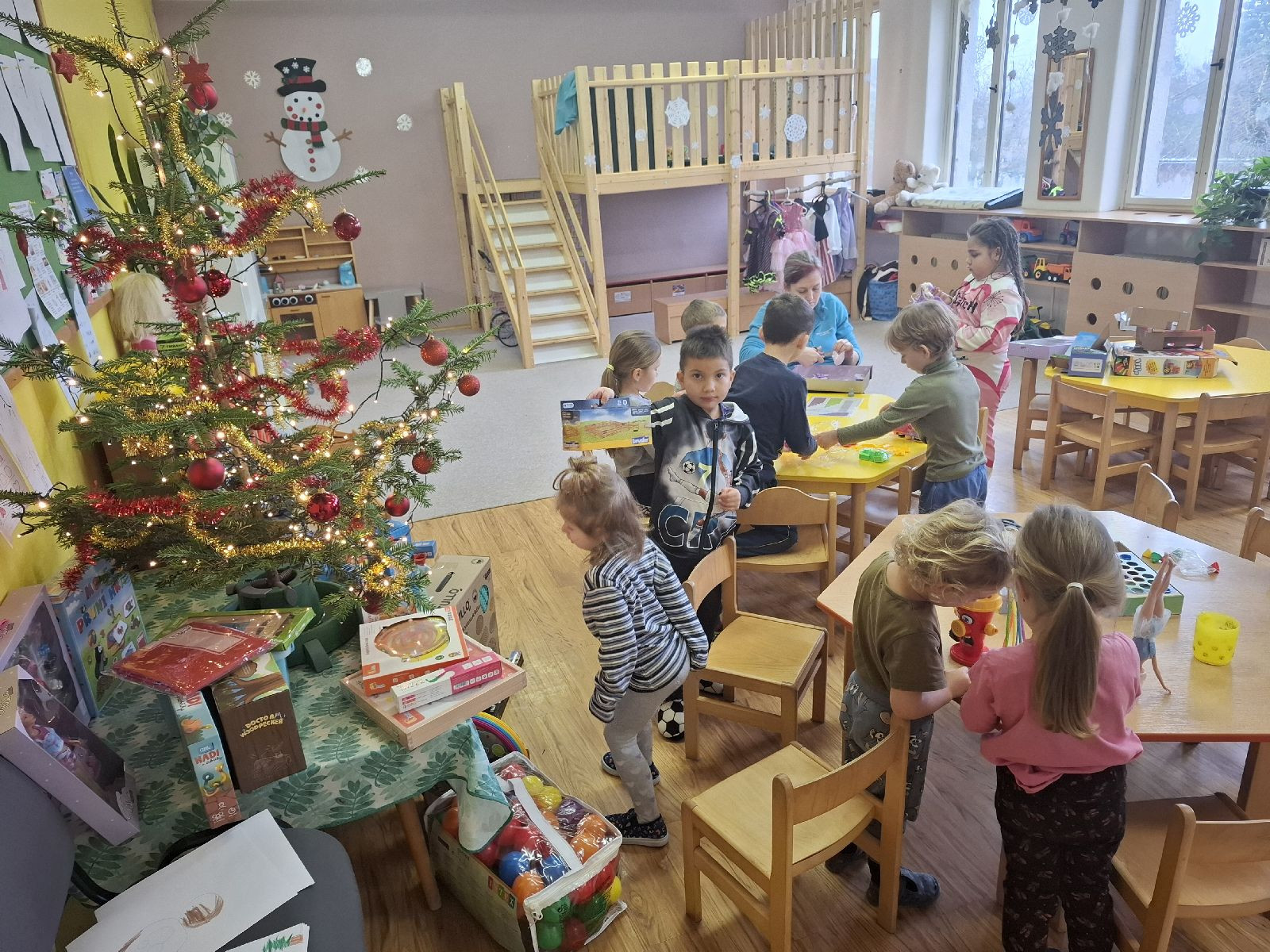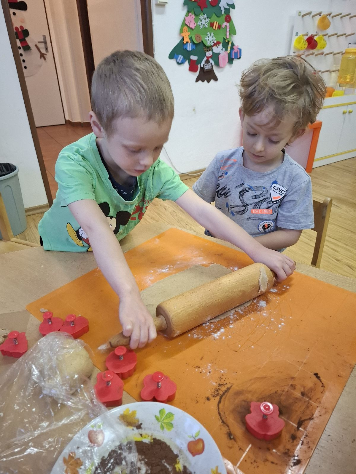 V prosinci k nám zavítal vánoční skřítek Elfík se svými každodenními úkoly. Povídali jsme si o Mikuláši-čertu-anděli, adventu a Vánocích. Udělali jsme si krásný čertovský den, který si náležitě užili. Začali jsme trénovat a péct perníčky na vánoční besídku pro rodiče. Navštívili jsme vánoční dílničky v Merkuru a vyrobili pro rodiče dárečky. Pak už jen netrpělivě vyhlíželi Ježíška, který nám nakonec nadělil spoustu krásných dárečků.
