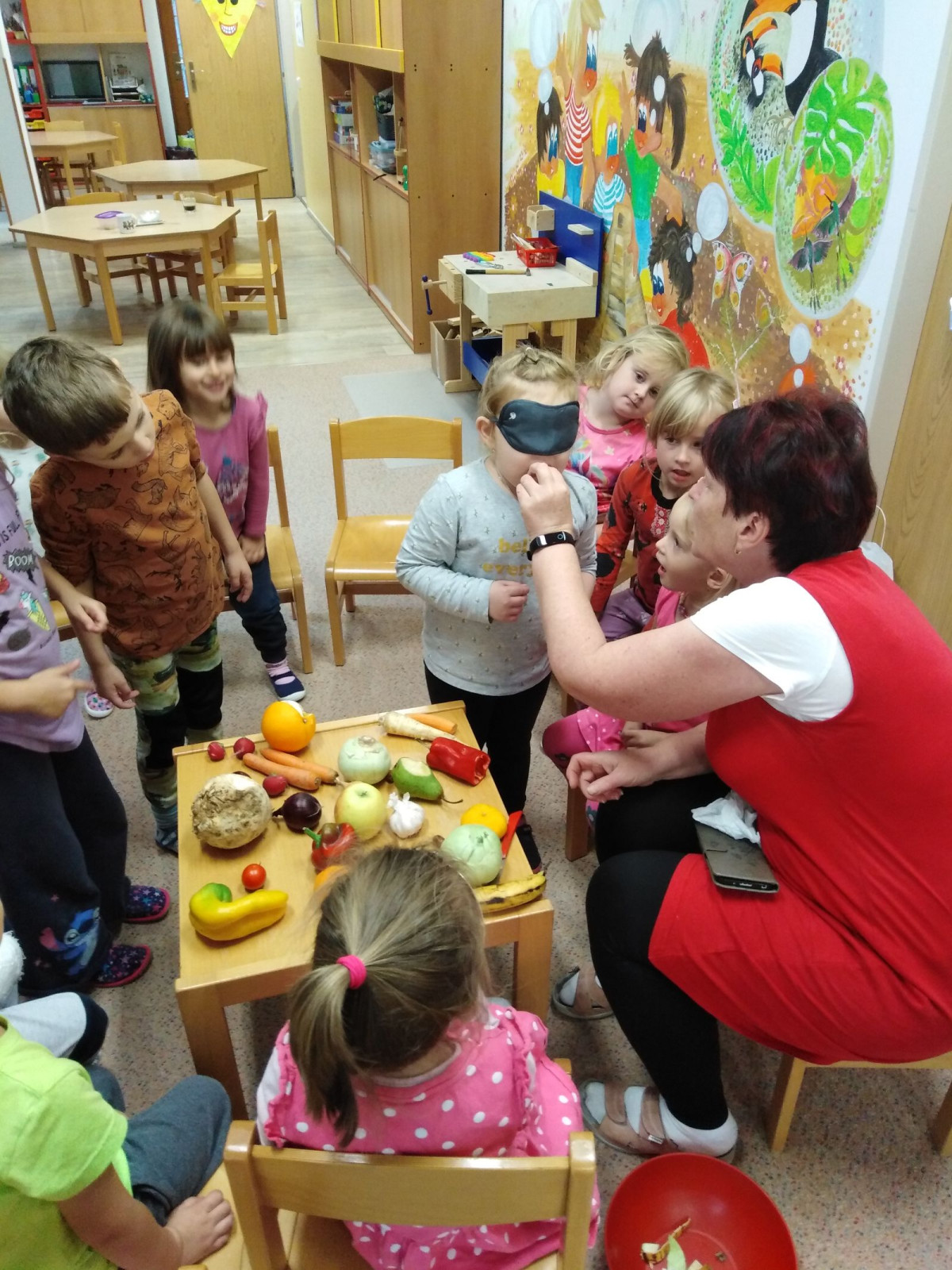 Děti poznávaly ovoce i uvnitř, určovaly, co má pecku, co jadérka.