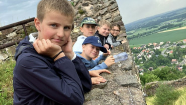 Naneštěstí se těsně před naším příchodem setmělo a stihl nás déšť, o to tajemnější celý pobyt v Potštejně byl. Čekání na lepší počasí jsme si zpříjemnili čtením povídky a plněním úkolů týkajících se hradu, na který jsme se měli zakrátko vydat.