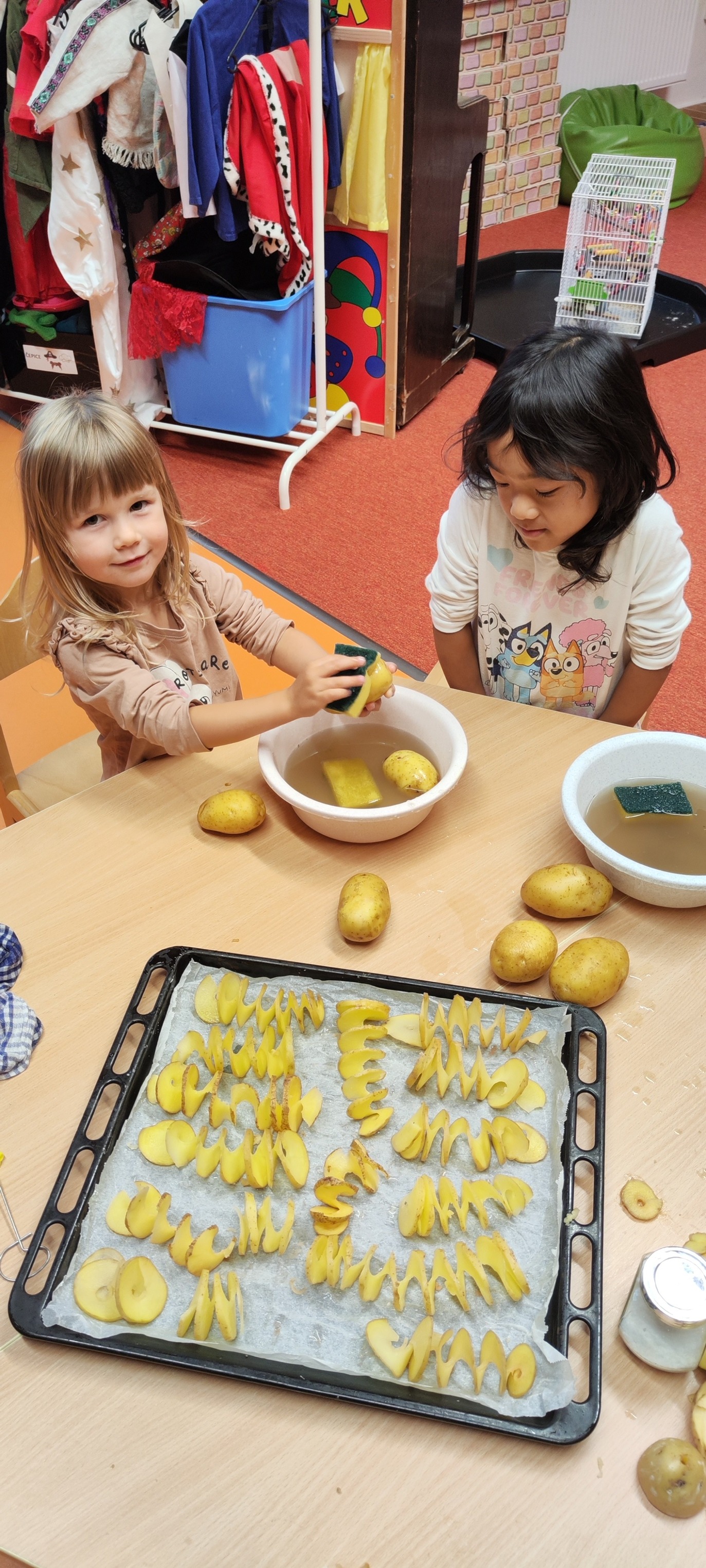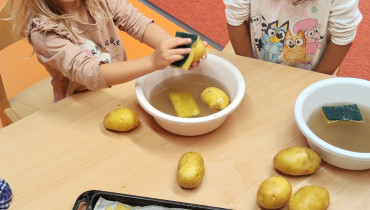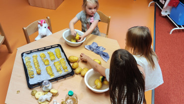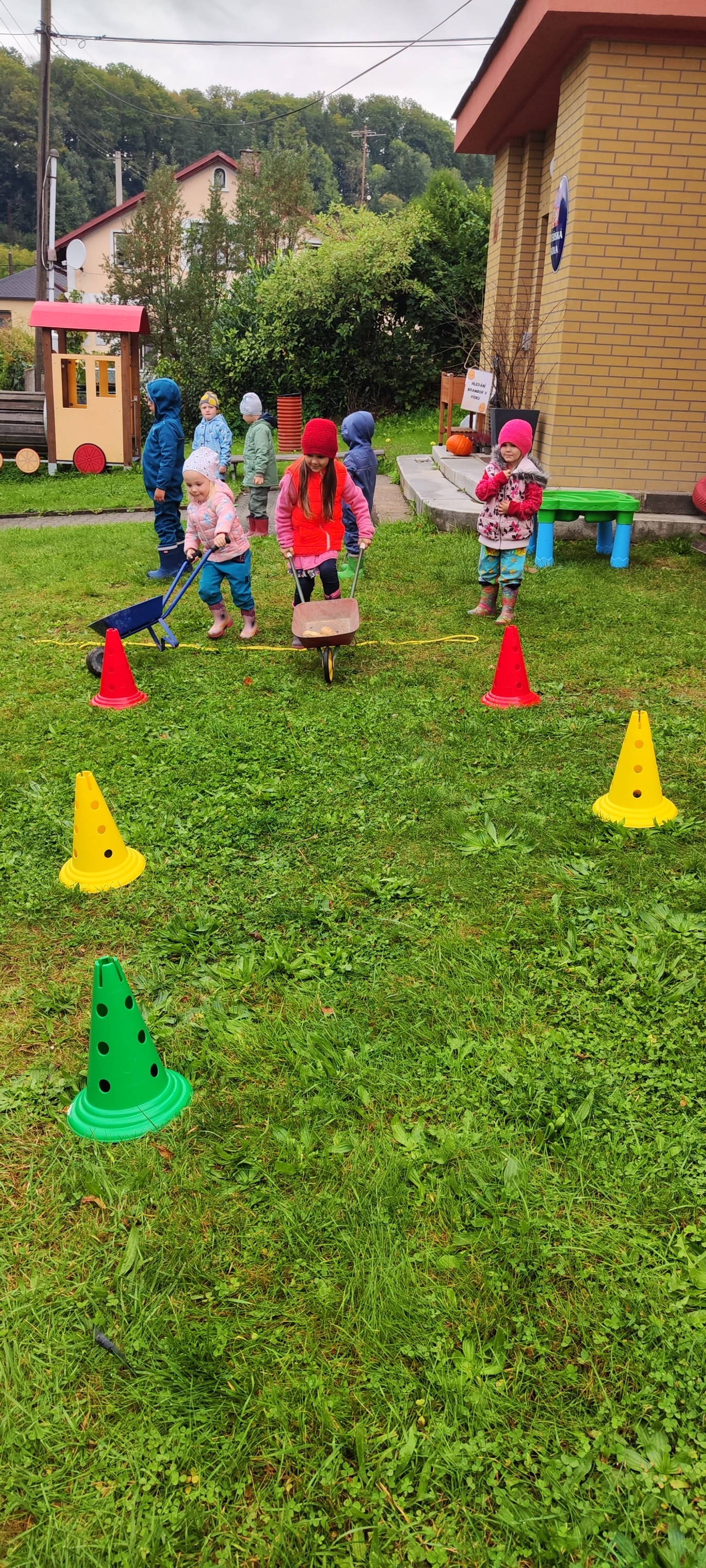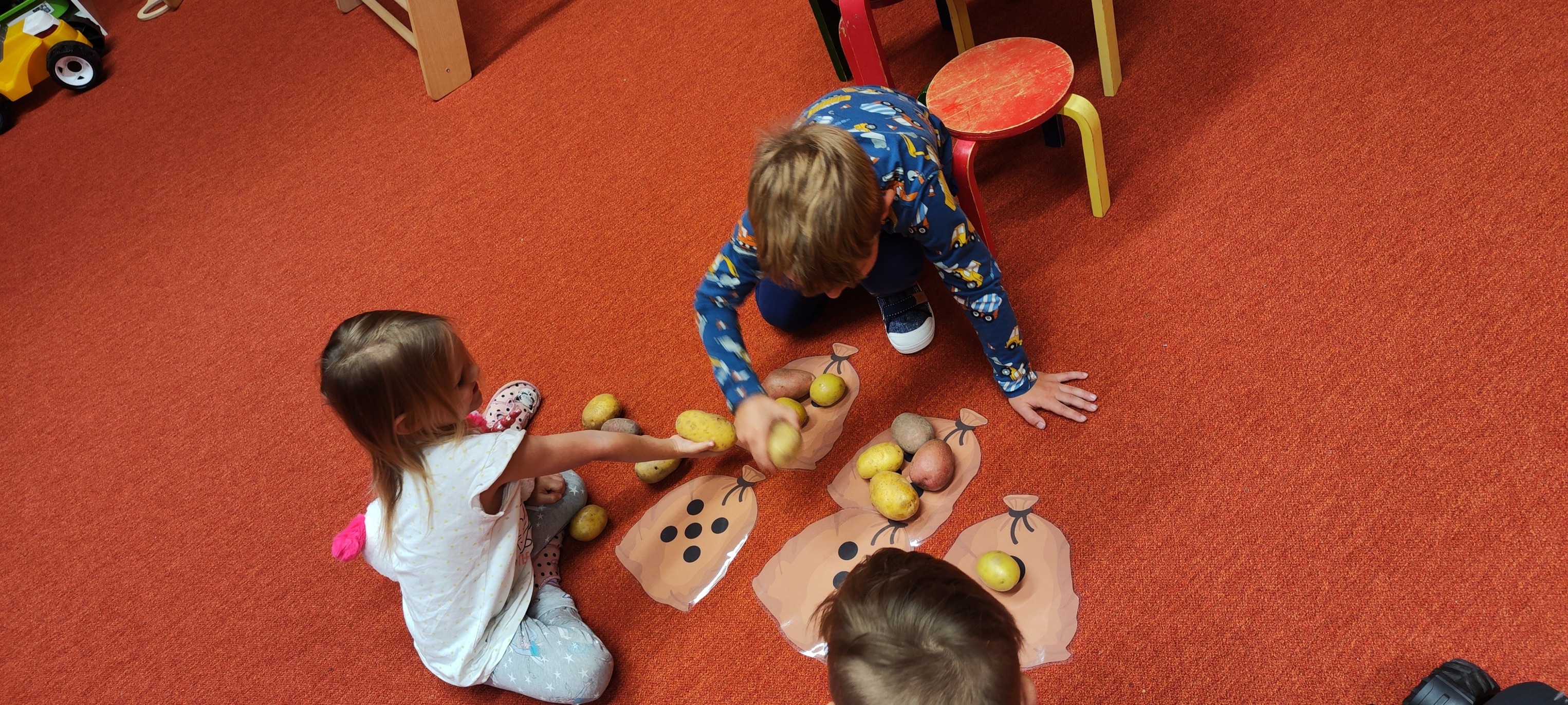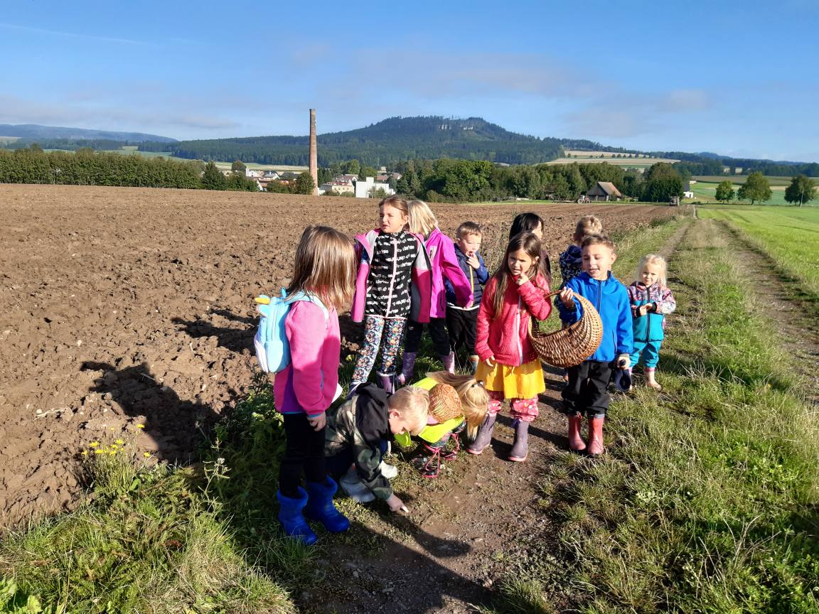 Na závěr měsíce jsme si povídali o tom, co roste na poli i na zahradě. Poznávali jsme plodiny, tvořili traktory, kukuřici i pytle brambor. Společně jsme si připravili bramborové spirálky a na zahradě si užili Bramboriádu plnou zábavy.