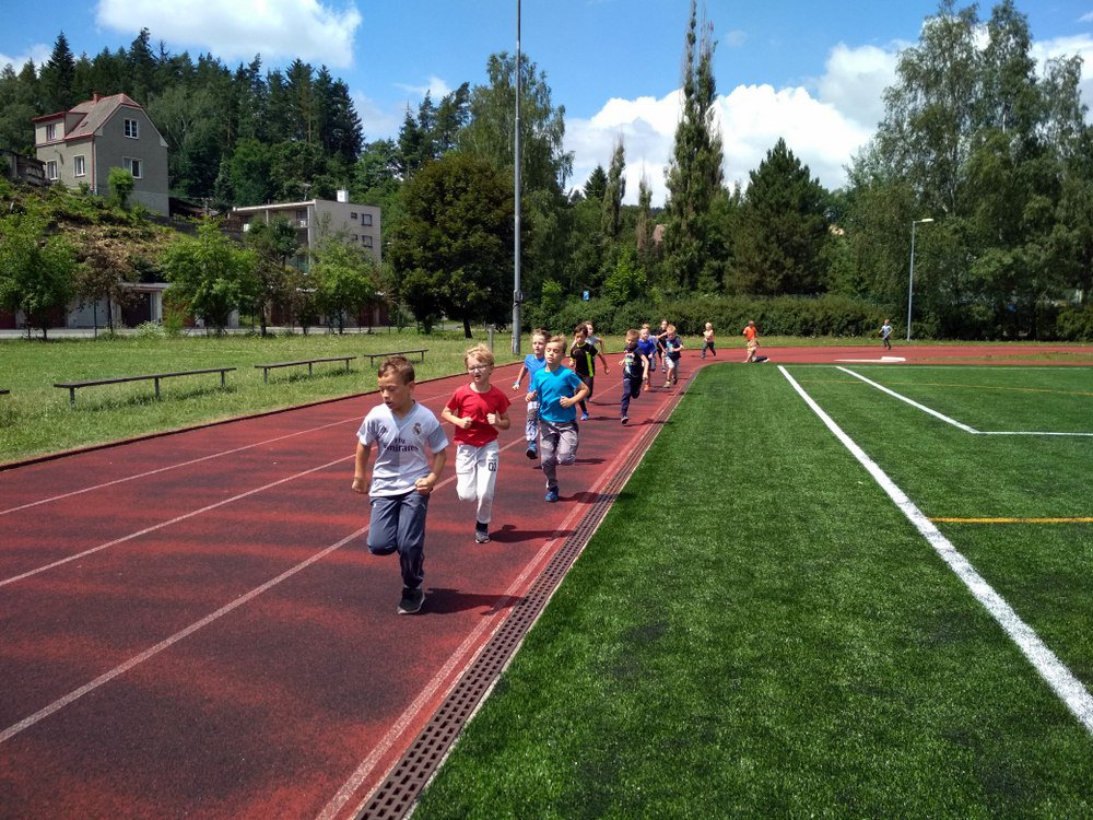 Během května a června jsme ve všech družinách měřili své síly v lehkoatletickém čtyřboji (běh 50 m, skok daleký, běh 300m a hod kriketovým míčkem). V pondělí 25. 6. jsme vyslali 17 žáků ze všech čtyř oddělení do Náchoda změřit své síly s vrstevníky z jiných školních družin našeho okresu. Vedlo se jim velice dobře, přivezli 11 medailí.