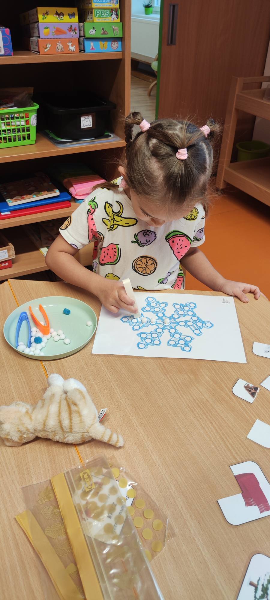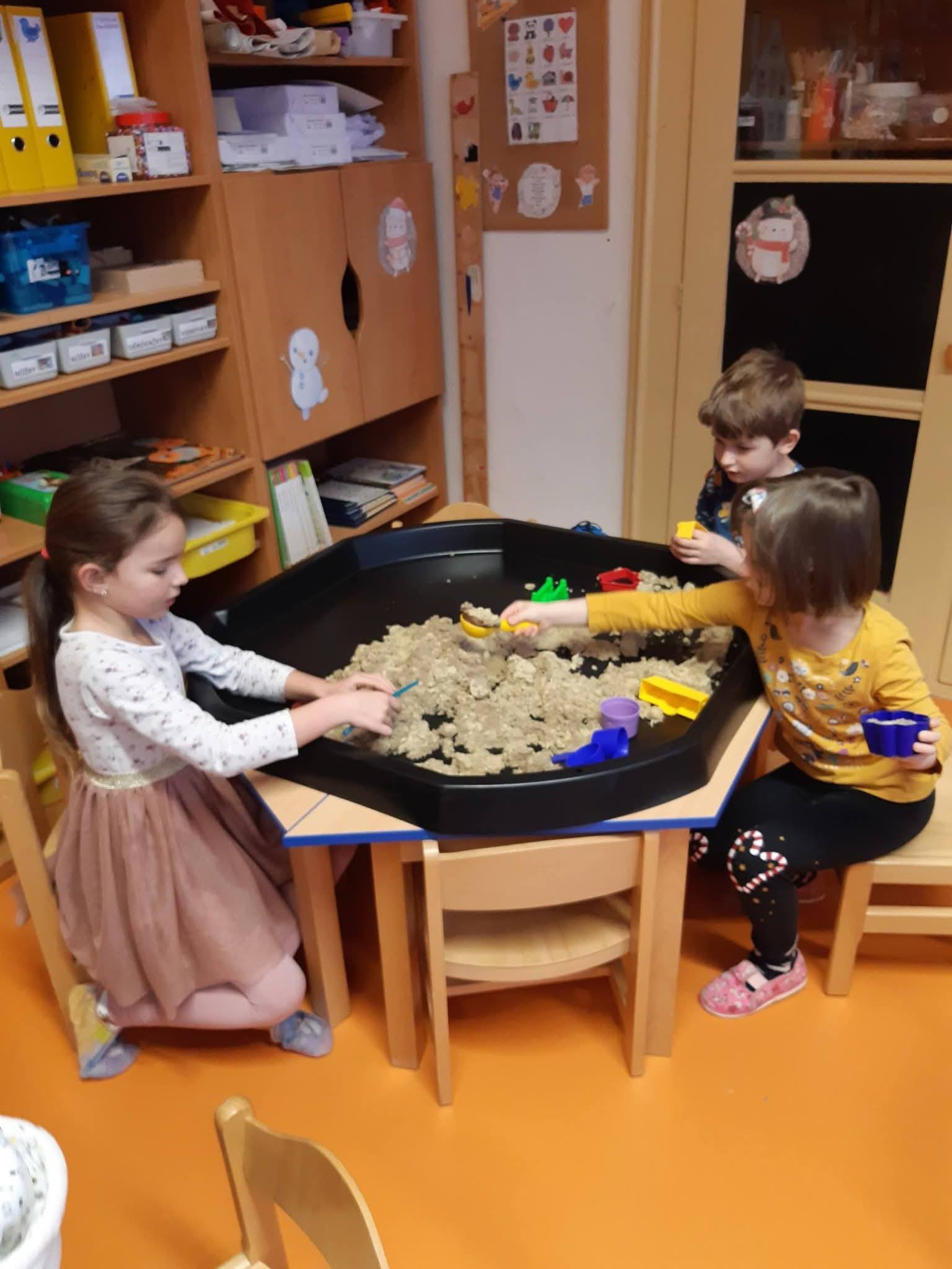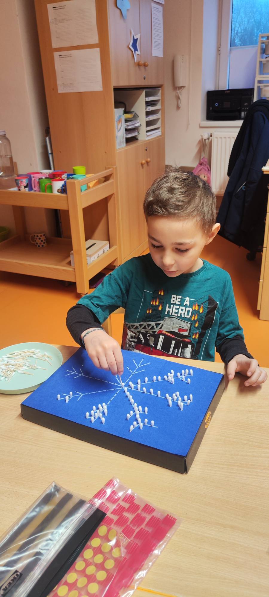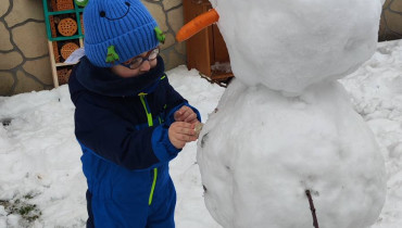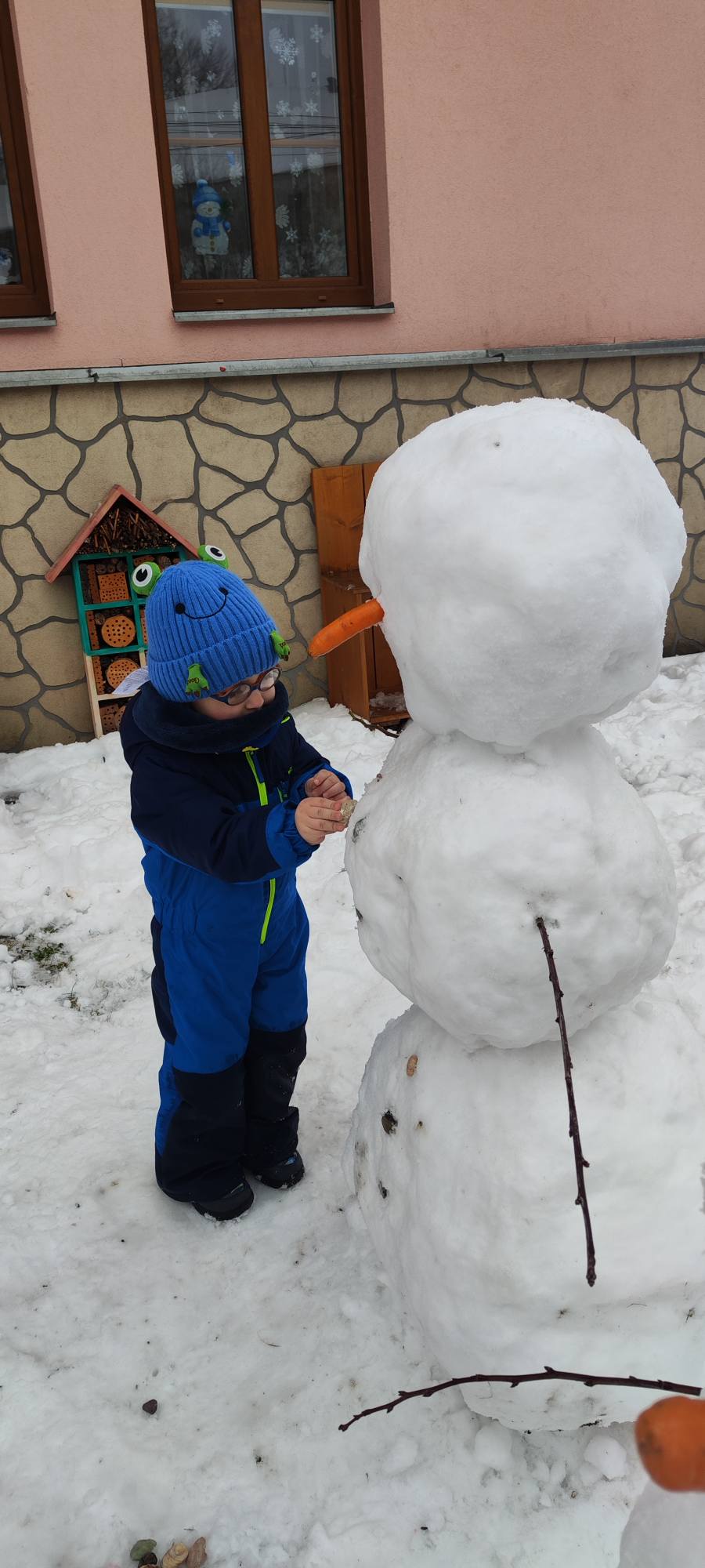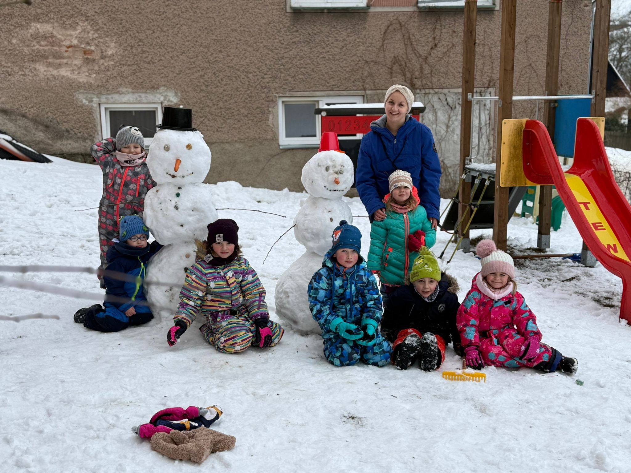 V dalších týdnech jsme si povídali o zimě, správném oblékání a sněhulácích. Děti se zapojily do různých výtvarných aktivit, pohybových her a společně jsme stavěli sněhuláky. Povídali jsme si také o zvířátkách v zimě, pozorovali stopy ve sněhu a navštívili jsme krmelec, kam děti donesly zvířátkům kaštany. Velkým zážitkem bylo loutkové divadlo O dvanácti měsíčkách i návštěva knihovny v Polici nad Metují, kde byl pro děti připraven program s pohádkou o Maxipsu Fíkovi.