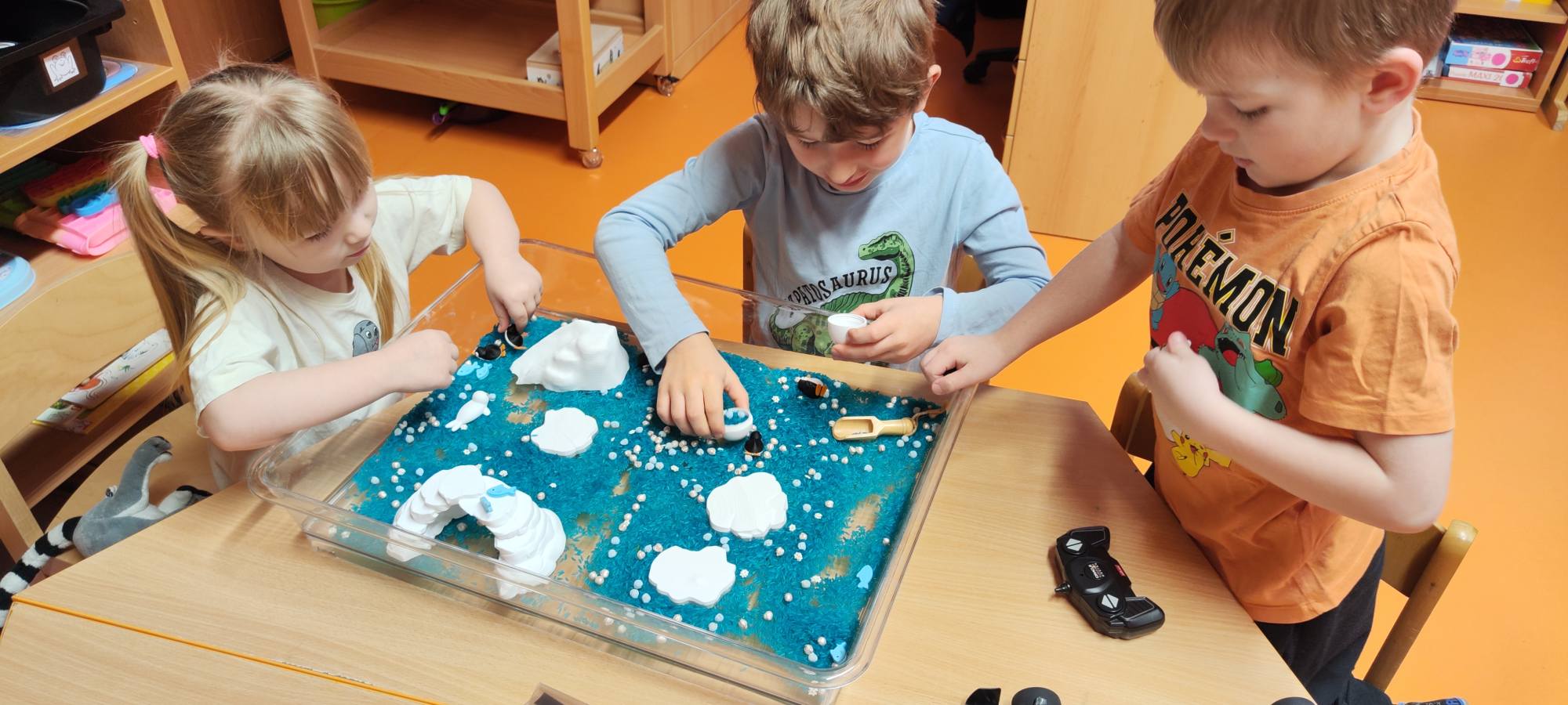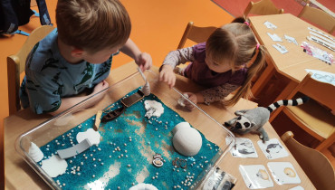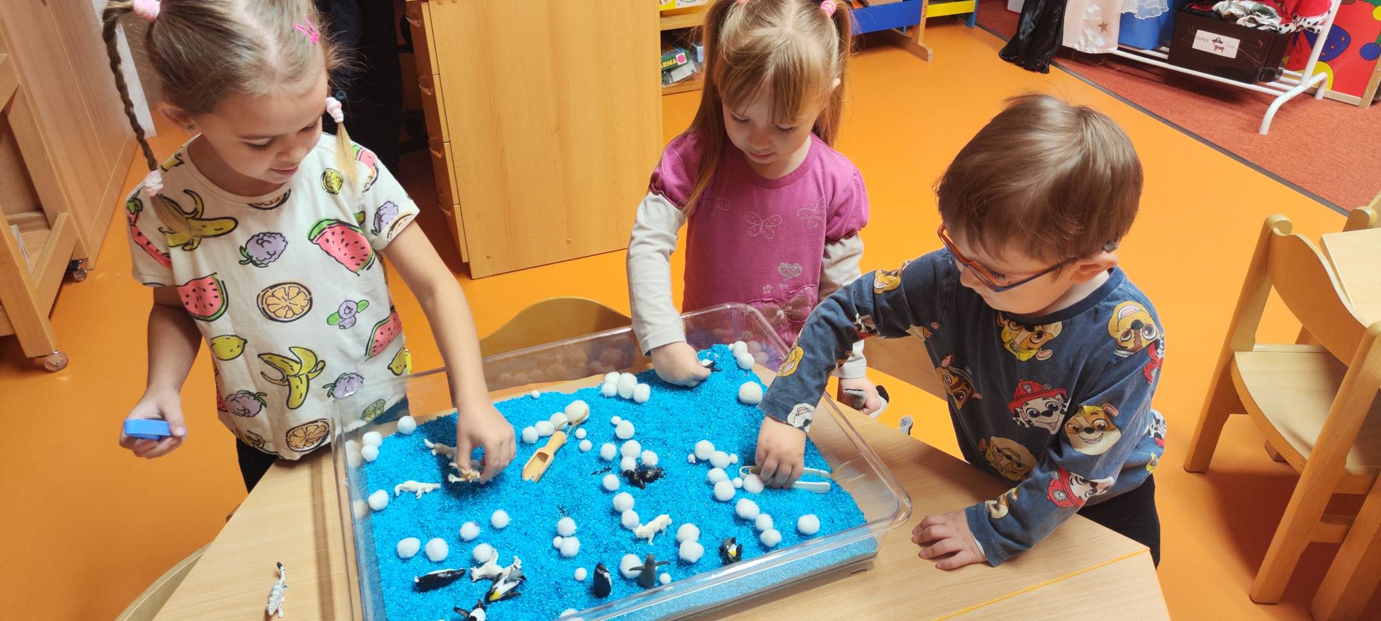 Na závěr měsíce jsme se vydali za poznáváním polárních oblastí, kde děti objevovaly zvířata severního i jižního pólu, tvořily tematické výrobky a zkoušely si například pohyb tučňáků i medvědů. Předškoláci a budoucí předškoláci navštívili základní školu v Polici nad Metují, kde je čekal hezký program.
