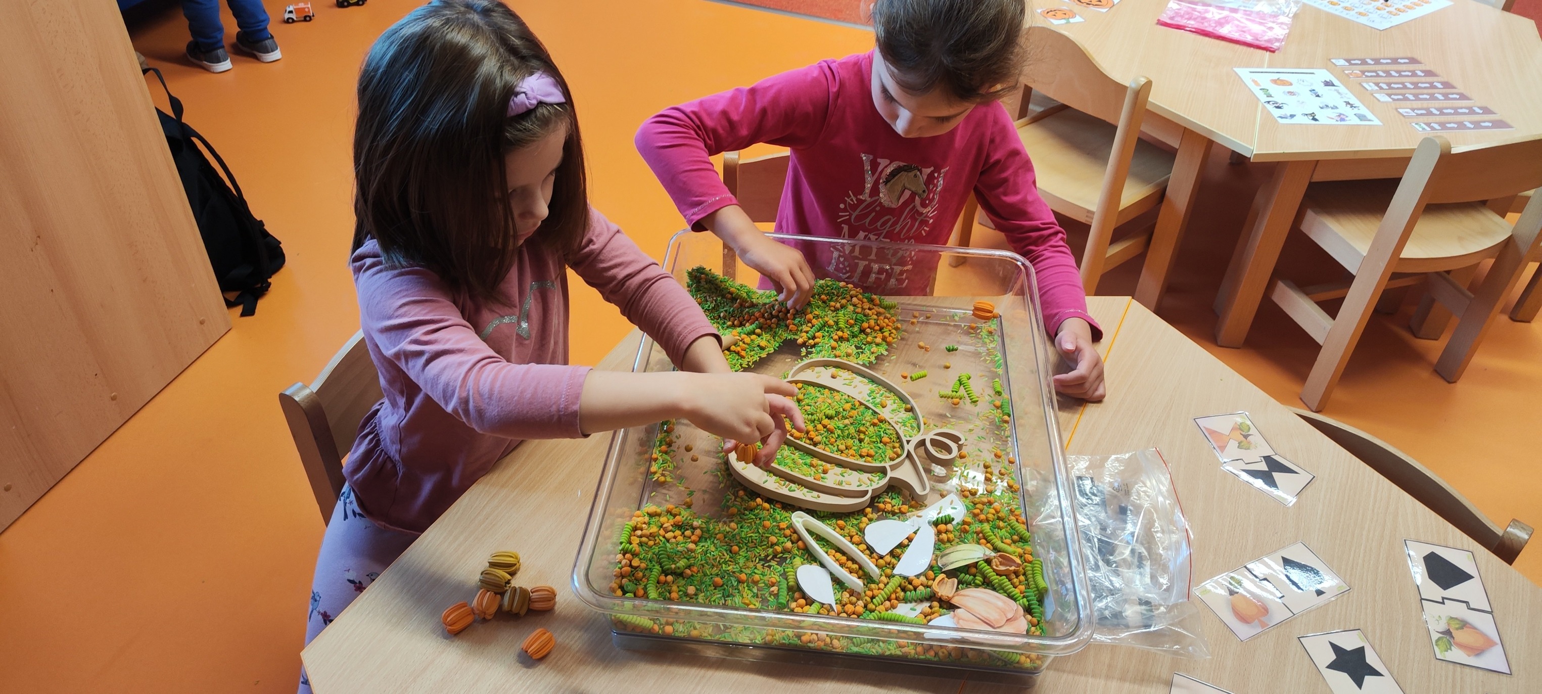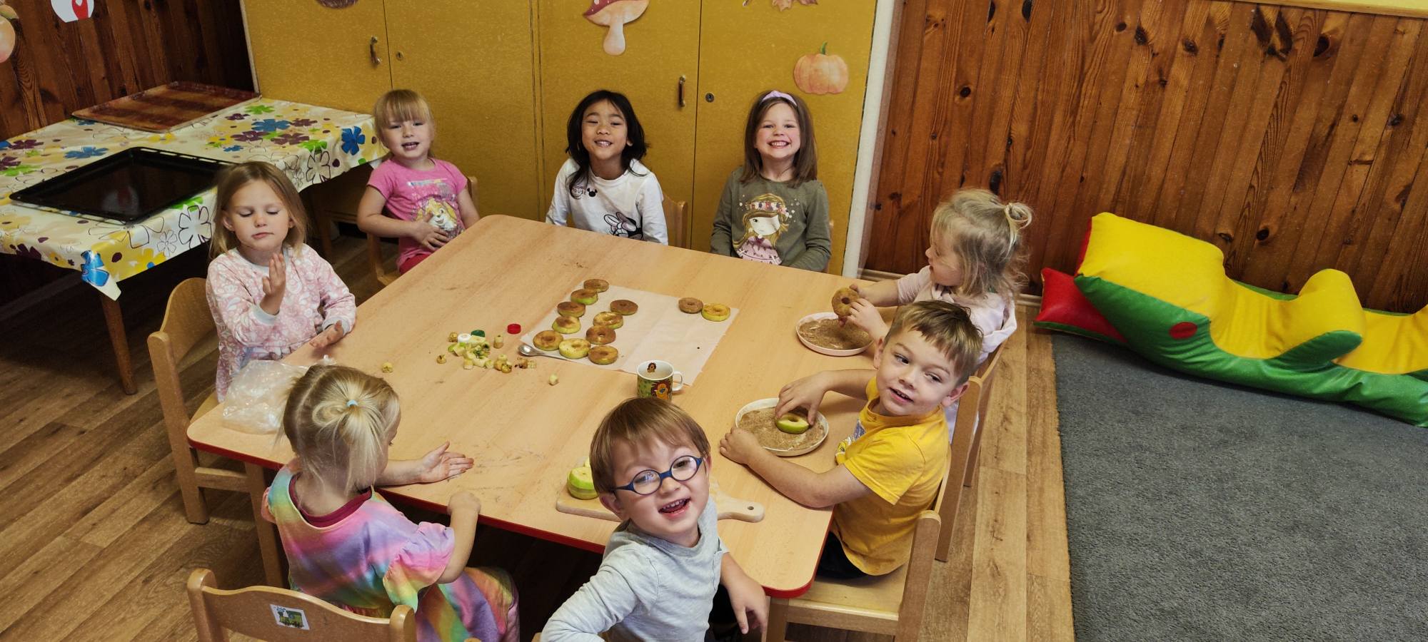 V týdnu o ovoci a zelenině 🍎🍅 jsme ochutnávali, poznávali podle pecek a jadérek a pekli voňavé štrúdlové kroužky. A vydali jsme se na výlet do Hronova do dětského koutku Džungle.