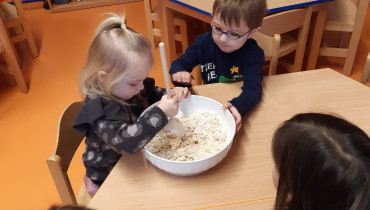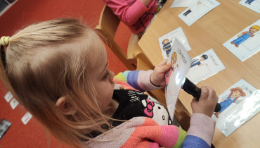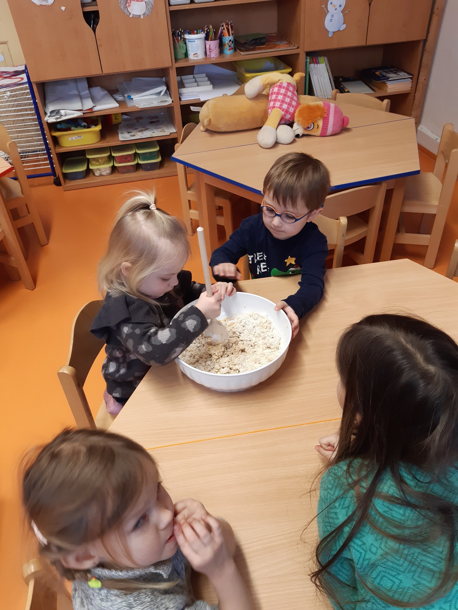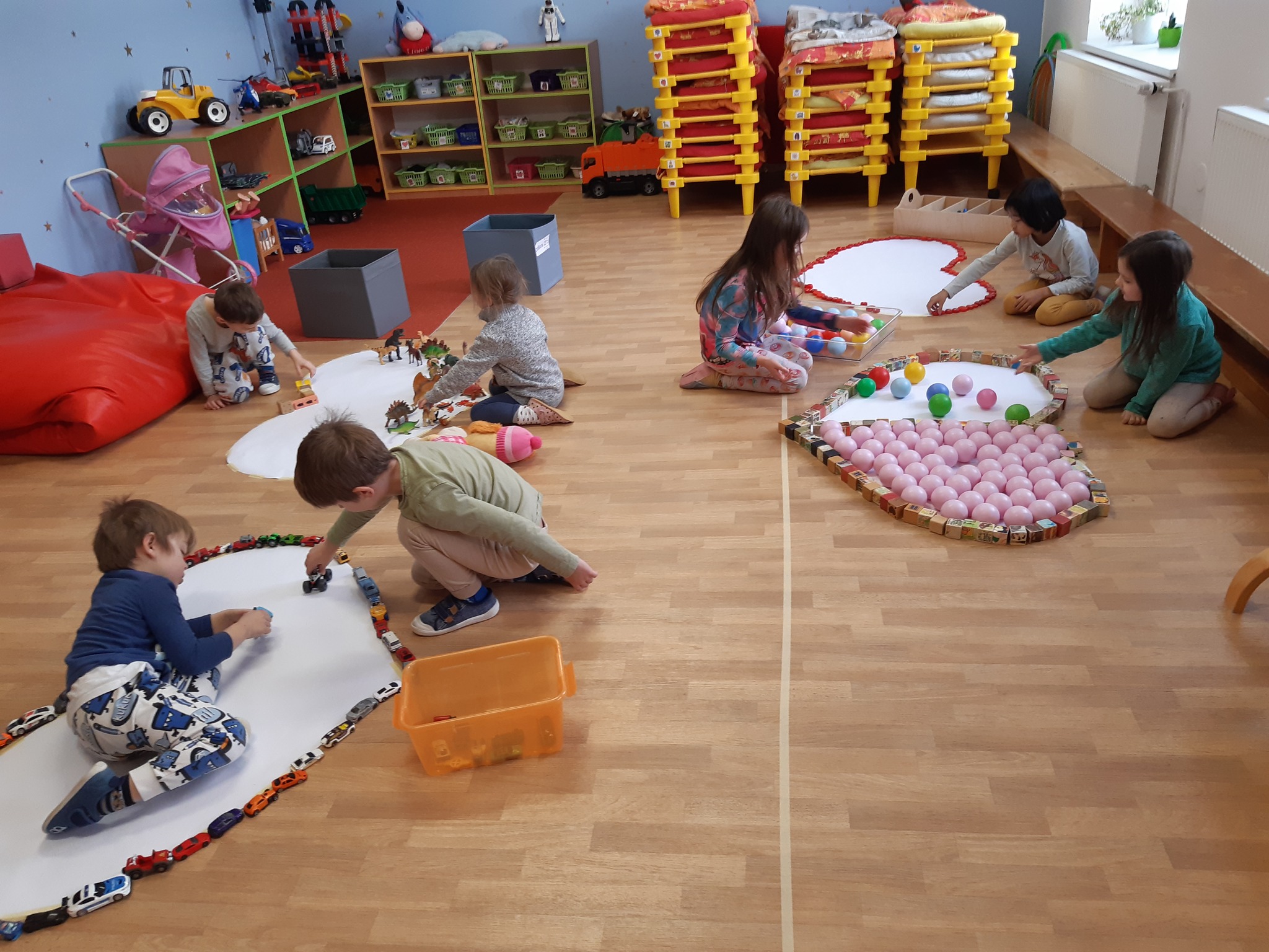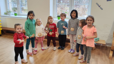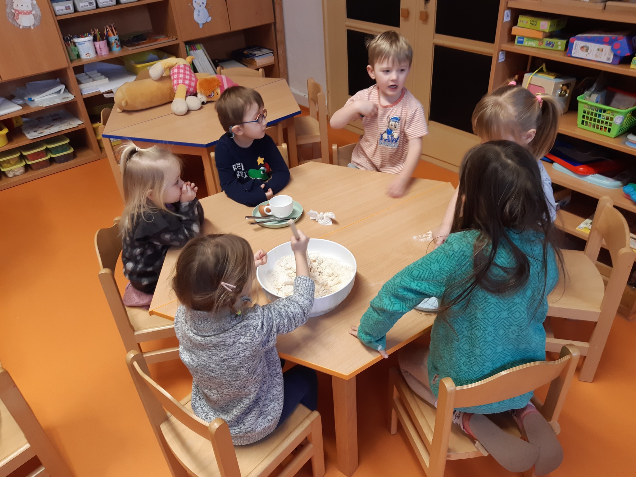 Poslední únorový týden jsme věnovali povoláním. Děti objevovaly různá zaměstnání a některá si také samy vyzkoušely – například práci pekaře, cukráře nebo švadleny. Při tvoření vznikli také zedník, malíř, kuchař i kominík pro štěstí. Nechyběl ani zpěv u klavíru, bruslení a lekce plavání v Broumově.