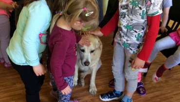 Děti se zaujetím poslouchaly a sledovaly, co paní dělá. Děti měly možnost nahlédnout, jak vypadá kniha pro nevidomé, zkusily si jaké to je chodit poslepu, jak se pozná sůl a cukr, ... Největší radost měly děti z toho, že si mohou pohladit slepeckého vodícího psa.