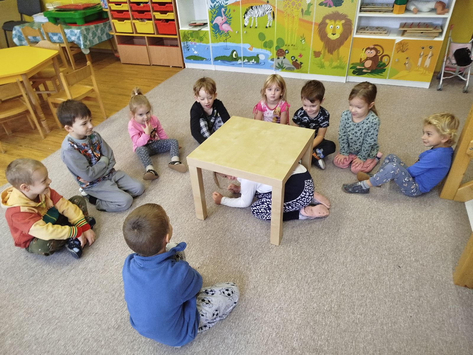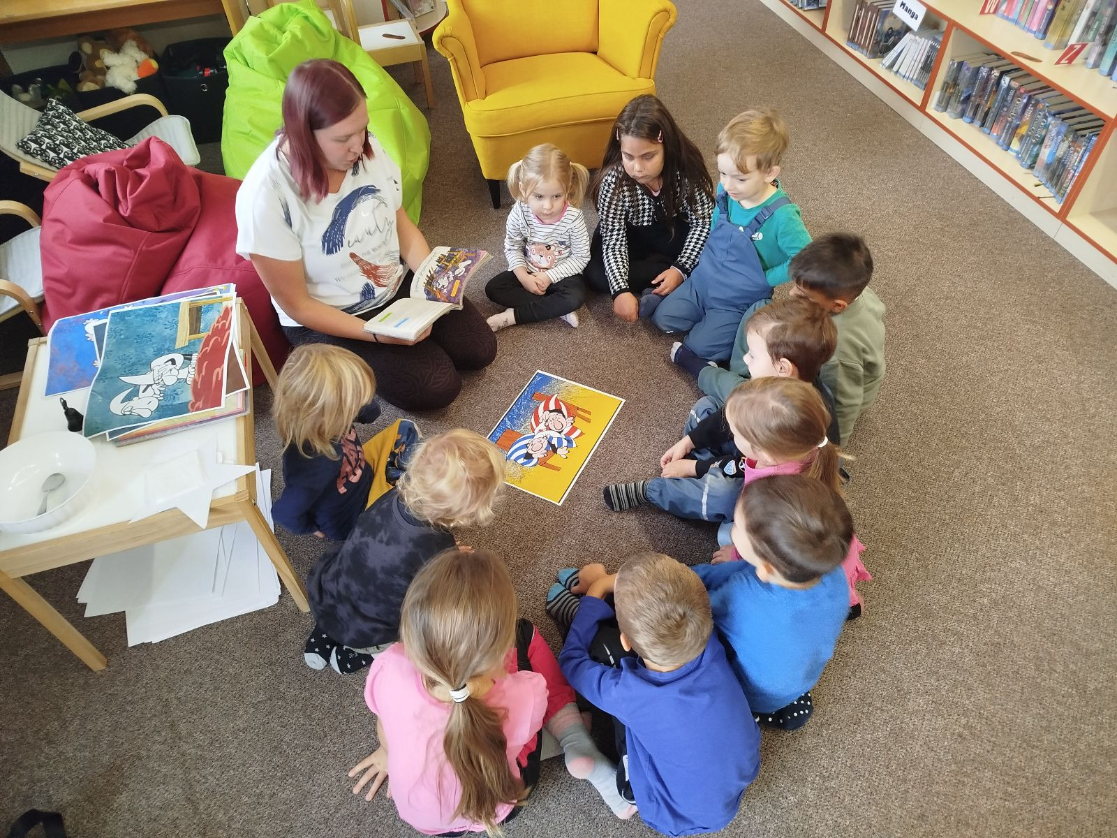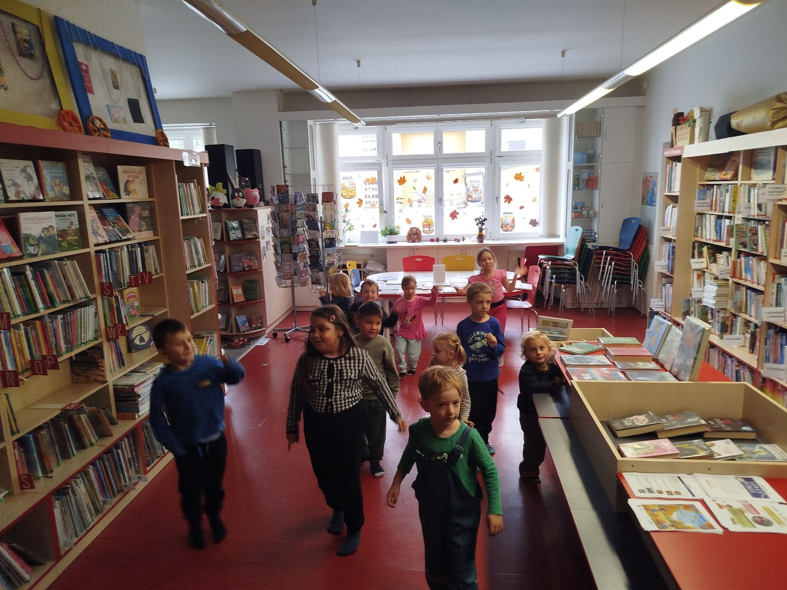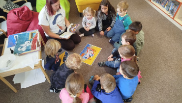 V říjnu jsme navštívili knihovnu, seznámili se s prostředím a paní knihovnice pro nás měla připravený program na téma Křemílek a Vochomůrka, pohádka - Jak si ani nelízli povidel.