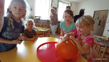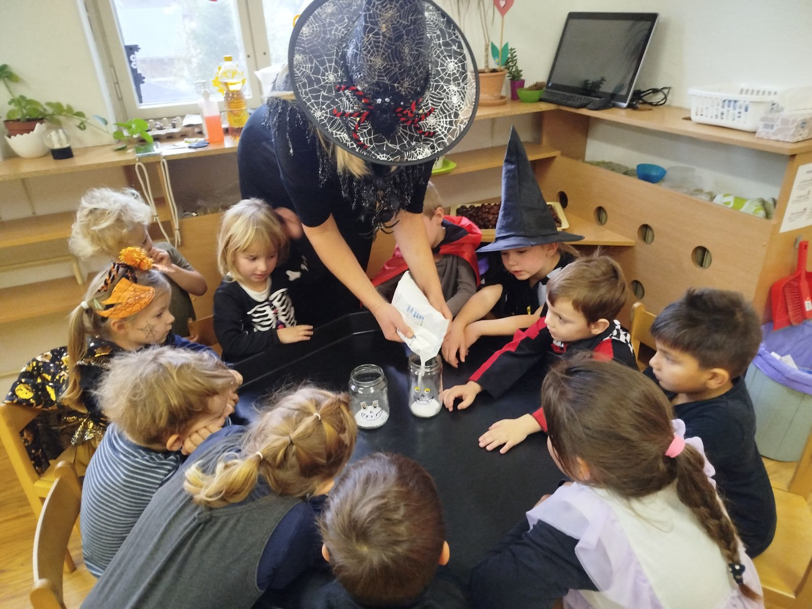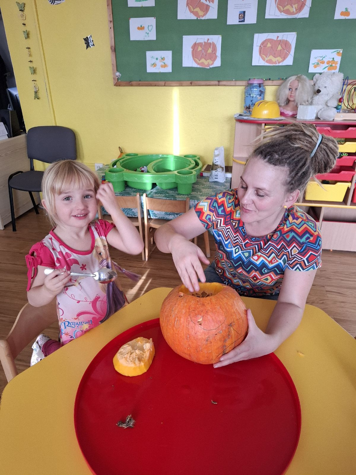 Moc jsme si také užili halloweenský den plný strašidel a dobrot. Během celého měsíce jsme sbírali barevné lístečky a pro zvířátka na zimu kaštany a žaludy.