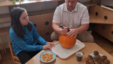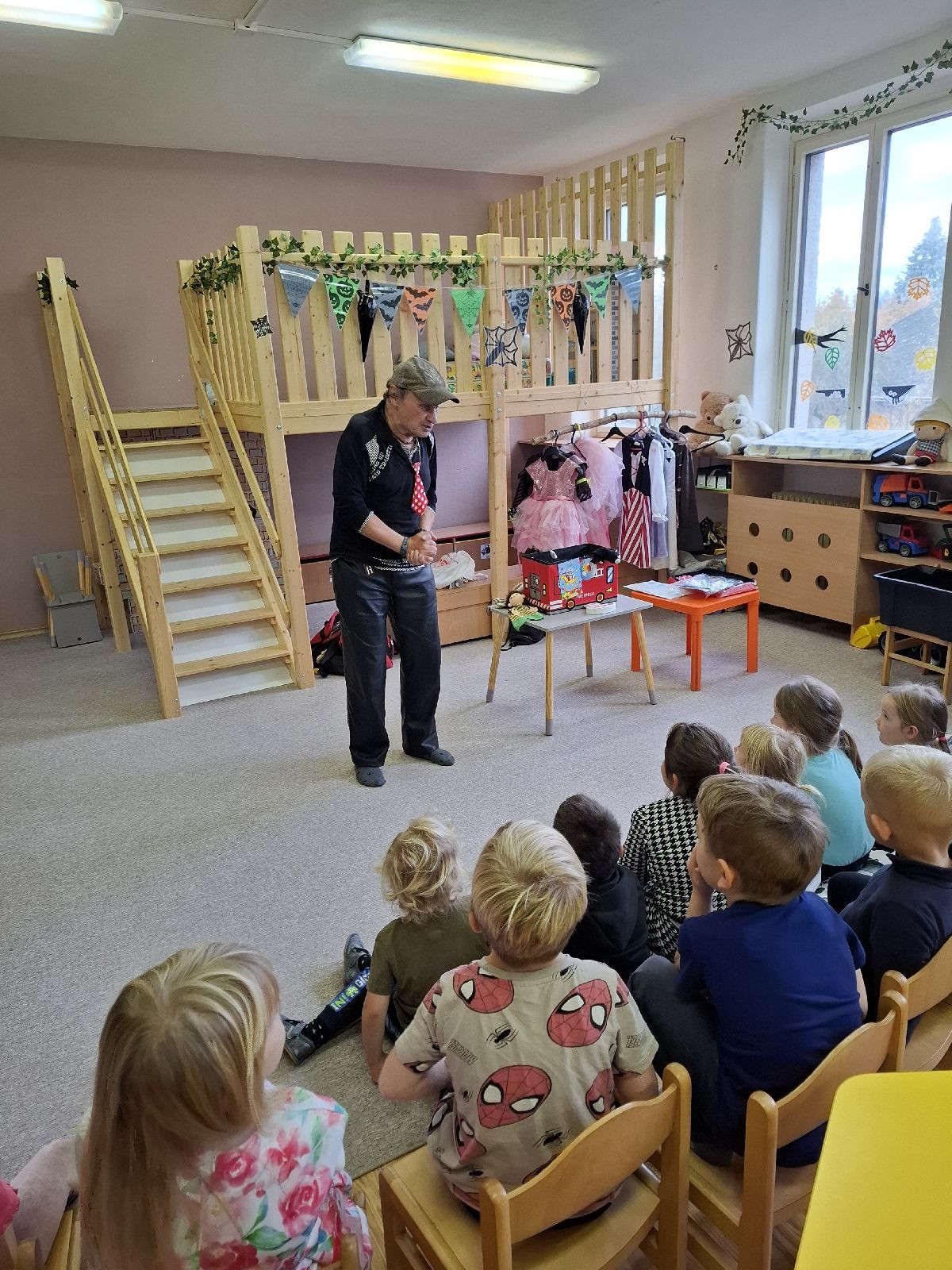 Také nás čekal výlet do Hronova, do divadla na pohádku Čert a Káča. Pro rodiče jsme uspořádali podzimní dílničky. Poslední říjnová akce se konala u nás ve školce – vystoupení – 60 let Večerníčku.
