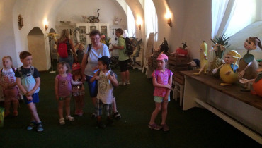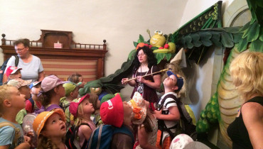 Na zámku nás čekaly dva prohlídkové okruhy: Zdravosvět a Dračí království a Zámecké pohádkové sklepení. První cesta nás zavedla do světa zdraví mezi skřítky ovocňáky a saláťáky, do dračí porodnice a zuboopravny, za vílou Vitamínou a skřítky baciláky, do zdravoškoly a do dračího světa. V pohádkovém sklepení jsme se ocitli v lesním a ledovém království, u rodinky obra, u vodníků, u draka, v paláci plném skřítků a v čertovské domácnosti. Během přestávky jsme se stihli nasvačit a ještě si projít čarodějnou Bestyjolu plnou živých zvířátek.