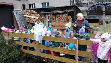 Děti si vyrobily svou Moranu, kterou jsme potom odnesli k potoku a s básní o paní Zimě jsme se symbolicky rozloučili s odcházející zimou.