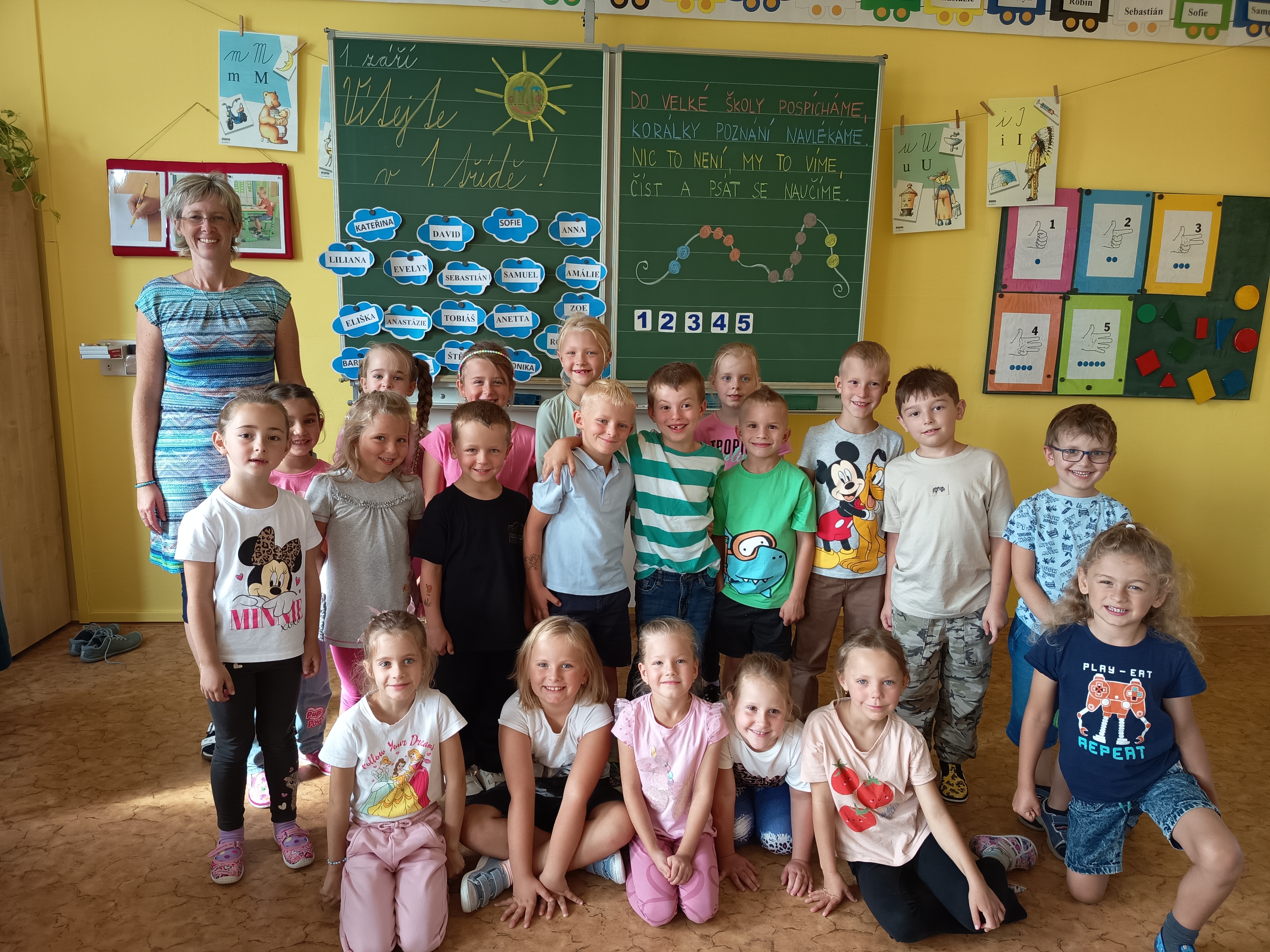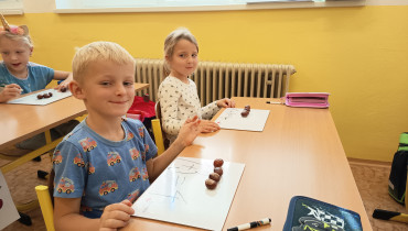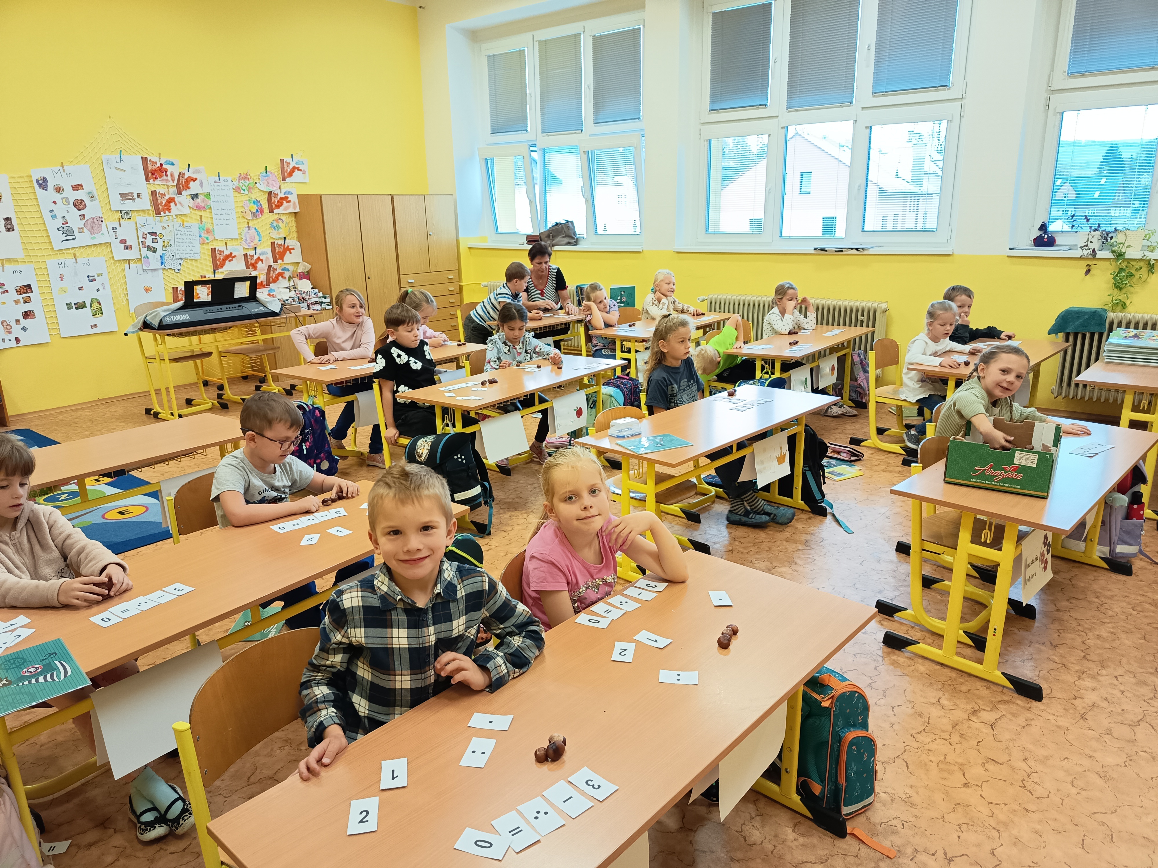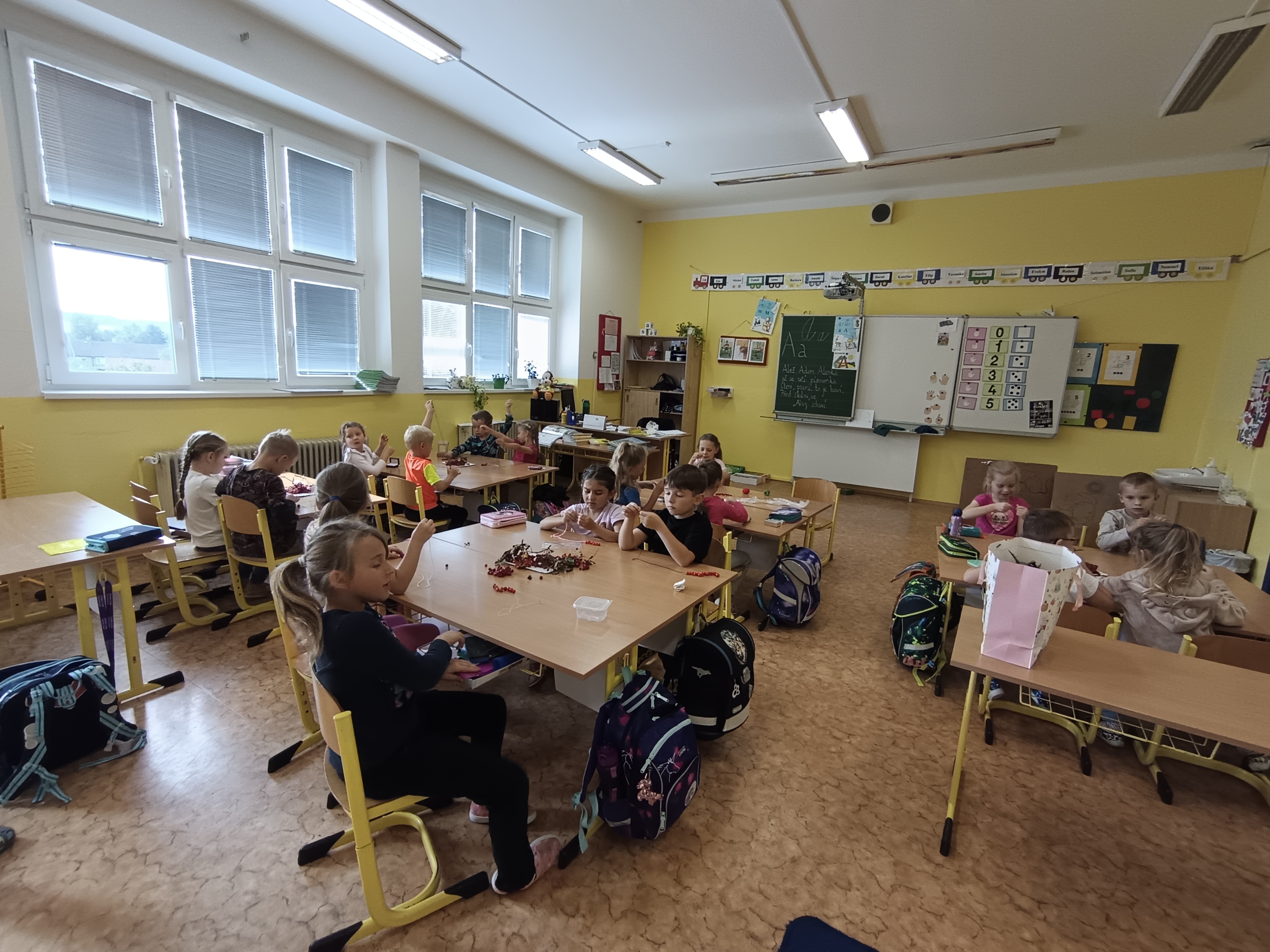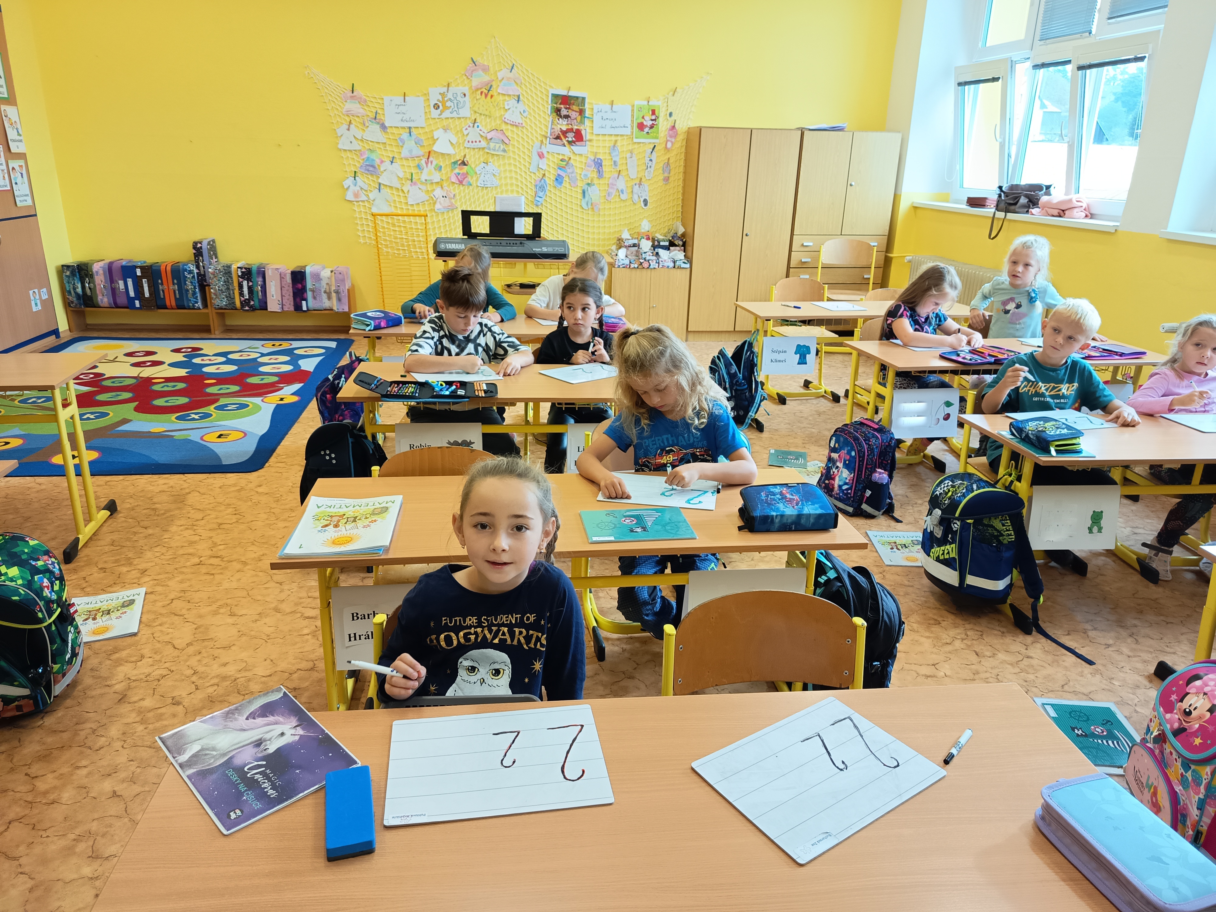 Přivítání žáčků třídy 1.B zástupci z města i naší školy, naše pilná práce během prvních dvou měsíců, podzimní slunné chvilky strávené venku, návštěva knihovny s programem Křemílka a Vochomůrky a pražské divadelní představení s pohádkou O perníkovém srdci a čarodějné knize – k prohlédnutí v následující fotogalerii.