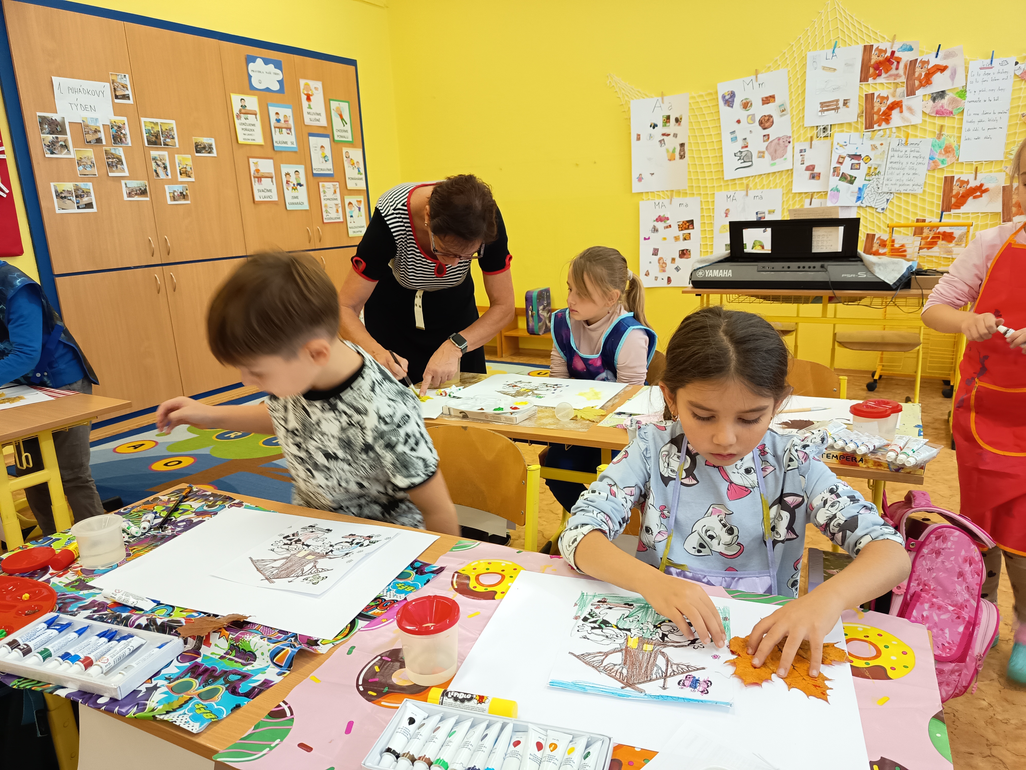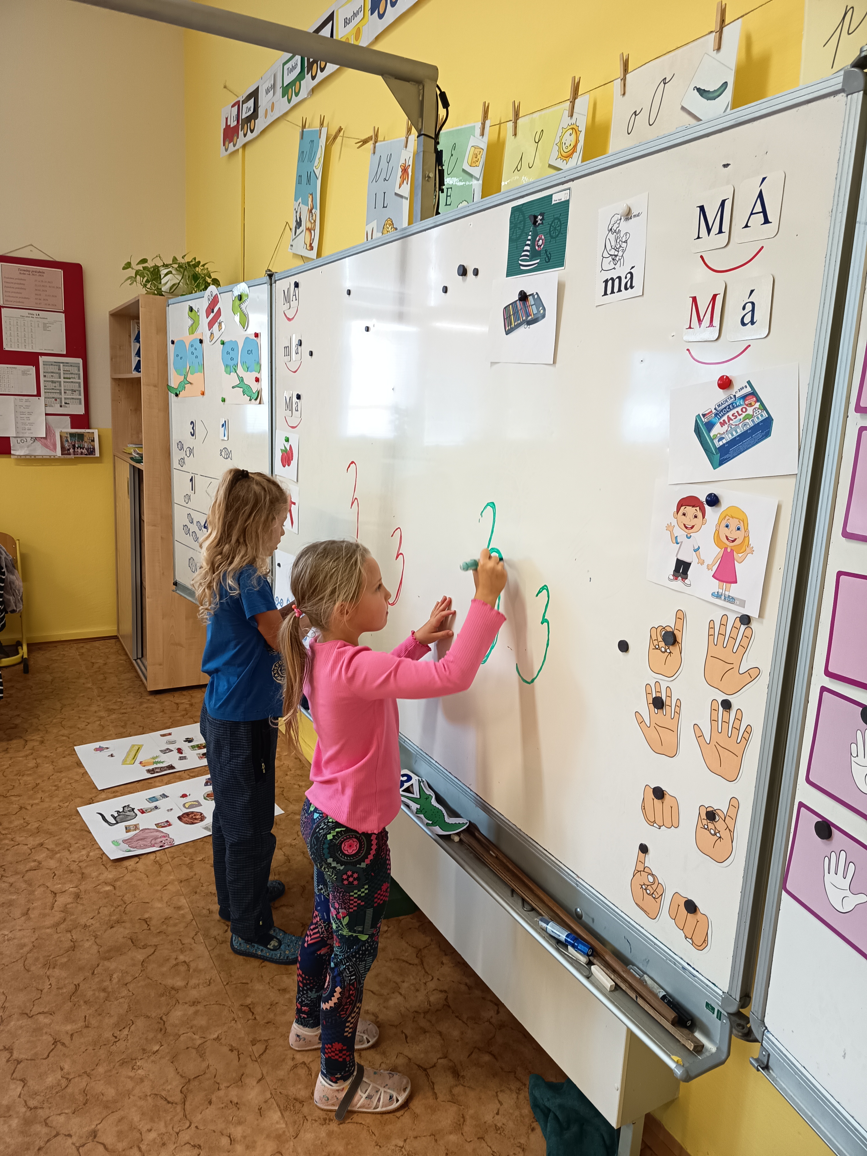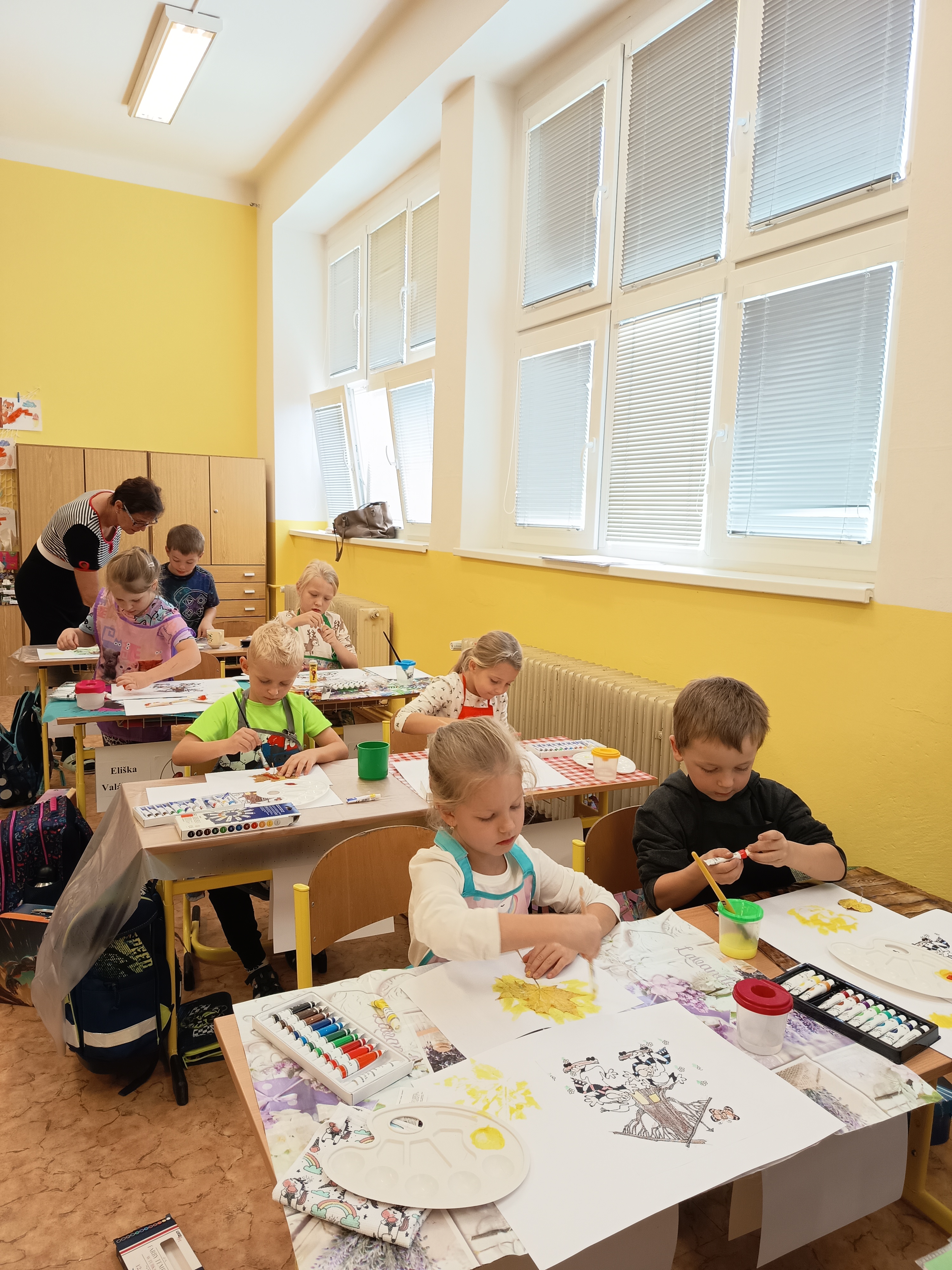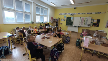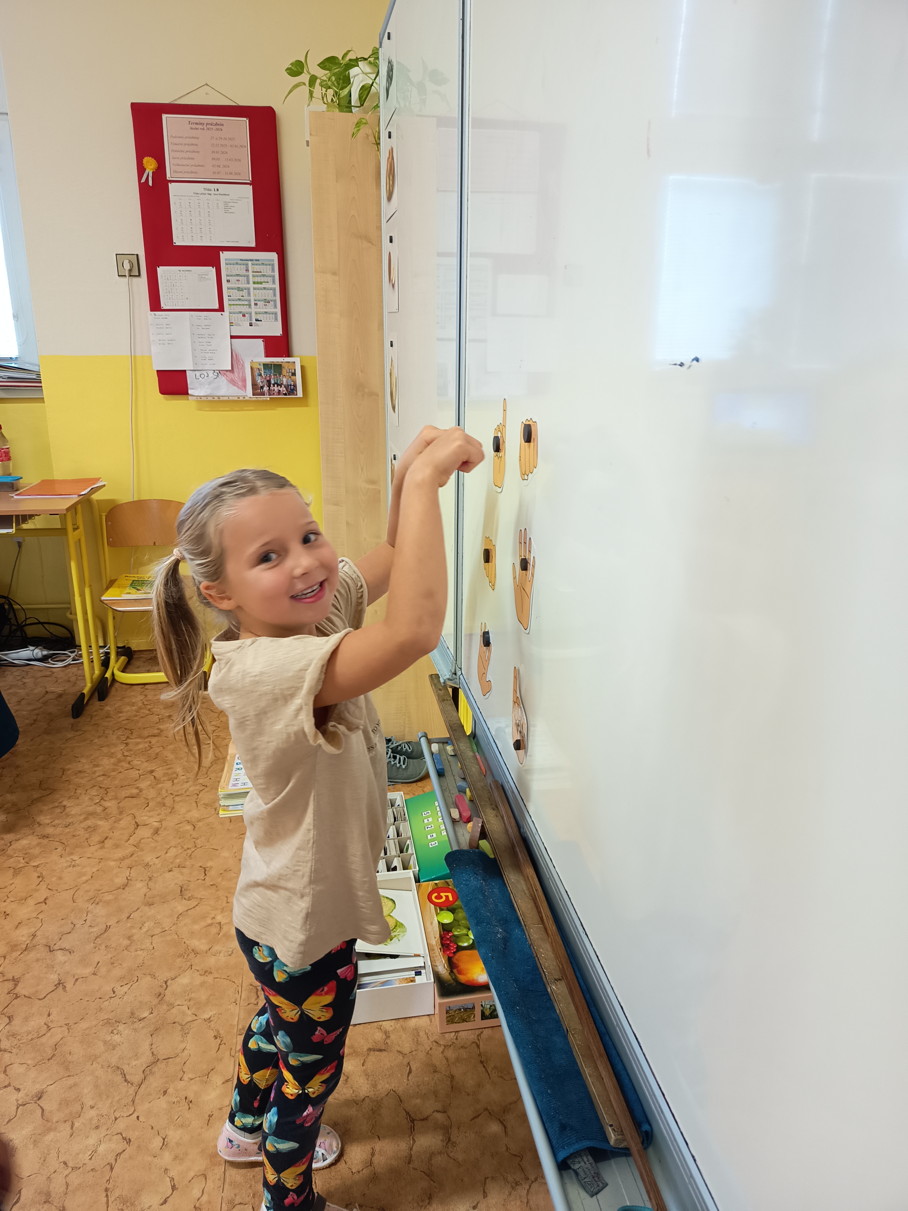 Přivítání žáčků třídy 1.B zástupci z města i naší školy, naše pilná práce během prvních dvou měsíců, podzimní slunné chvilky strávené venku, návštěva knihovny s programem Křemílka a Vochomůrky a pražské divadelní představení s pohádkou O perníkovém srdci a čarodějné knize – k prohlédnutí v následující fotogalerii.