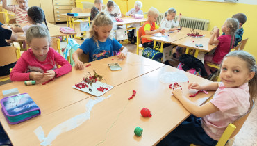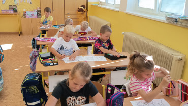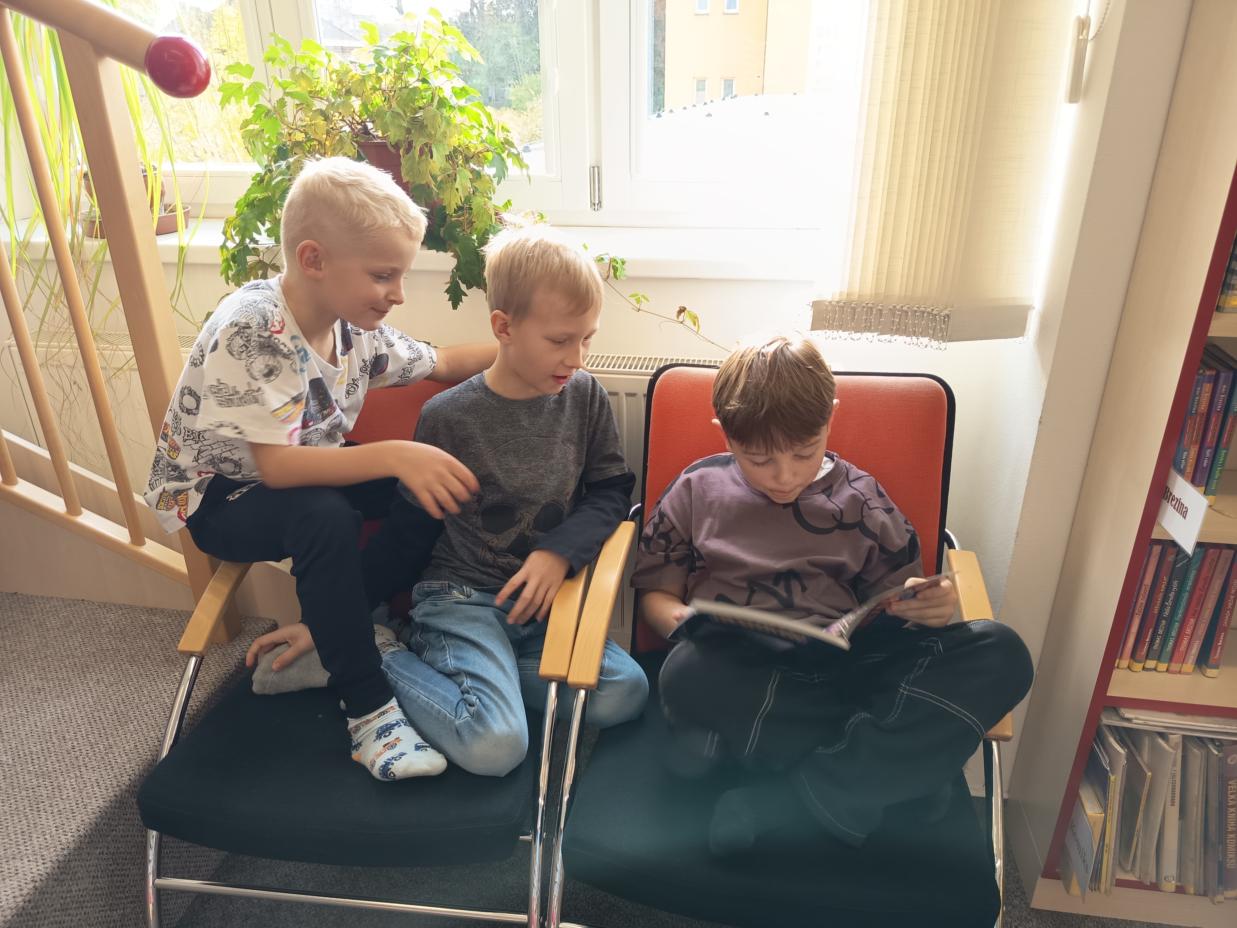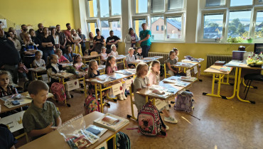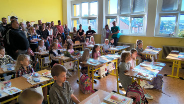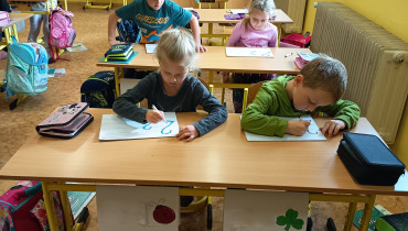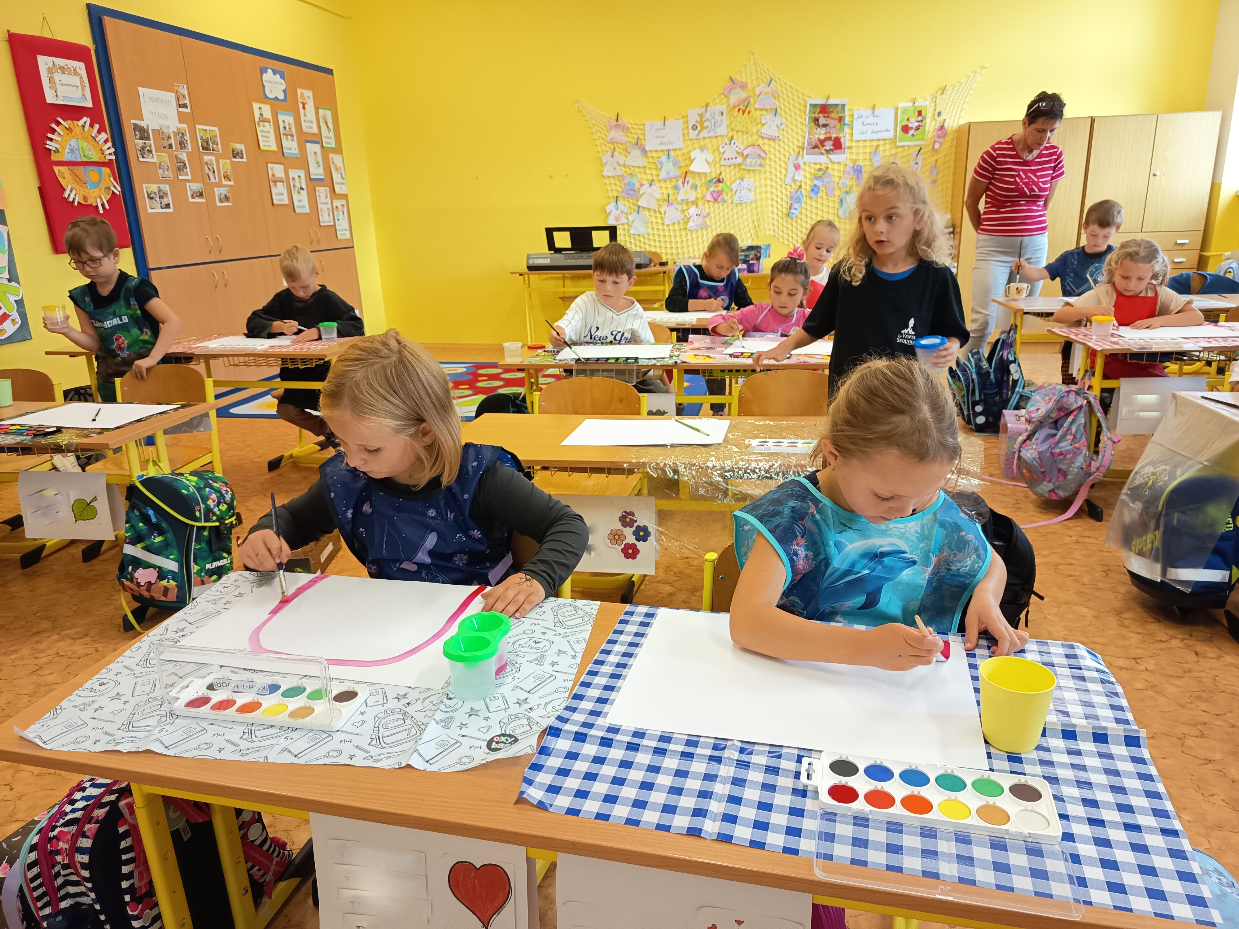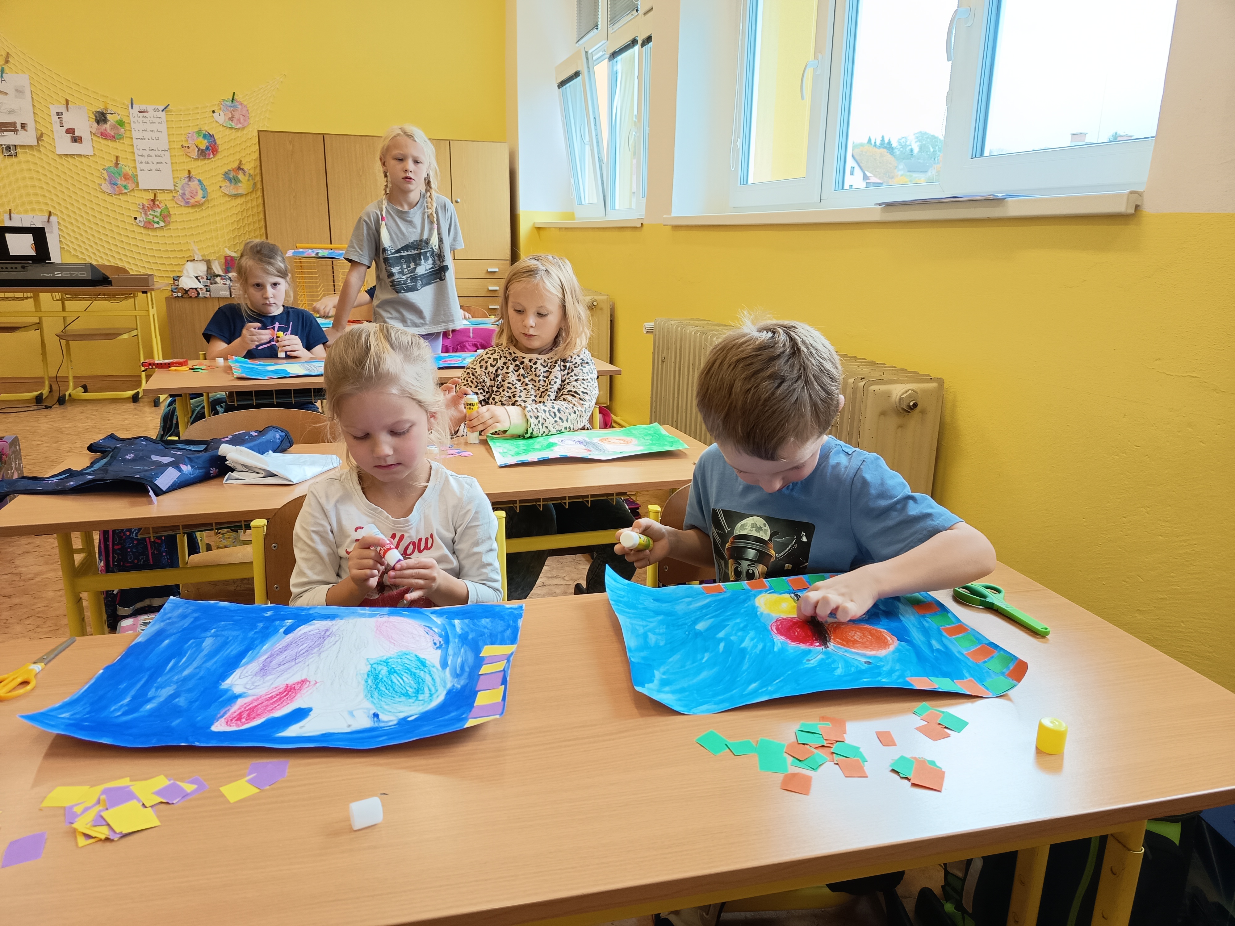 Přivítání žáčků třídy 1.B zástupci z města i naší školy, naše pilná práce během prvních dvou měsíců, podzimní slunné chvilky strávené venku, návštěva knihovny s programem Křemílka a Vochomůrky a pražské divadelní představení s pohádkou O perníkovém srdci a čarodějné knize – k prohlédnutí v následující fotogalerii.