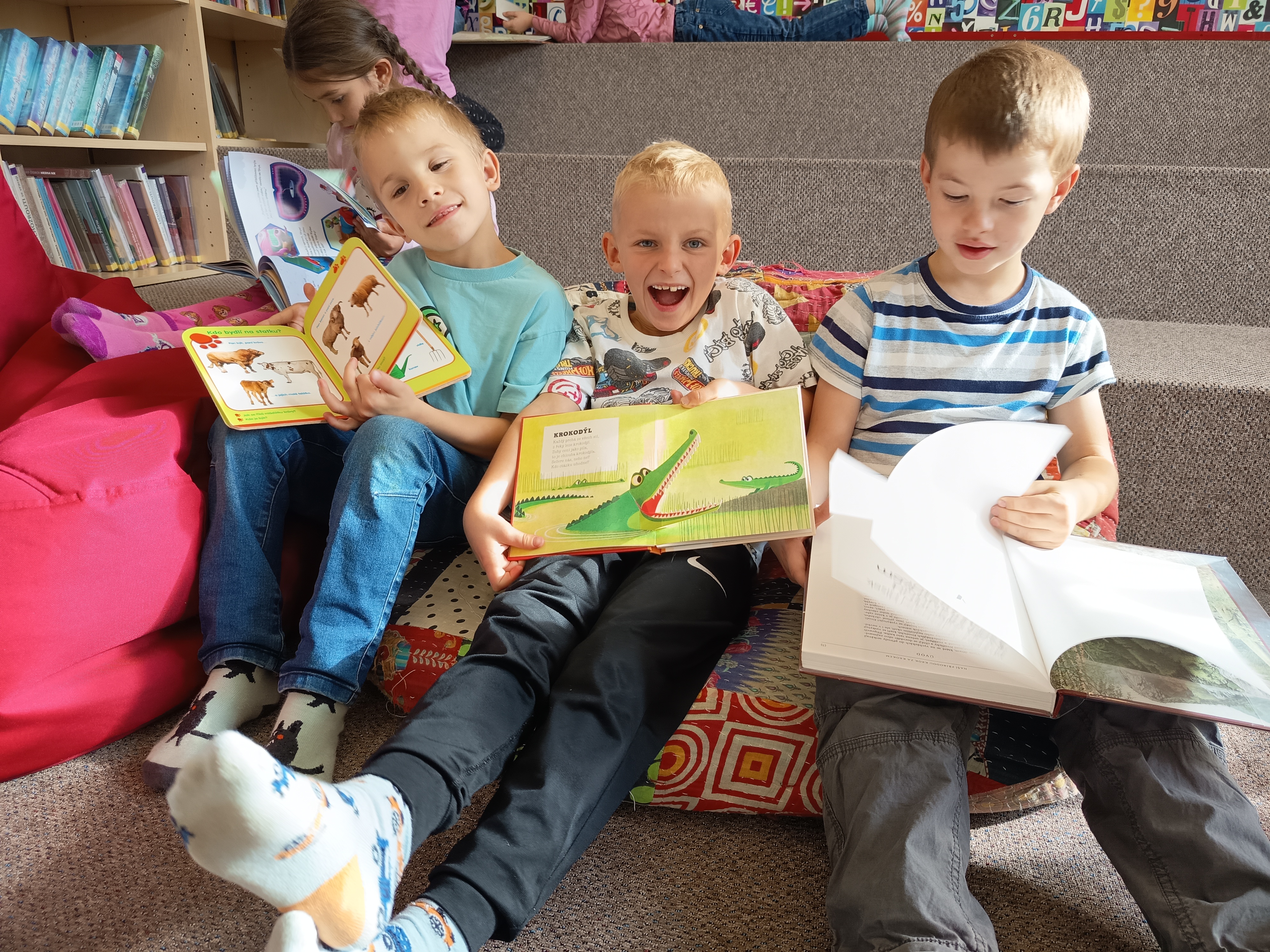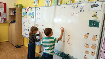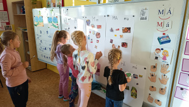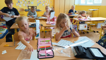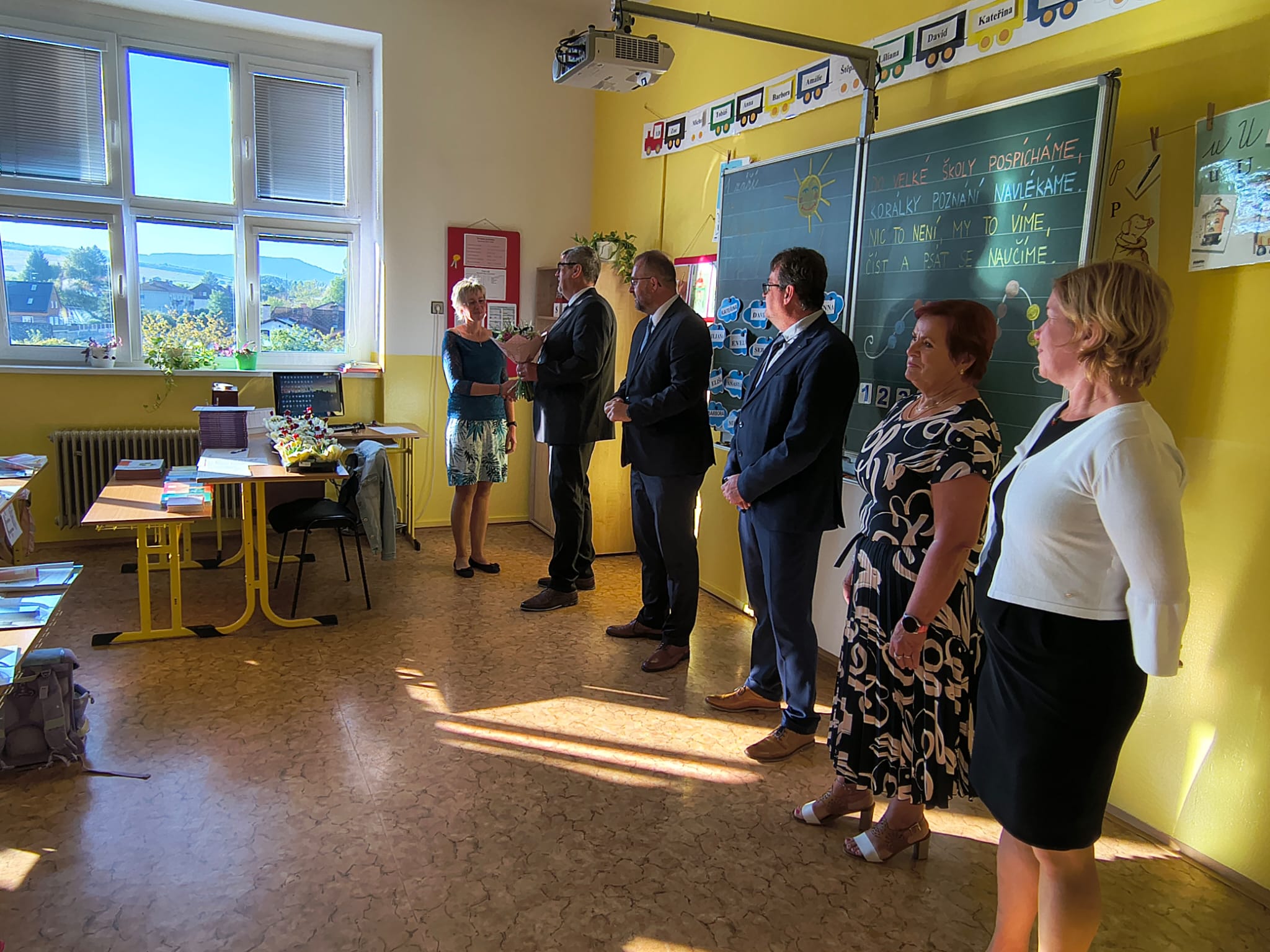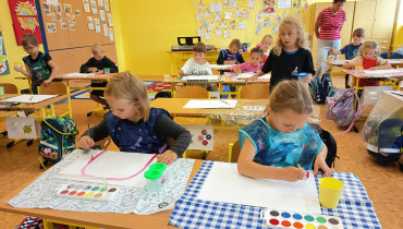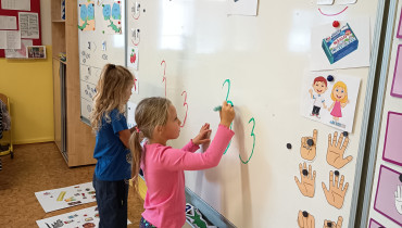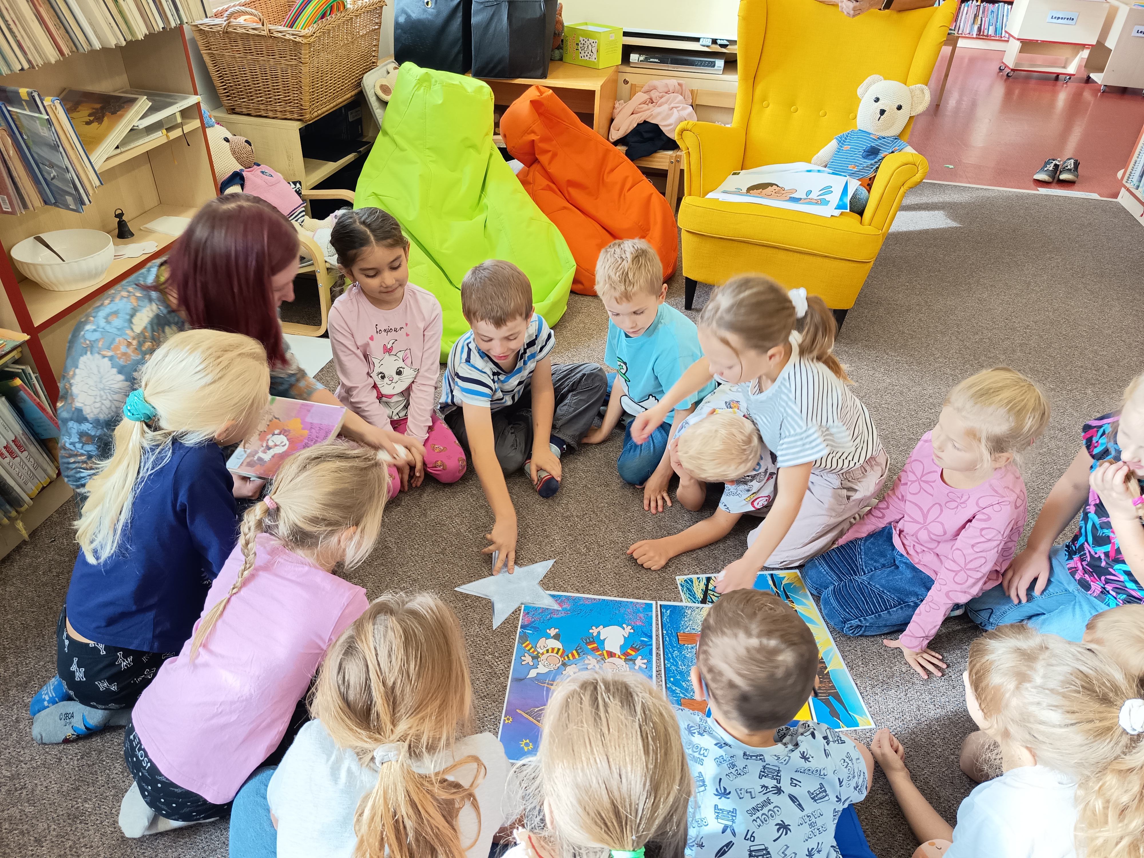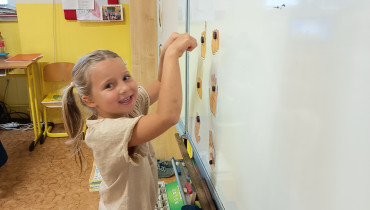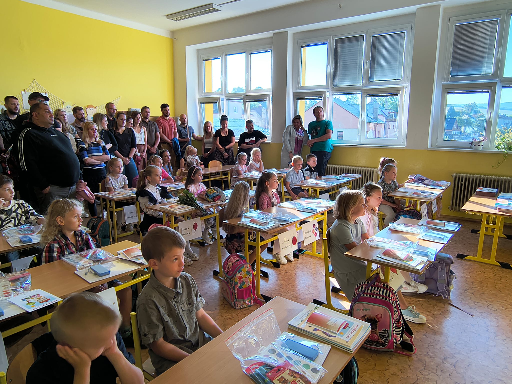 Přivítání žáčků třídy 1.B zástupci z města i naší školy, naše pilná práce během prvních dvou měsíců, podzimní slunné chvilky strávené venku, návštěva knihovny s programem Křemílka a Vochomůrky a pražské divadelní představení s pohádkou O perníkovém srdci a čarodějné knize – k prohlédnutí v následující fotogalerii.