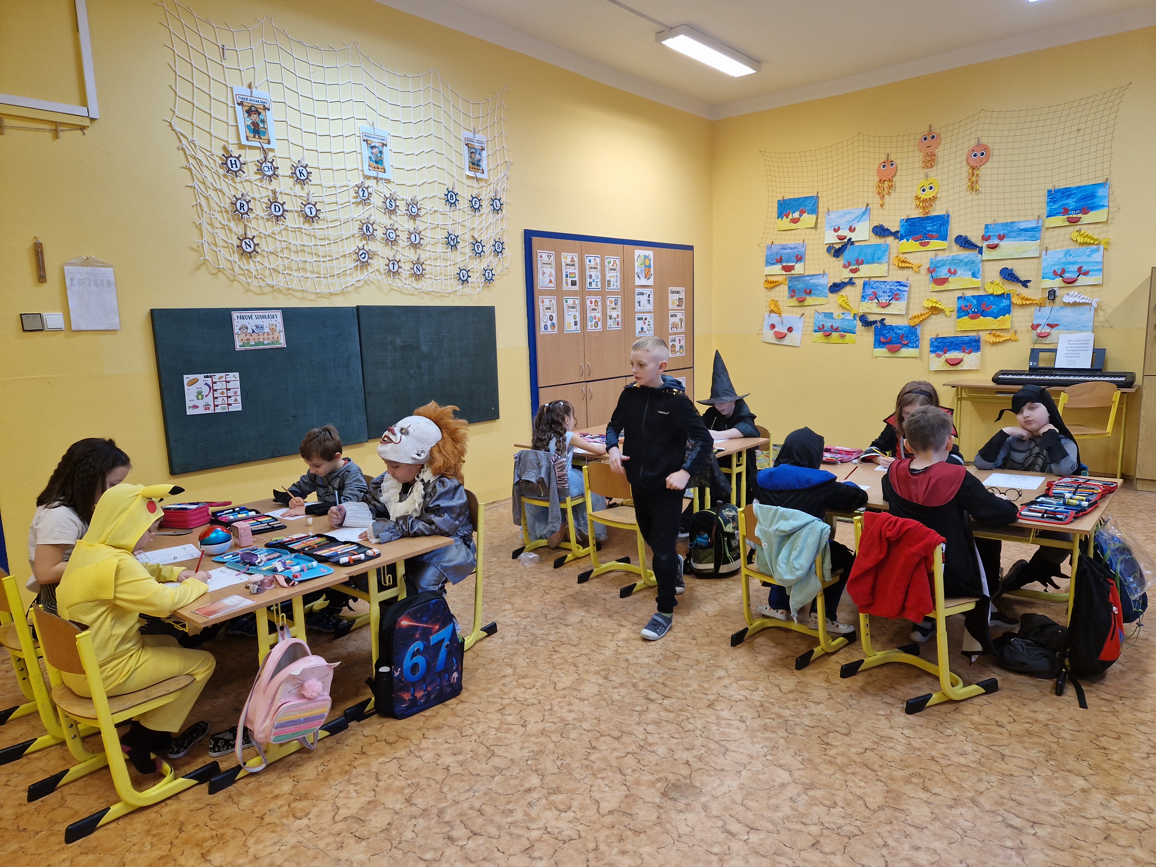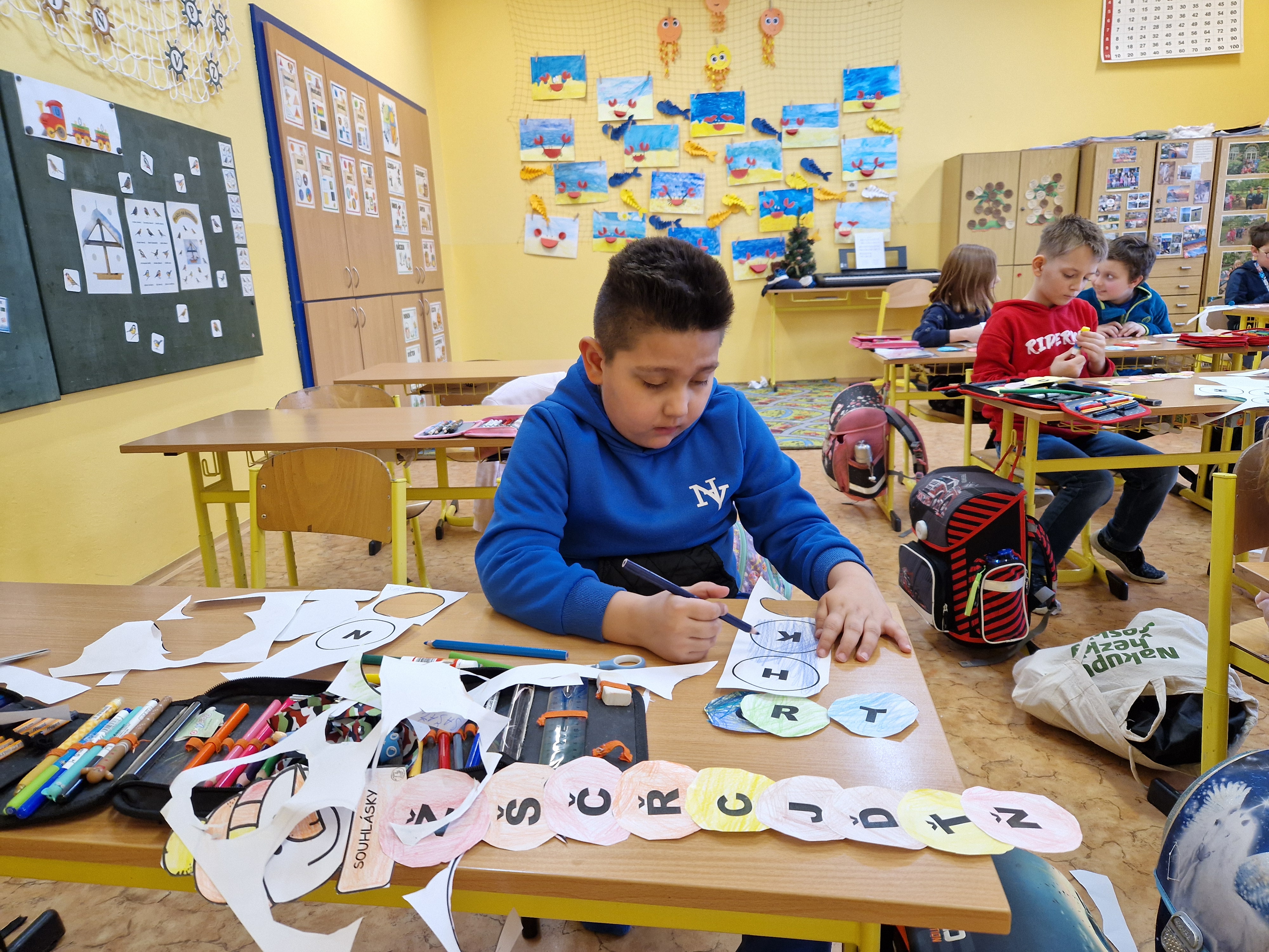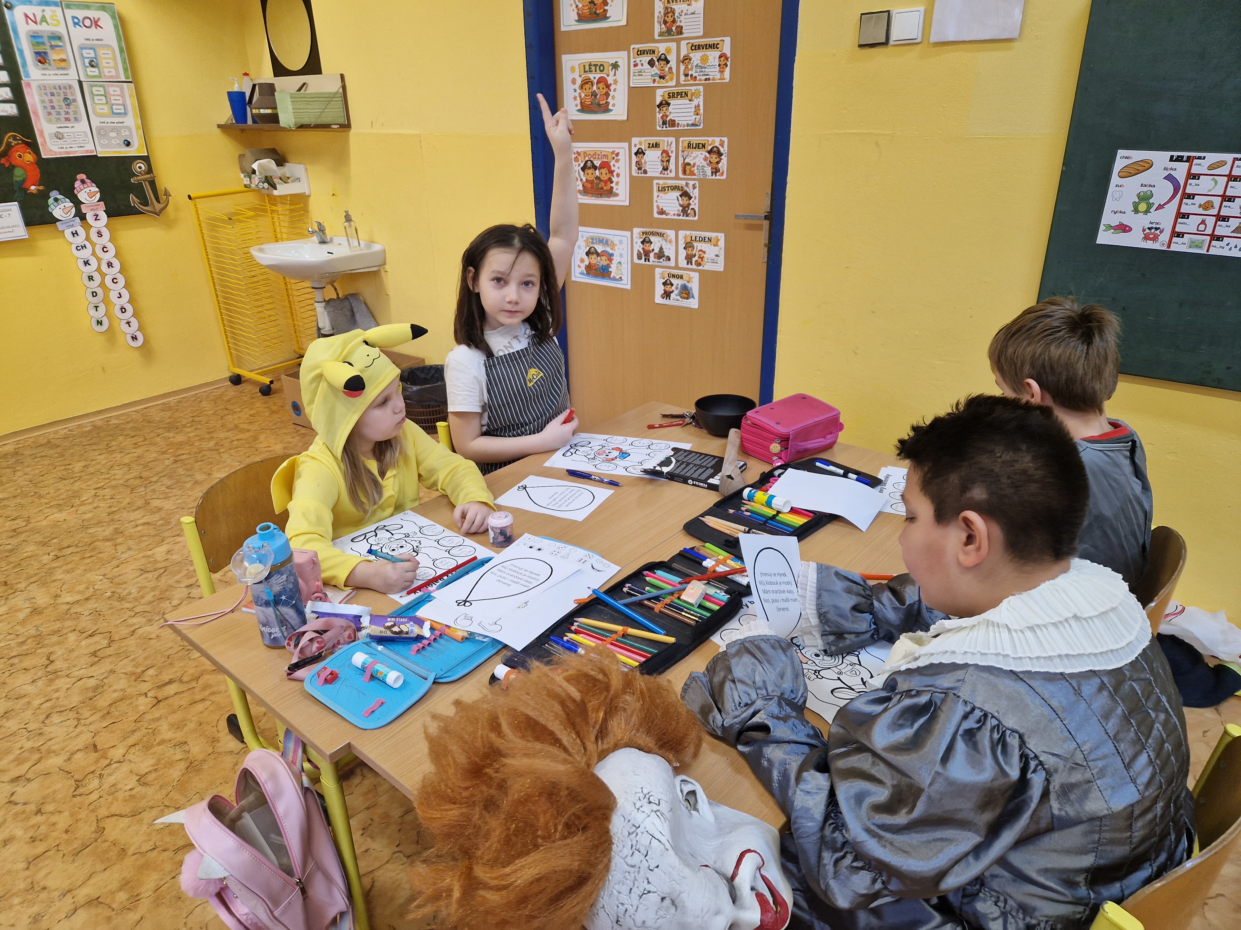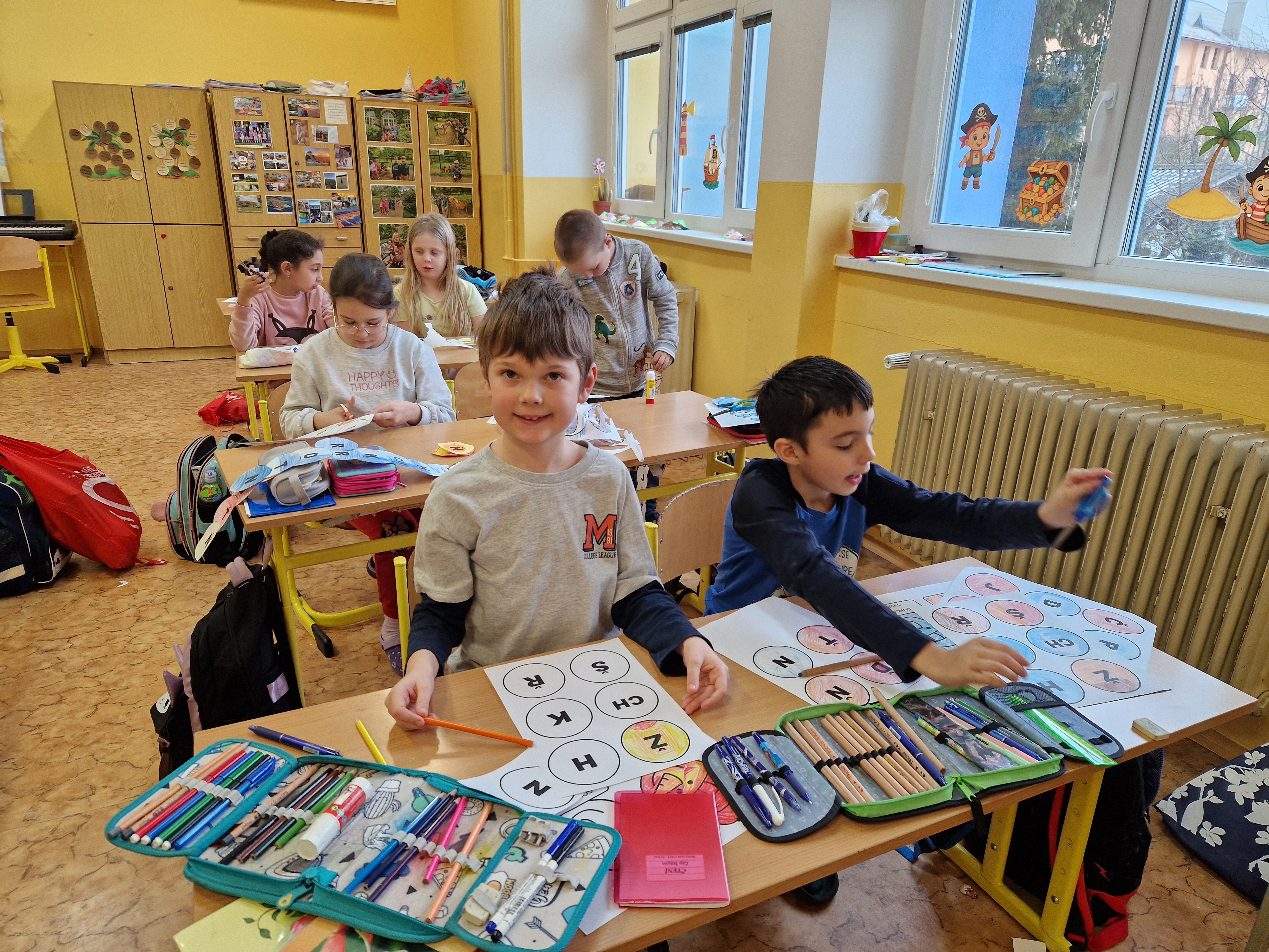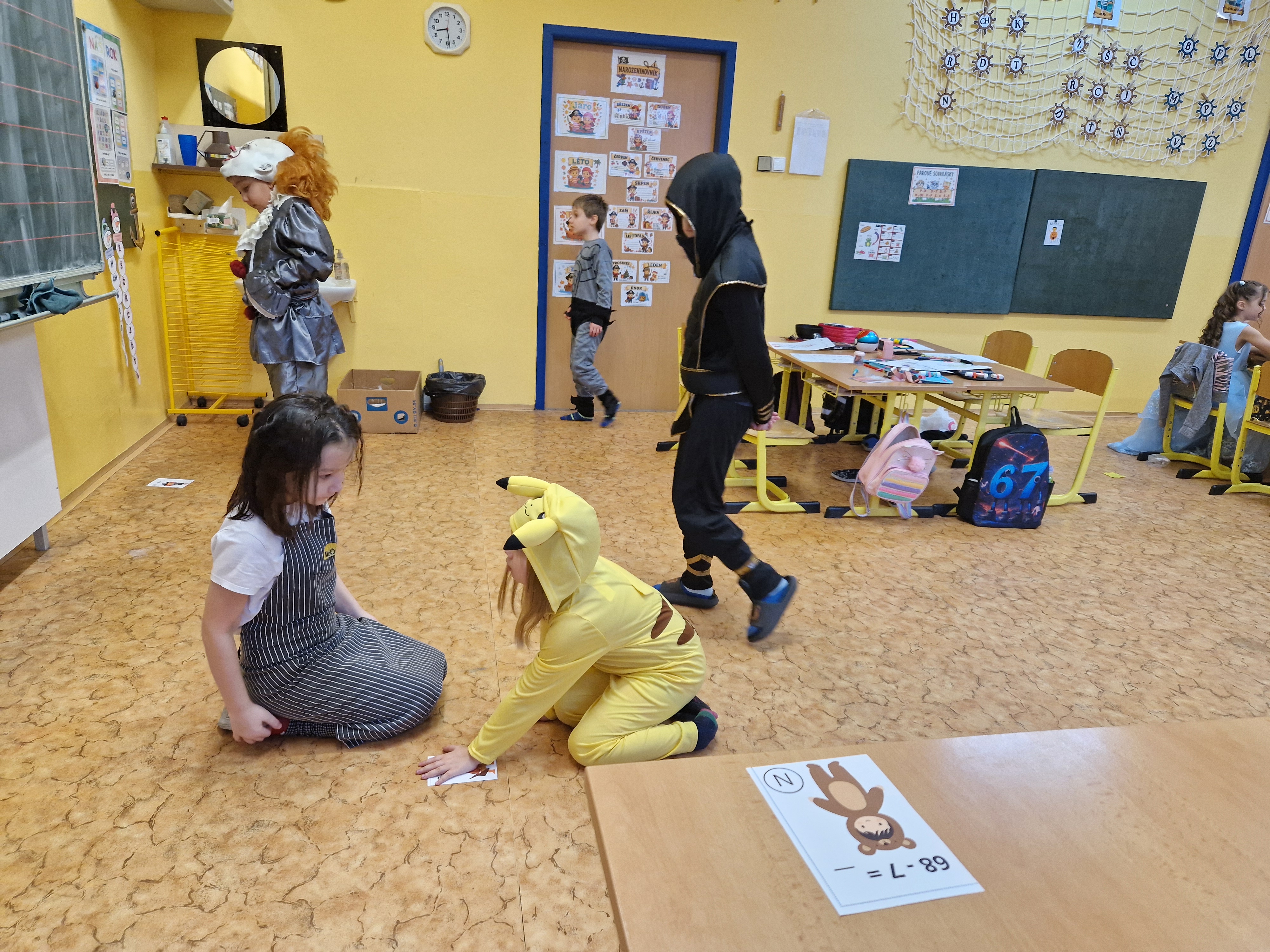 V lednu jsme s dětmi navštívili Dřevěnku a seznámili se s životem našich předků. Využili jsme také lednové mrazivé počasí a několikrát jsme si zabruslili na sídlišti. Před školou jsme stavěli sněhuláky a pak jsme je také v češtině vyrobili z papíru a procvičili tvrdé a měkké souhlásky. Únor je měsíc karnevalů a i my jsme si ho společně s 2.A a 2.C zorganizovali a pořádně užili. Děkuji rodičům za přípravu nádherných masek. A když už jsme měli pro letošek sehnané brusle, využili jsem je i dvakrát v únoru na umělé ledové ploše na víceúčelovém hřišti. V matematice jsme v tu dobu teoreticky nakupovali školní potřeby a na víceúčelovém hřišti jsme si v praxi nakoupili drobnosti pro naše mlsné jazýčky. Tahle praktická činnost baví vždy děti nejvíce :-) Ve třídě slavíme během roku také svátky a narozeniny. Rodiče nám často připraví krásné dárečky. Děkujeme, vždy to všechny moc potěší!