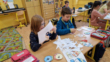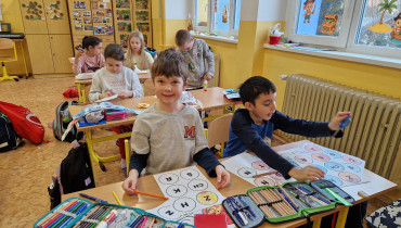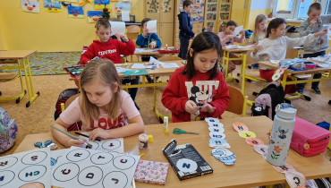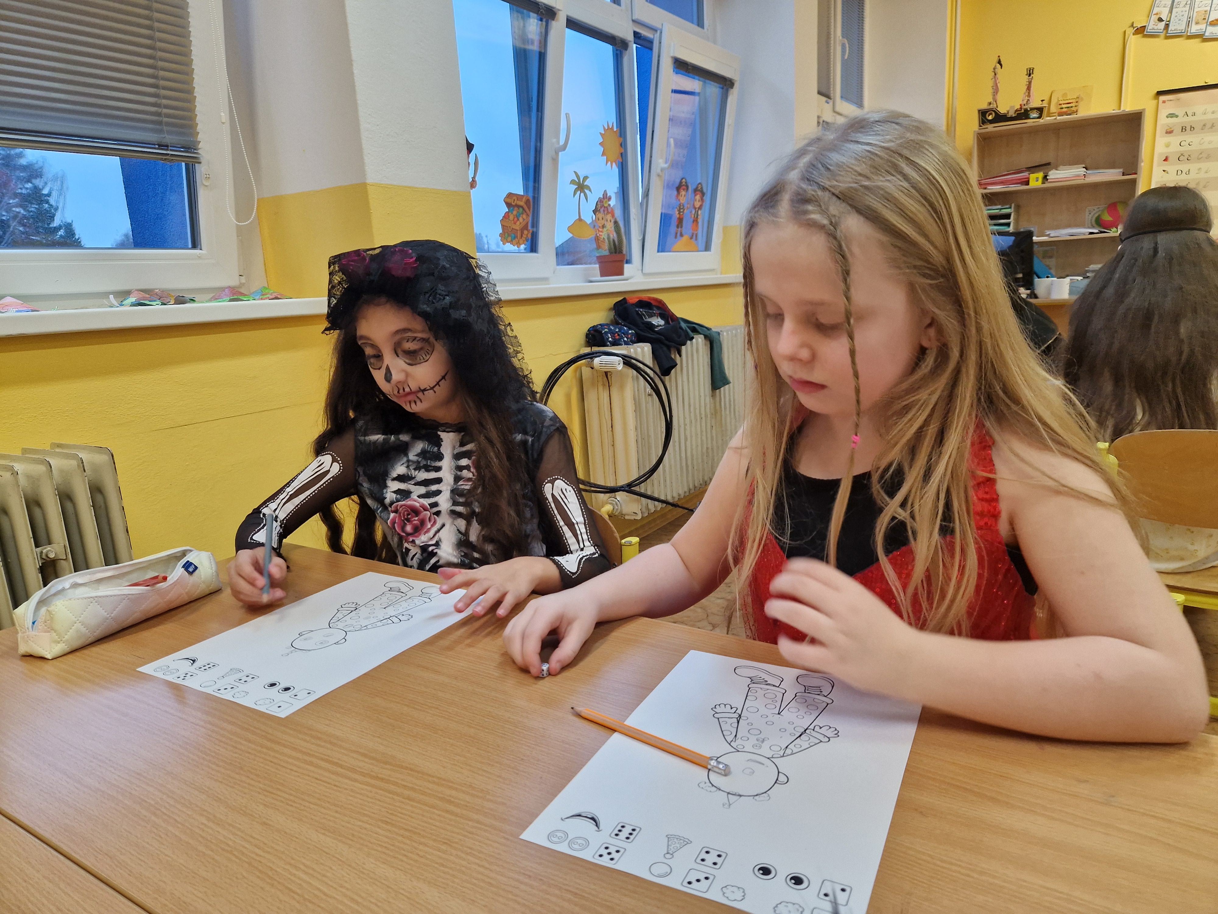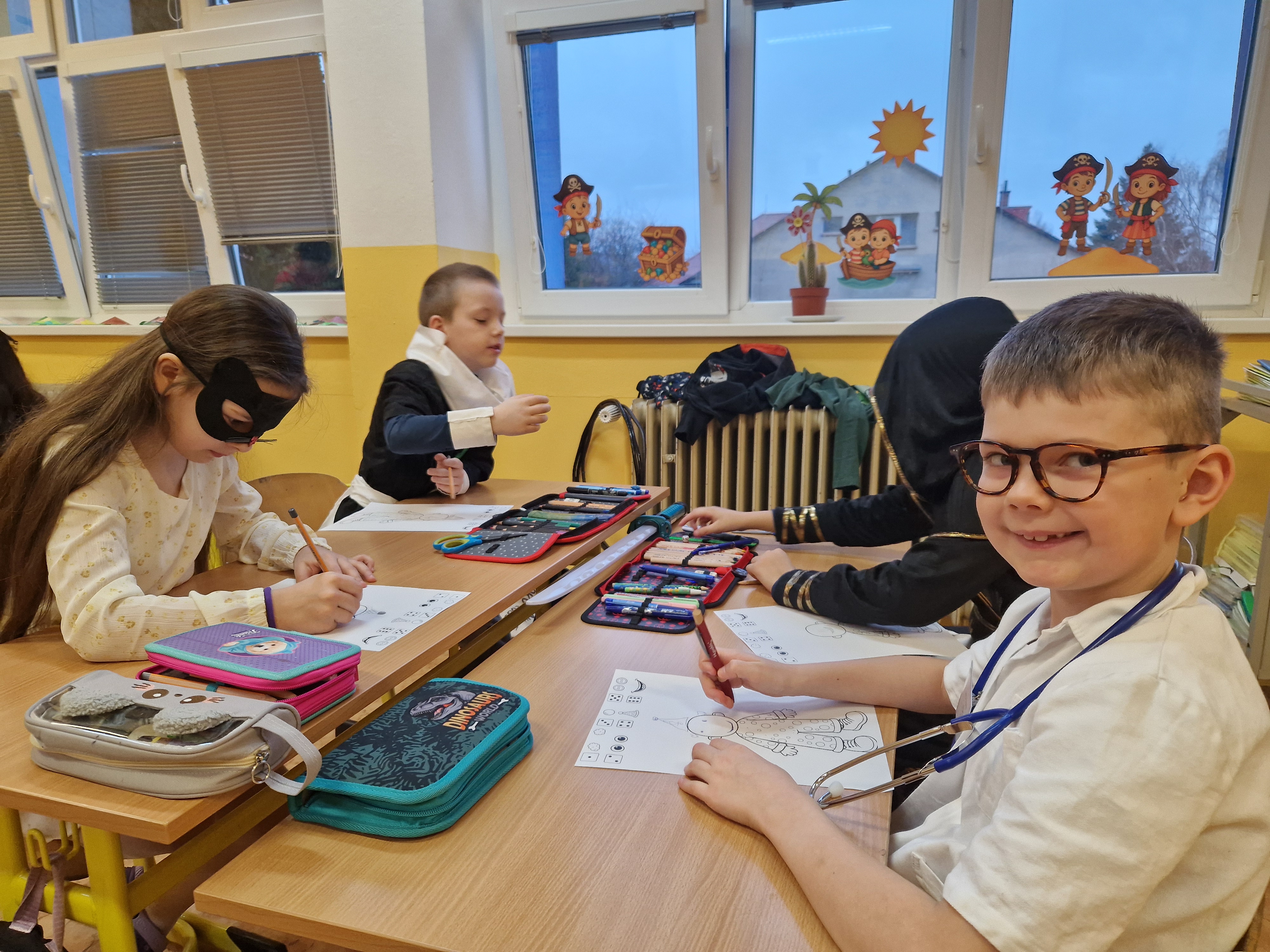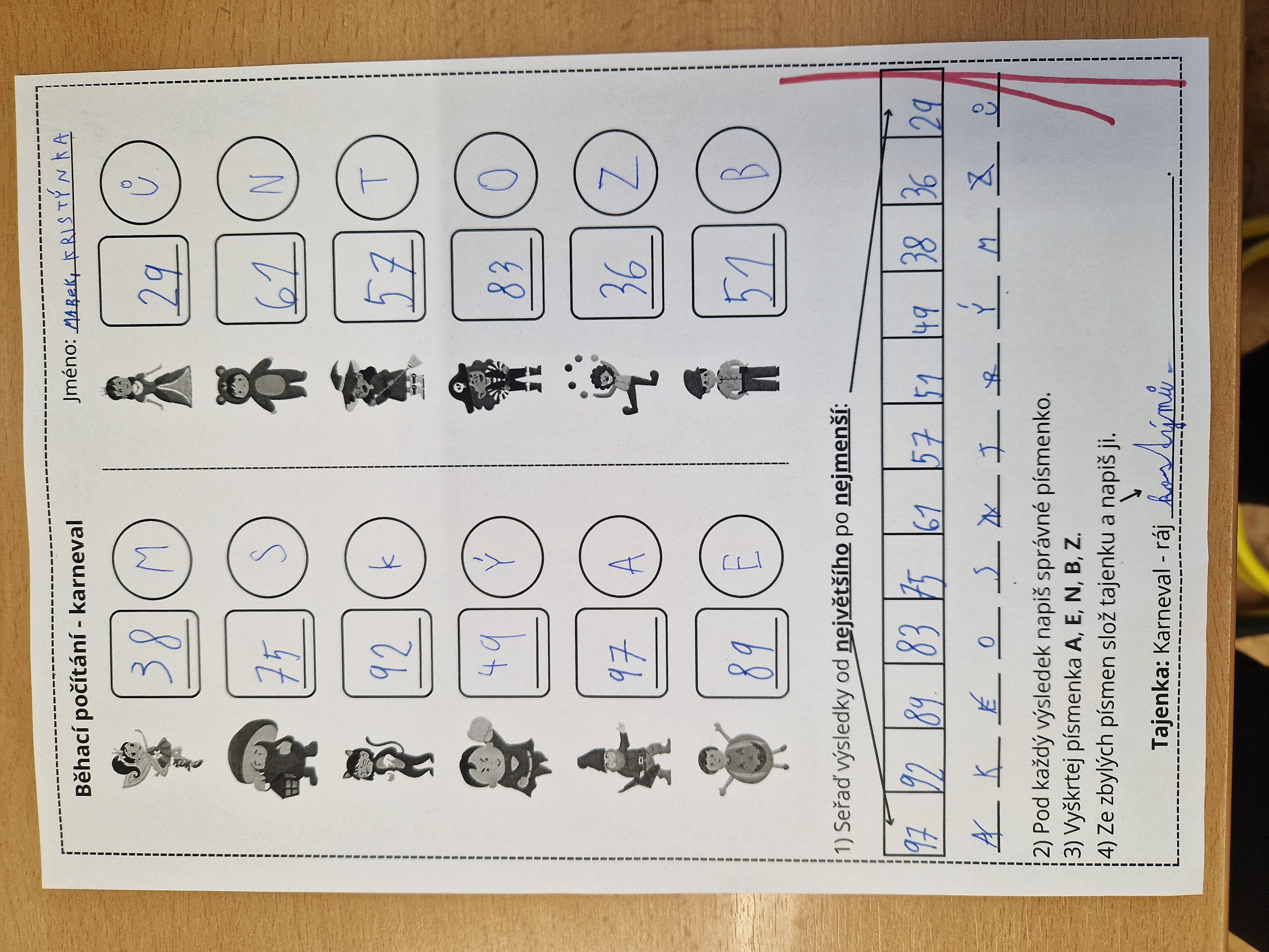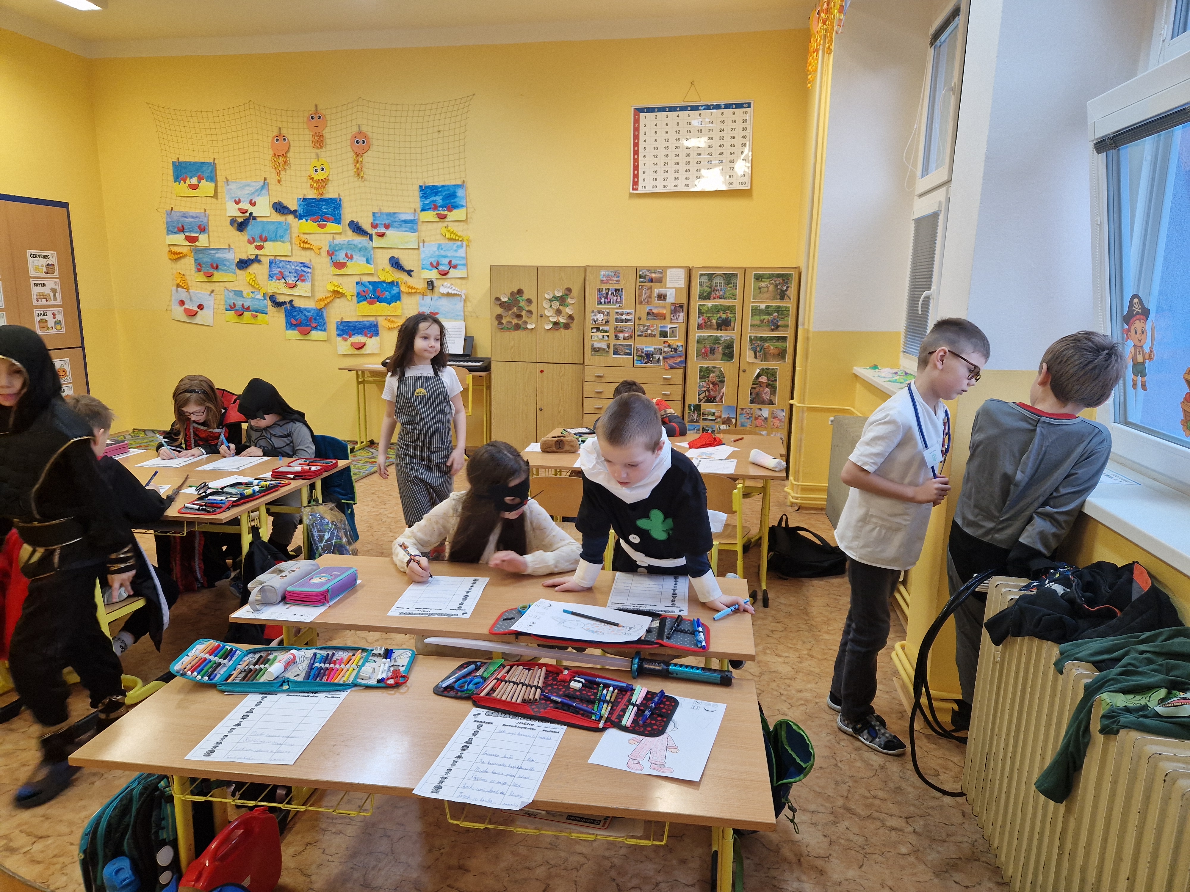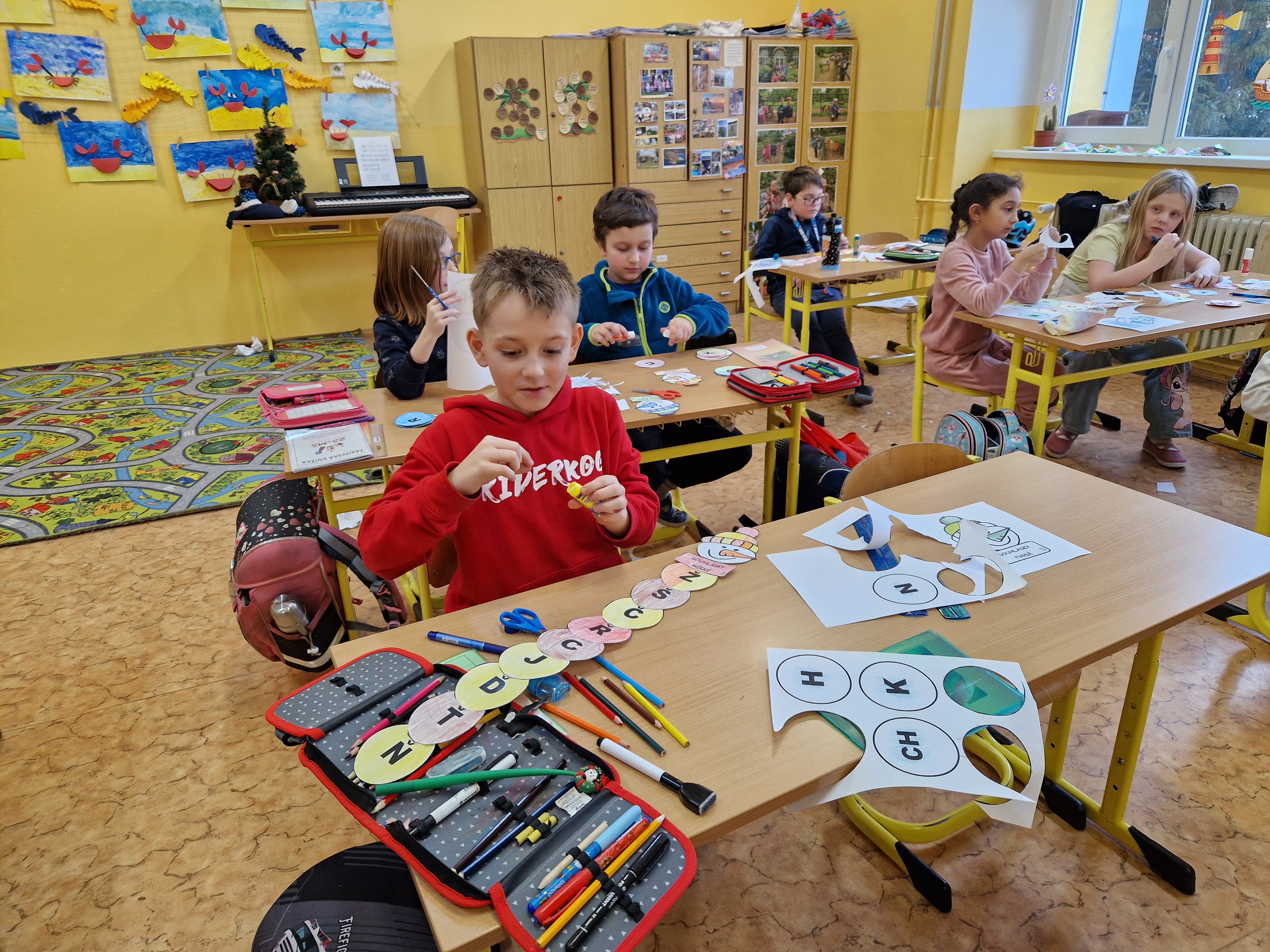 V lednu jsme s dětmi navštívili Dřevěnku a seznámili se s životem našich předků. Využili jsme také lednové mrazivé počasí a několikrát jsme si zabruslili na sídlišti. Před školou jsme stavěli sněhuláky a pak jsme je také v češtině vyrobili z papíru a procvičili tvrdé a měkké souhlásky. Únor je měsíc karnevalů a i my jsme si ho společně s 2.A a 2.C zorganizovali a pořádně užili. Děkuji rodičům za přípravu nádherných masek. A když už jsme měli pro letošek sehnané brusle, využili jsem je i dvakrát v únoru na umělé ledové ploše na víceúčelovém hřišti. V matematice jsme v tu dobu teoreticky nakupovali školní potřeby a na víceúčelovém hřišti jsme si v praxi nakoupili drobnosti pro naše mlsné jazýčky. Tahle praktická činnost baví vždy děti nejvíce :-) Ve třídě slavíme během roku také svátky a narozeniny. Rodiče nám často připraví krásné dárečky. Děkujeme, vždy to všechny moc potěší!