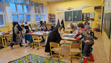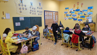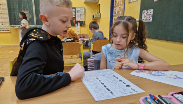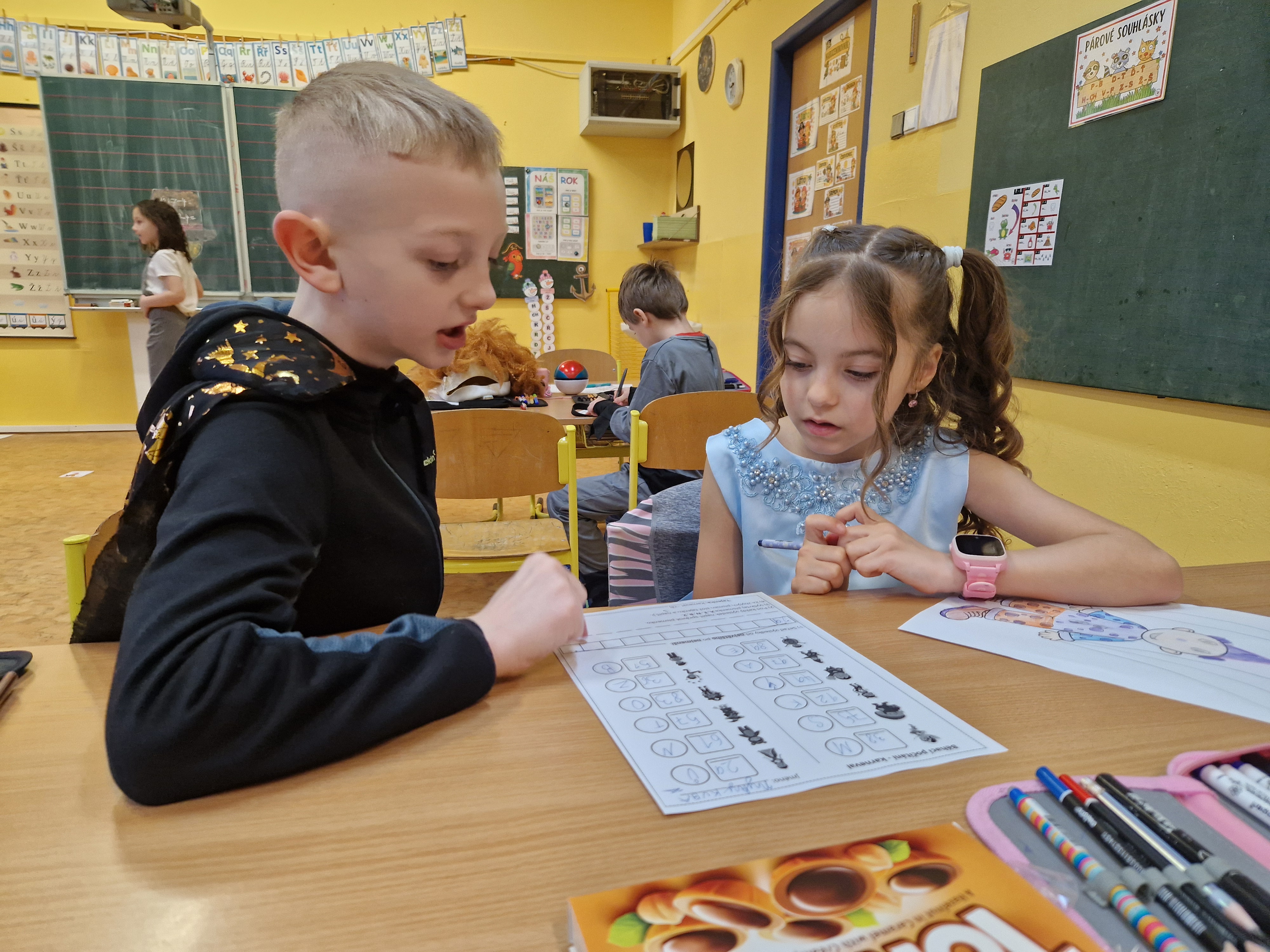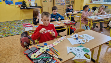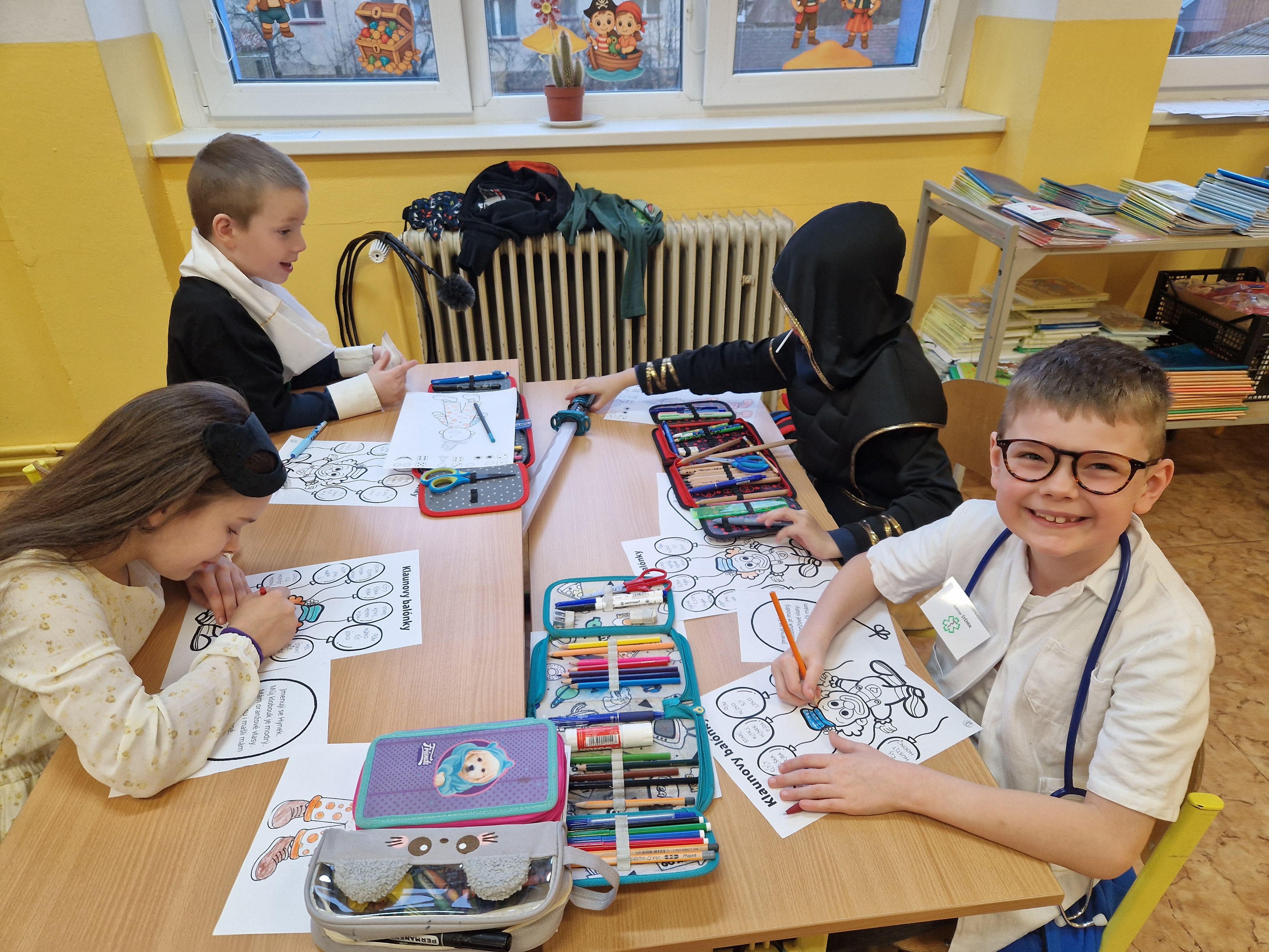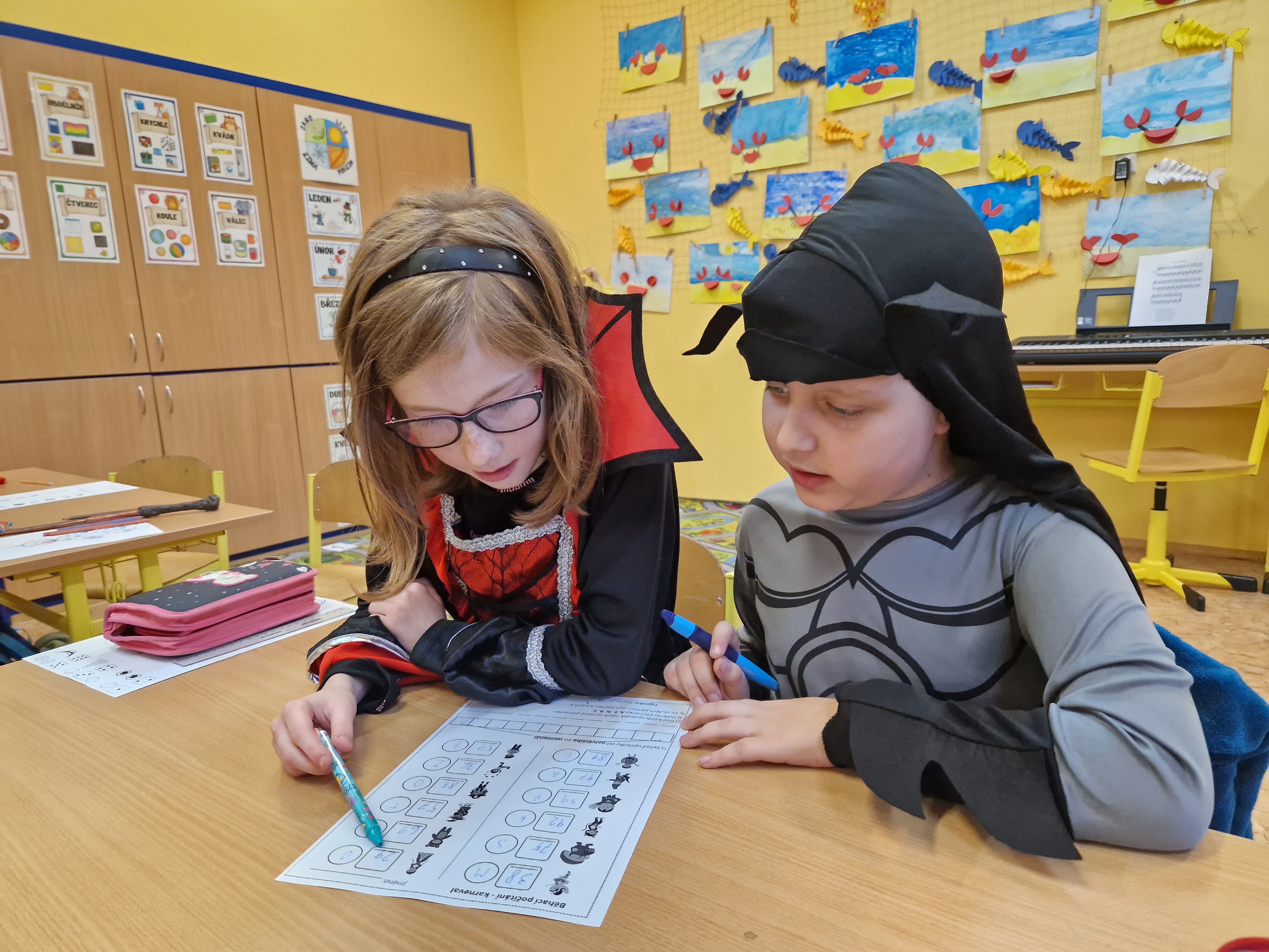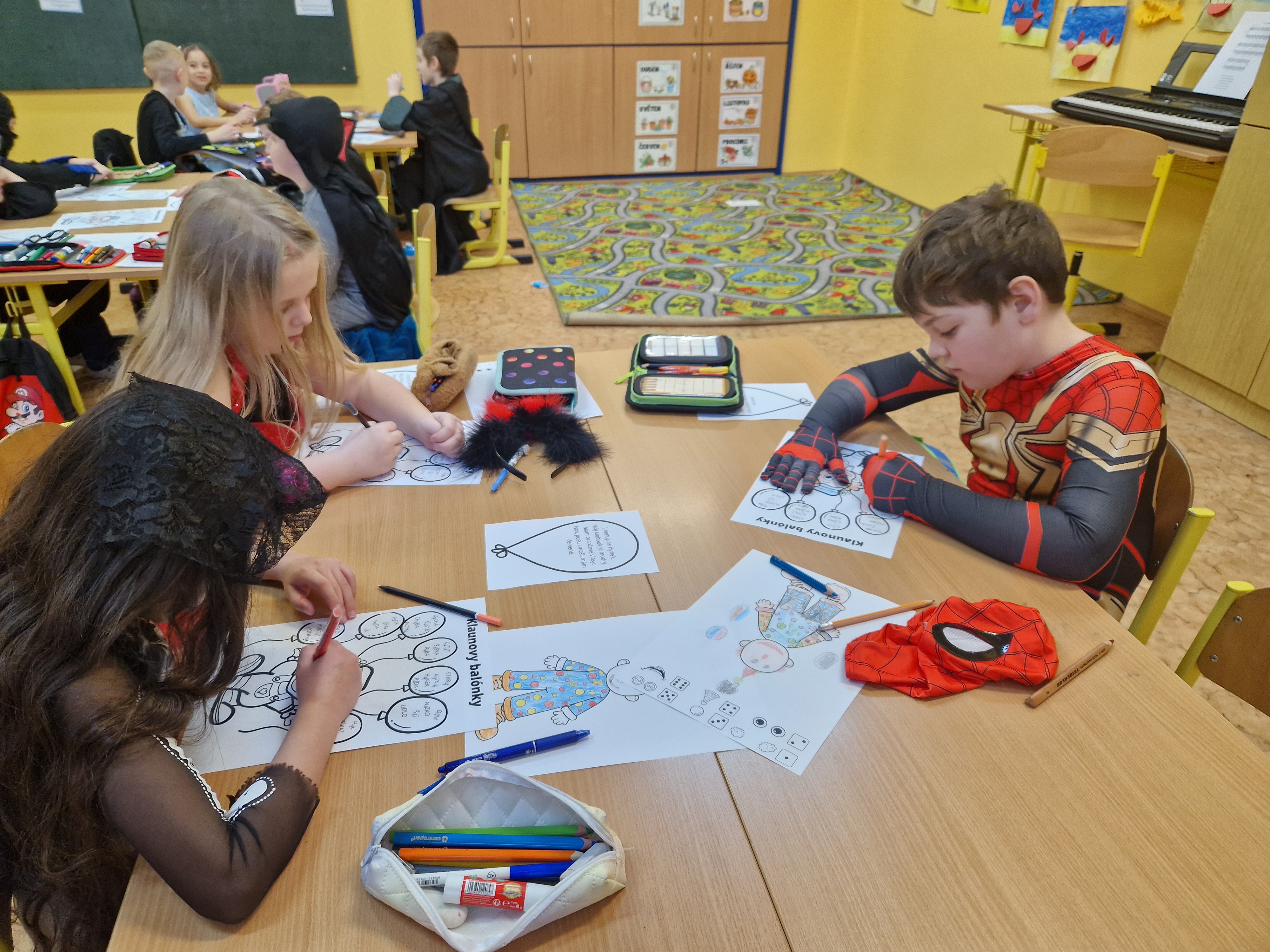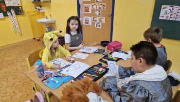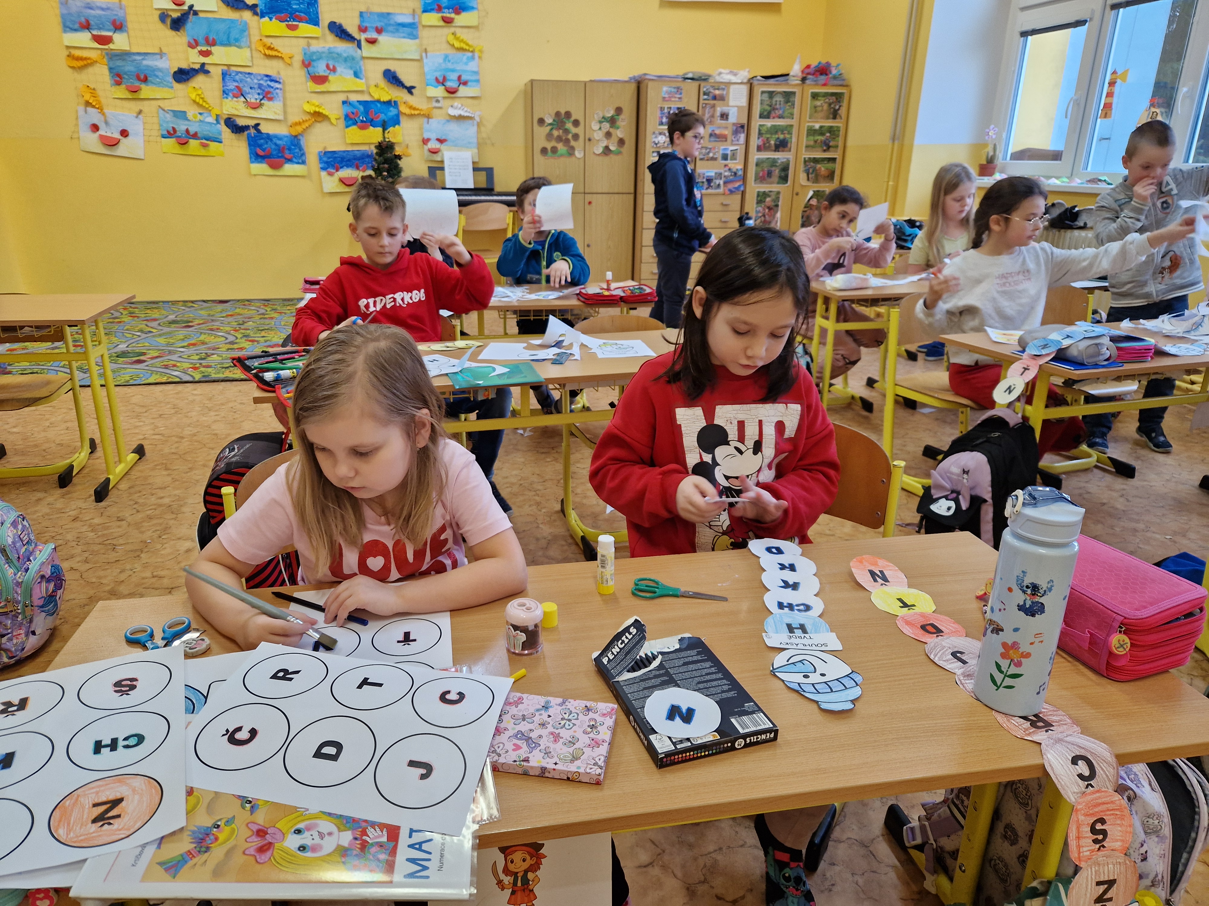 V lednu jsme s dětmi navštívili Dřevěnku a seznámili se s životem našich předků. Využili jsme také lednové mrazivé počasí a několikrát jsme si zabruslili na sídlišti. Před školou jsme stavěli sněhuláky a pak jsme je také v češtině vyrobili z papíru a procvičili tvrdé a měkké souhlásky. Únor je měsíc karnevalů a i my jsme si ho společně s 2.A a 2.C zorganizovali a pořádně užili. Děkuji rodičům za přípravu nádherných masek. A když už jsme měli pro letošek sehnané brusle, využili jsem je i dvakrát v únoru na umělé ledové ploše na víceúčelovém hřišti. V matematice jsme v tu dobu teoreticky nakupovali školní potřeby a na víceúčelovém hřišti jsme si v praxi nakoupili drobnosti pro naše mlsné jazýčky. Tahle praktická činnost baví vždy děti nejvíce :-) Ve třídě slavíme během roku také svátky a narozeniny. Rodiče nám často připraví krásné dárečky. Děkujeme, vždy to všechny moc potěší!