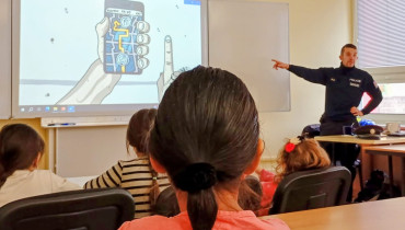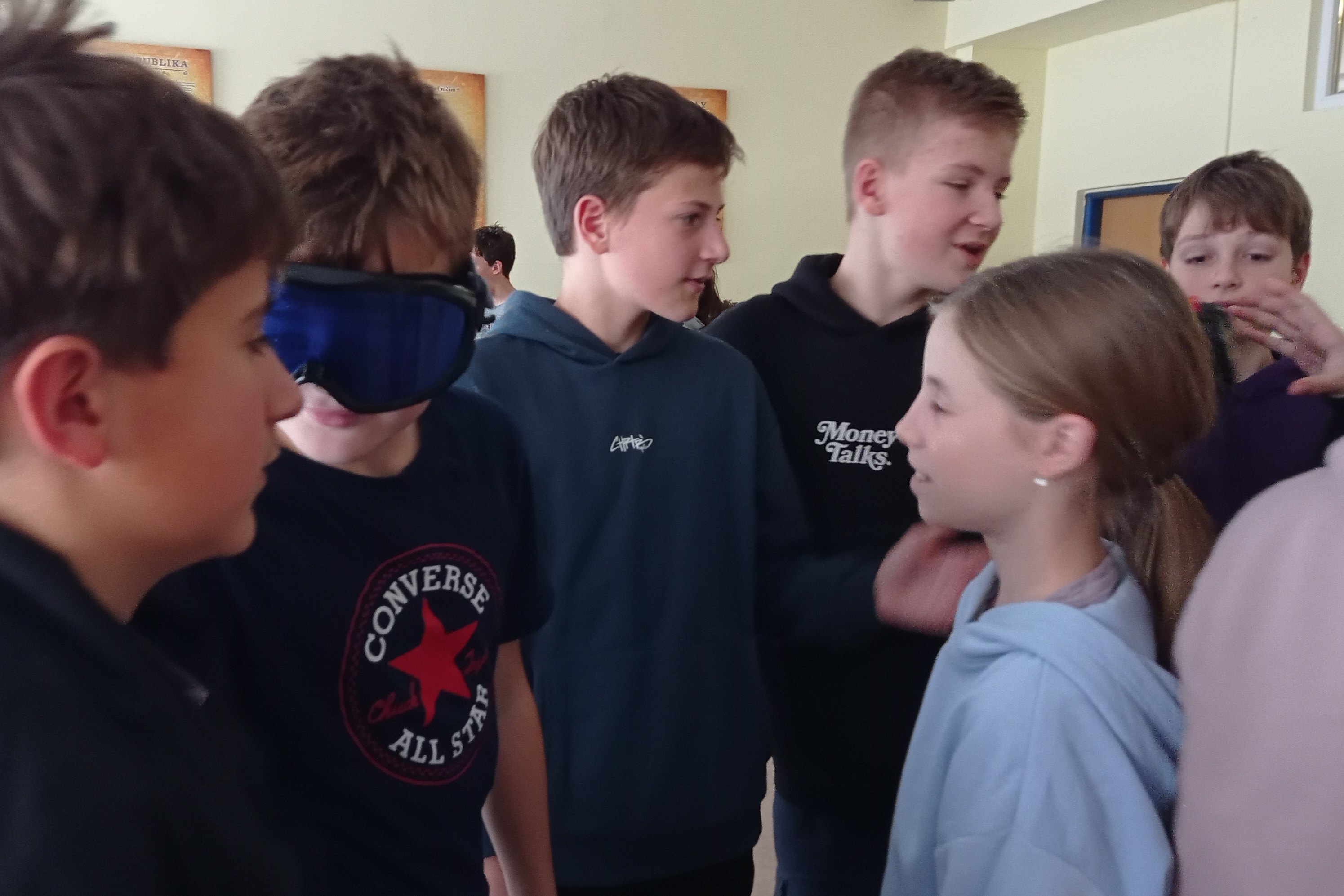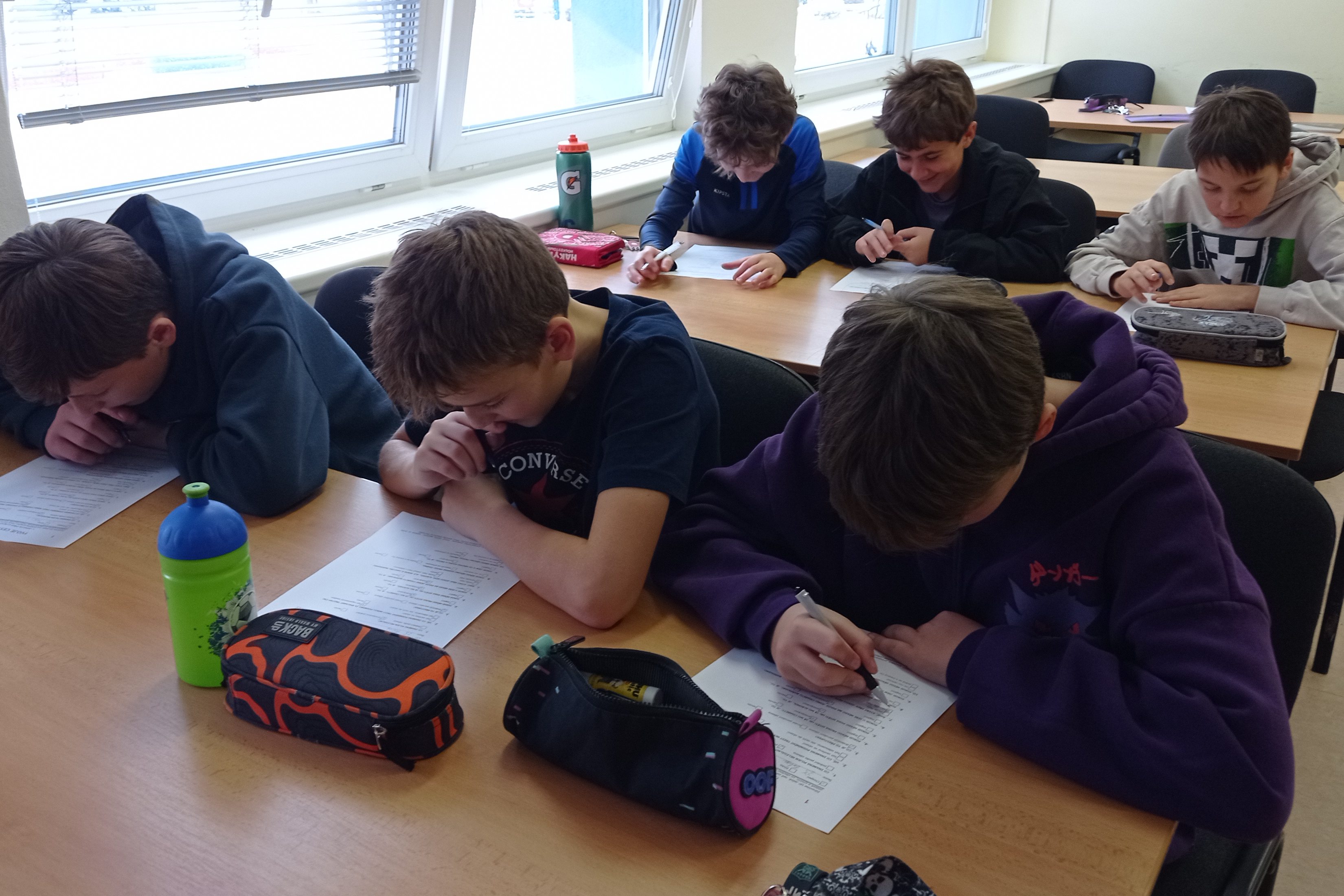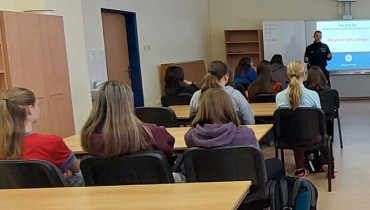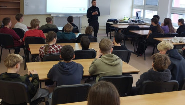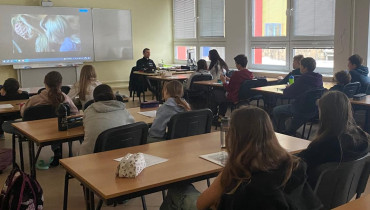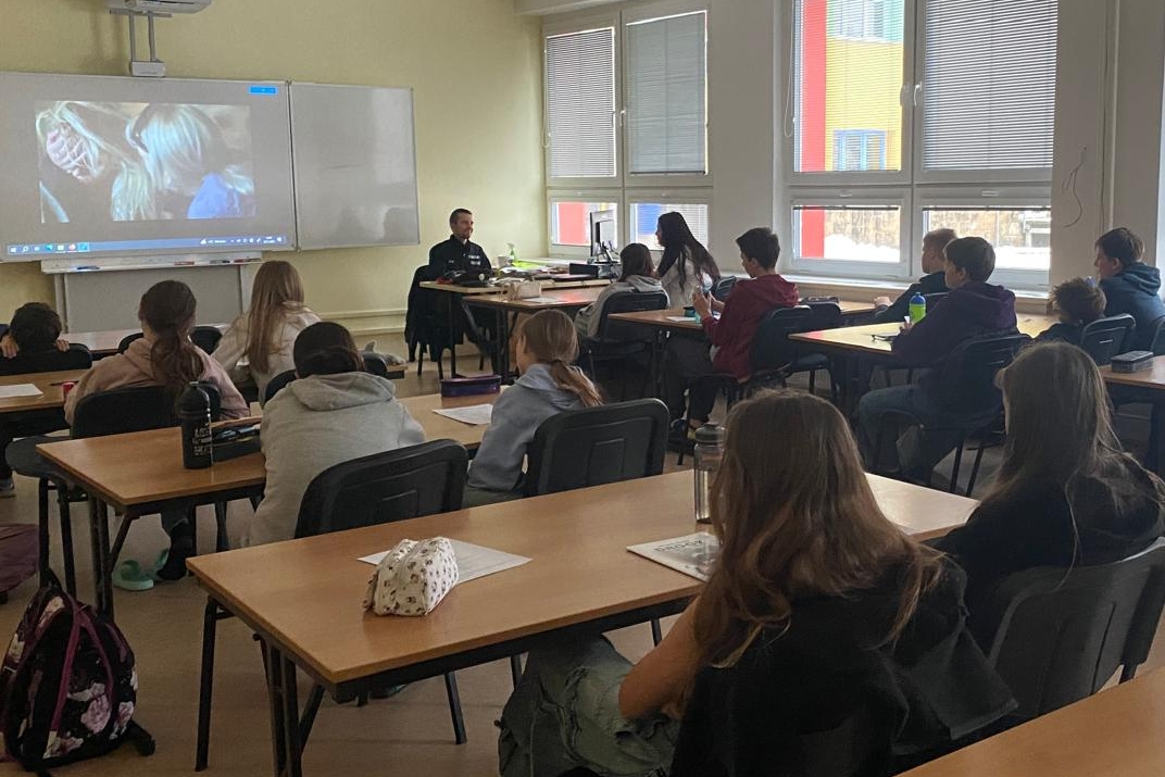 Šesťáci se zaměřili na rizika spojená s on-line světem. Poručík Mervart žákům přiblížil, jak rozpoznat podezřelé chování na internetu, jak se chránit před kyberšikanou a proč je důležité pečlivě zvažovat, co sdílíme na sociálních sítích.
