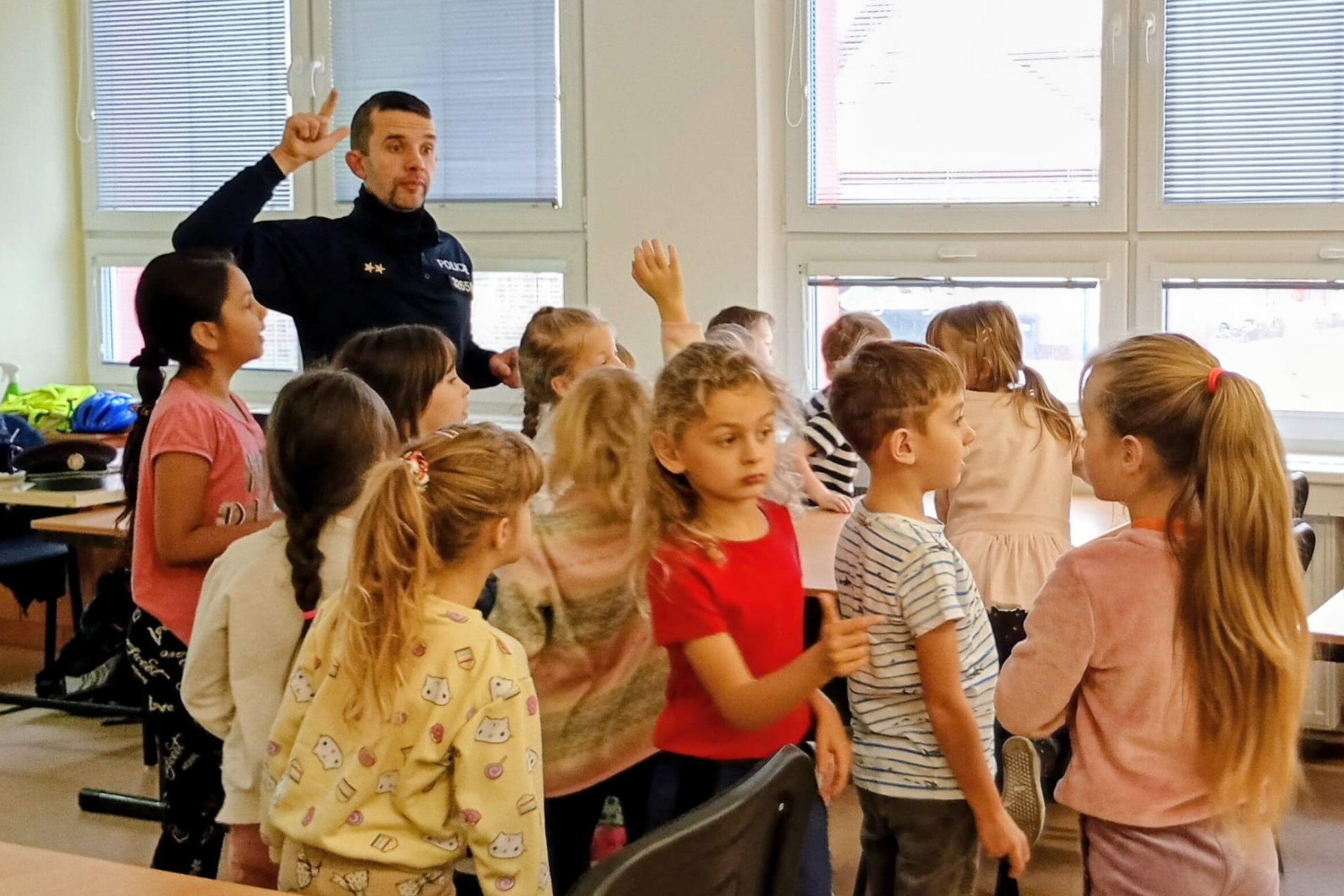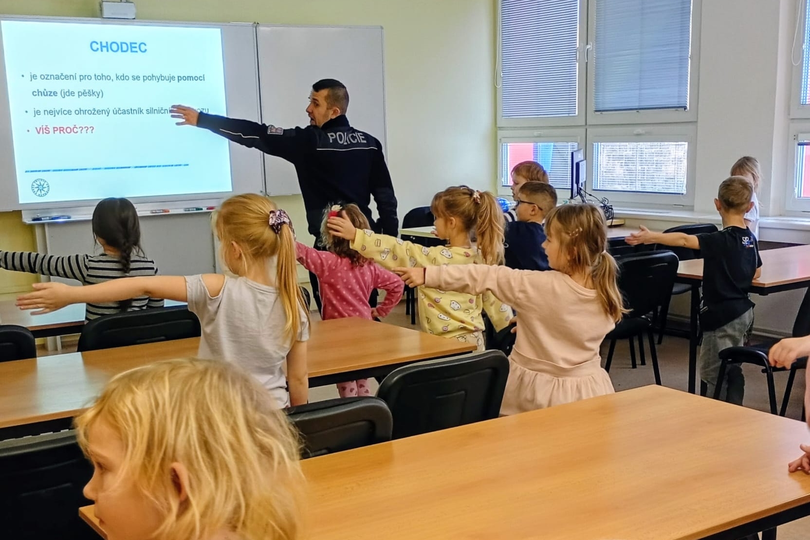 Nejmladší žáci se zábavnou a srozumitelnou formou věnovali základům dopravní výchovy. Povídali si o bezpečném pohybu v silničním provozu, správném přecházení vozovky i významu reflexních prvků. Děti měly možnost klást otázky a sdílet své vlastní zkušenosti z cest do školy.