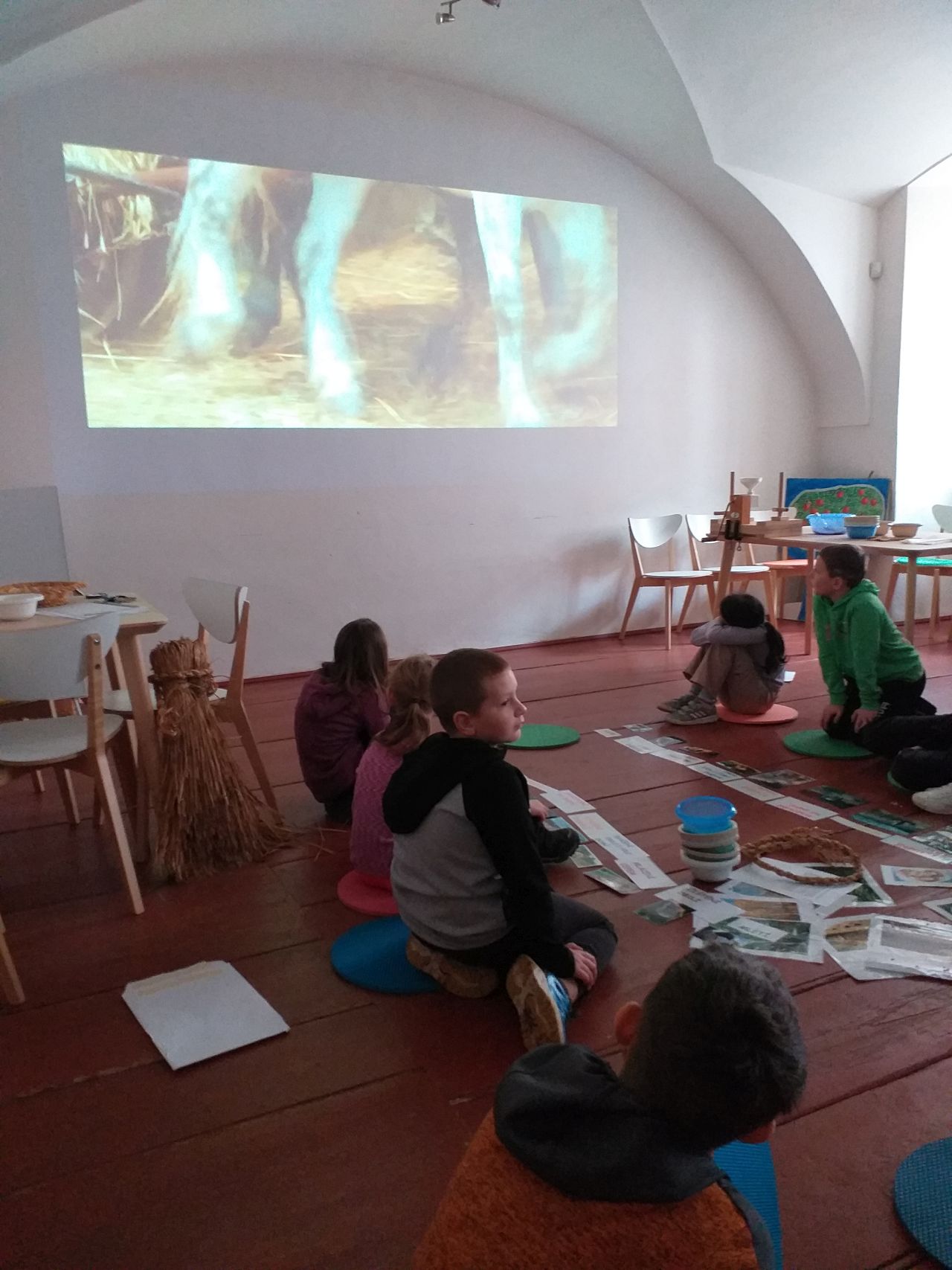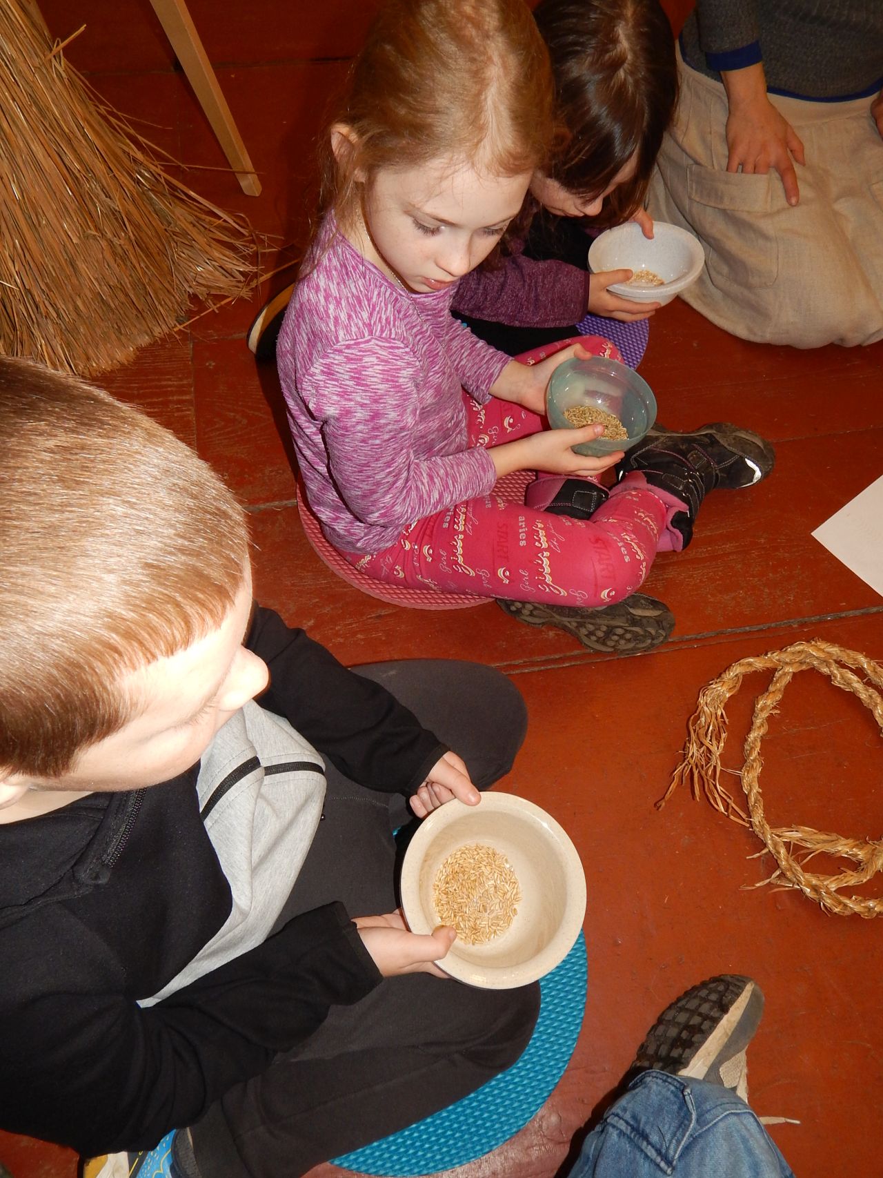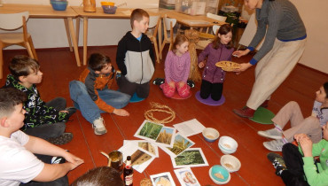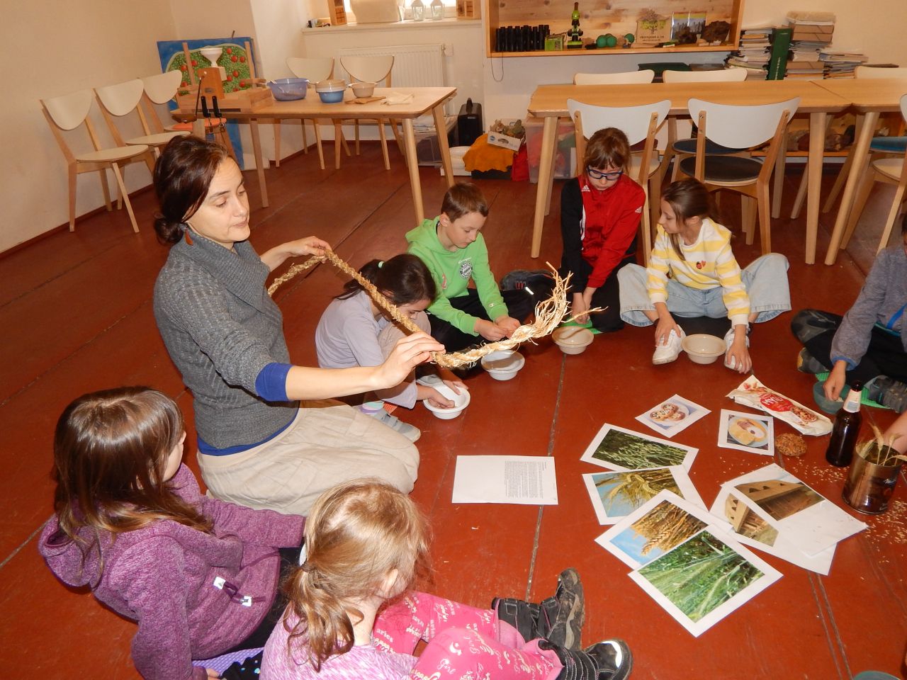 V úterý 17.3. jsme tedy vyrazili do Broumova Za příběhem obilí. Poznali jsme všechny druhy obilí, prošli si cestu, jak se dříve obilí pěstovalo. Od zasetí až po kosení kosou, stavění panáků na poli, svážení žebřiňákem, mlácení cepem i čištění zrna od plev. Pak jsme si sami vyzkoušeli na elektrickém mlýnku umlít pšeničnou mouku a na ručním mlýnku vyrobit ovesné vločky. Ty jsme si ochutili skořicí a přidali si rozinky a hned jsme měli dobré müsli. Mouku i müsli jsme si odnesli domů. Program byl zajímavý a velice se nám líbil.