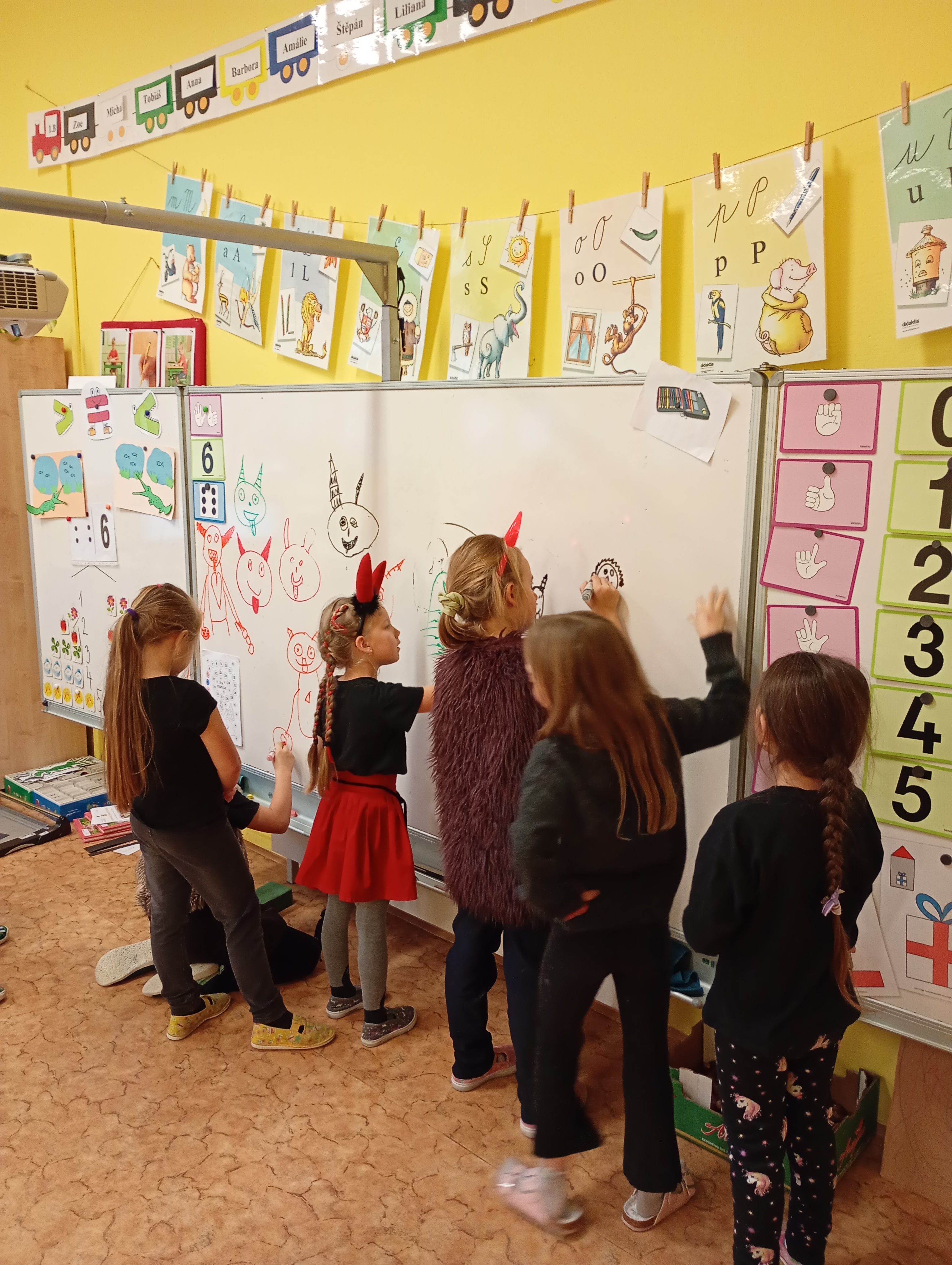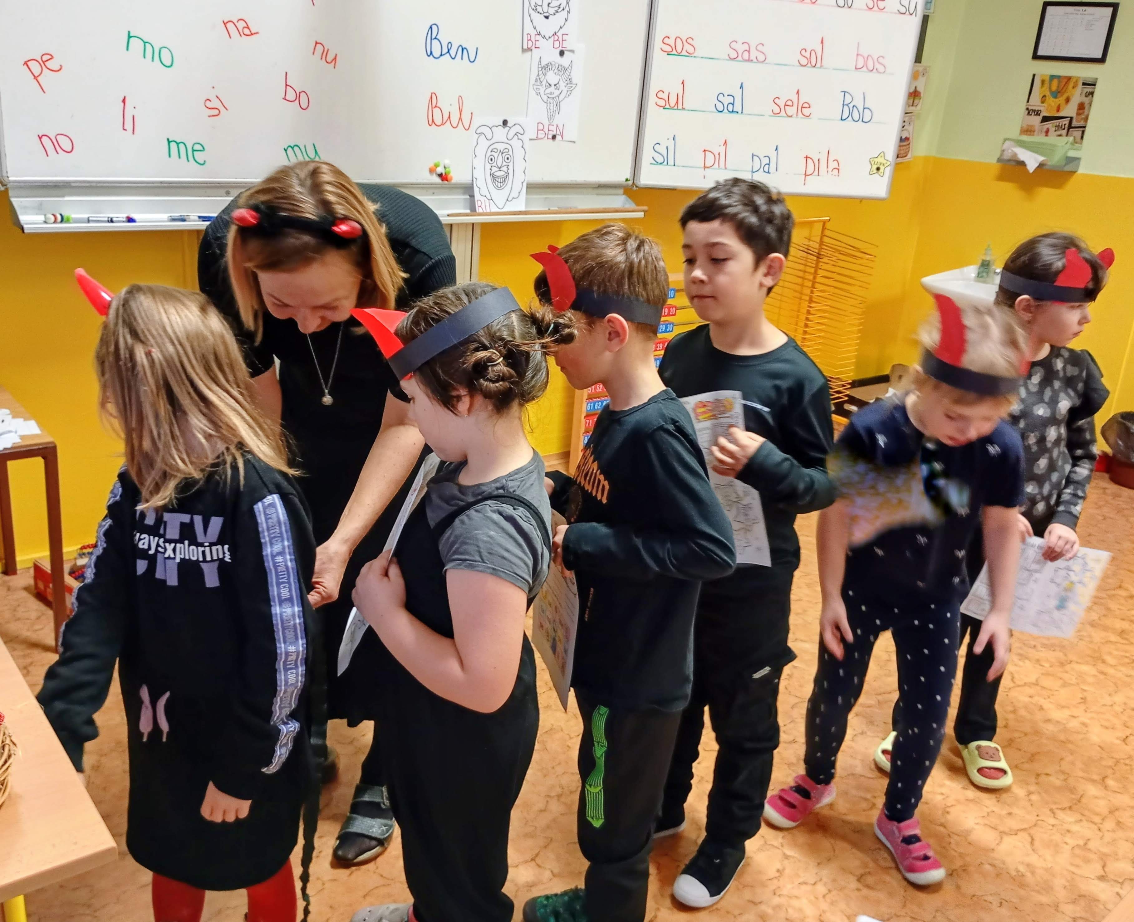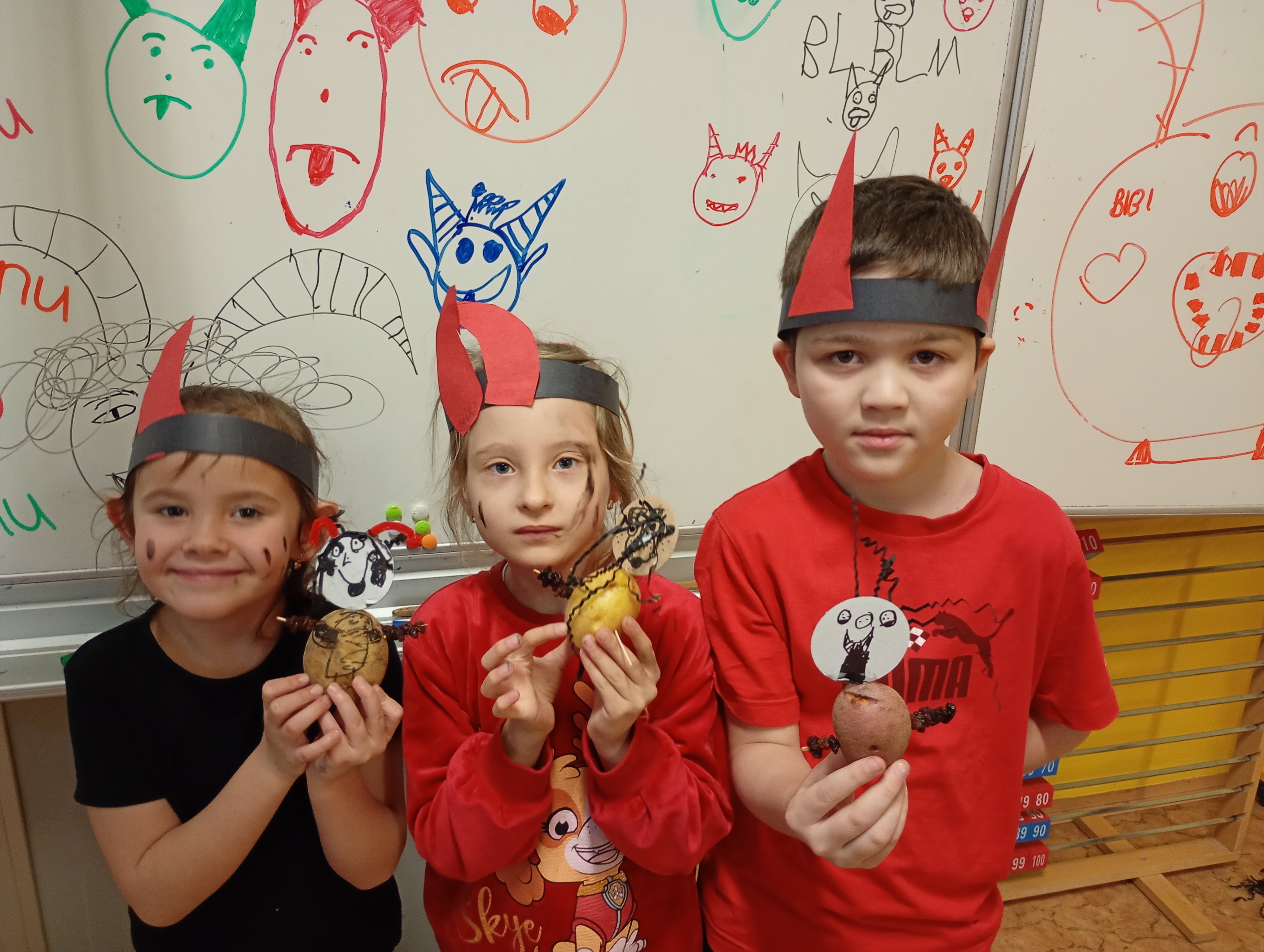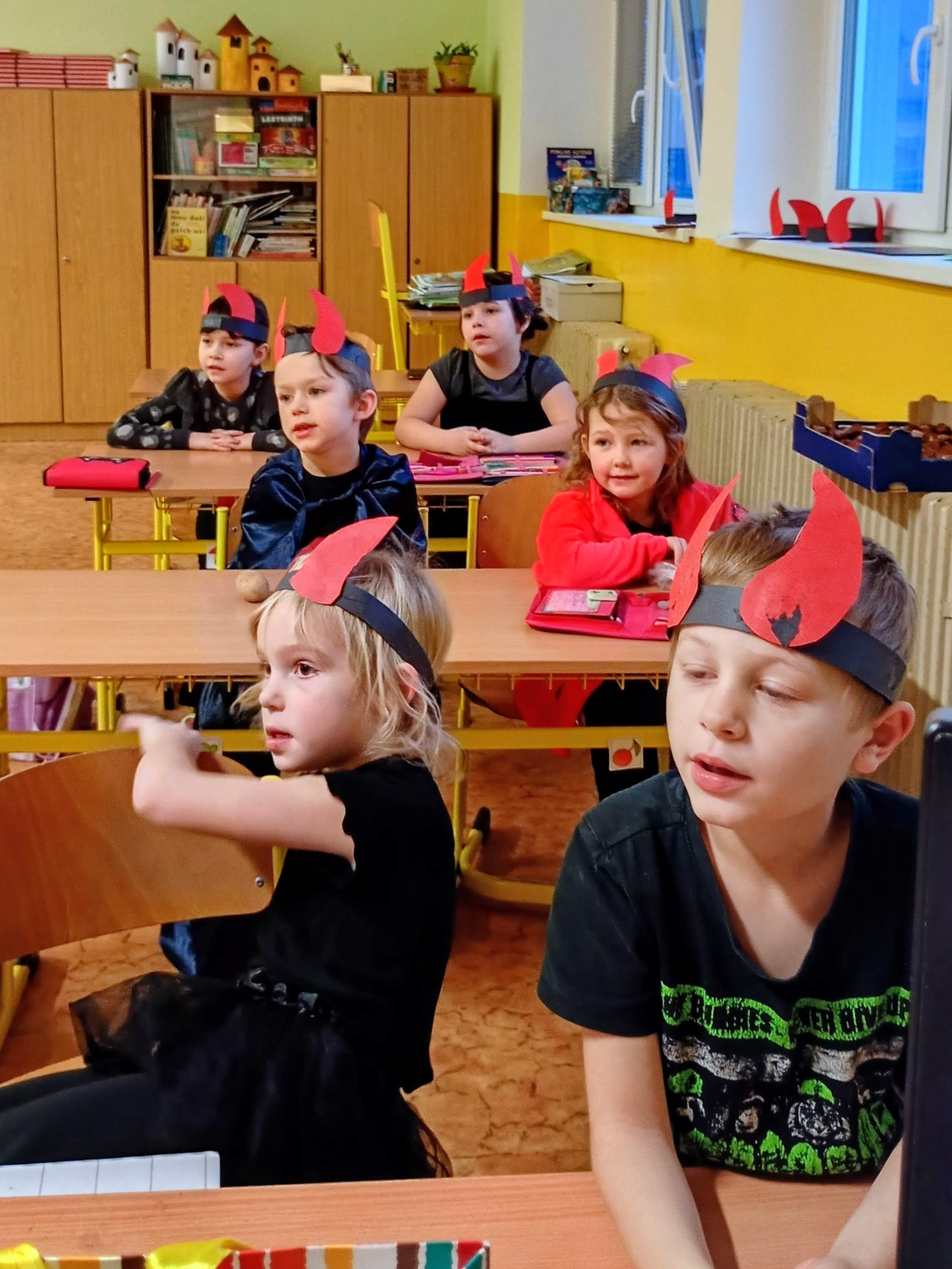 Žáci z prvních tříd si v pátek 5. prosince užili čertí vyučování. Plnili pekelné úkoly, zpívali, tvořili, tancovali, počítali. Děkujeme rodičům malých čertíků za pomoc s oblečením.