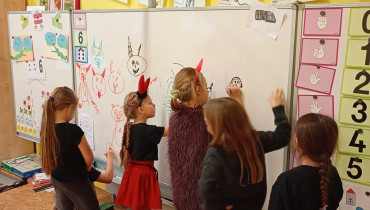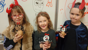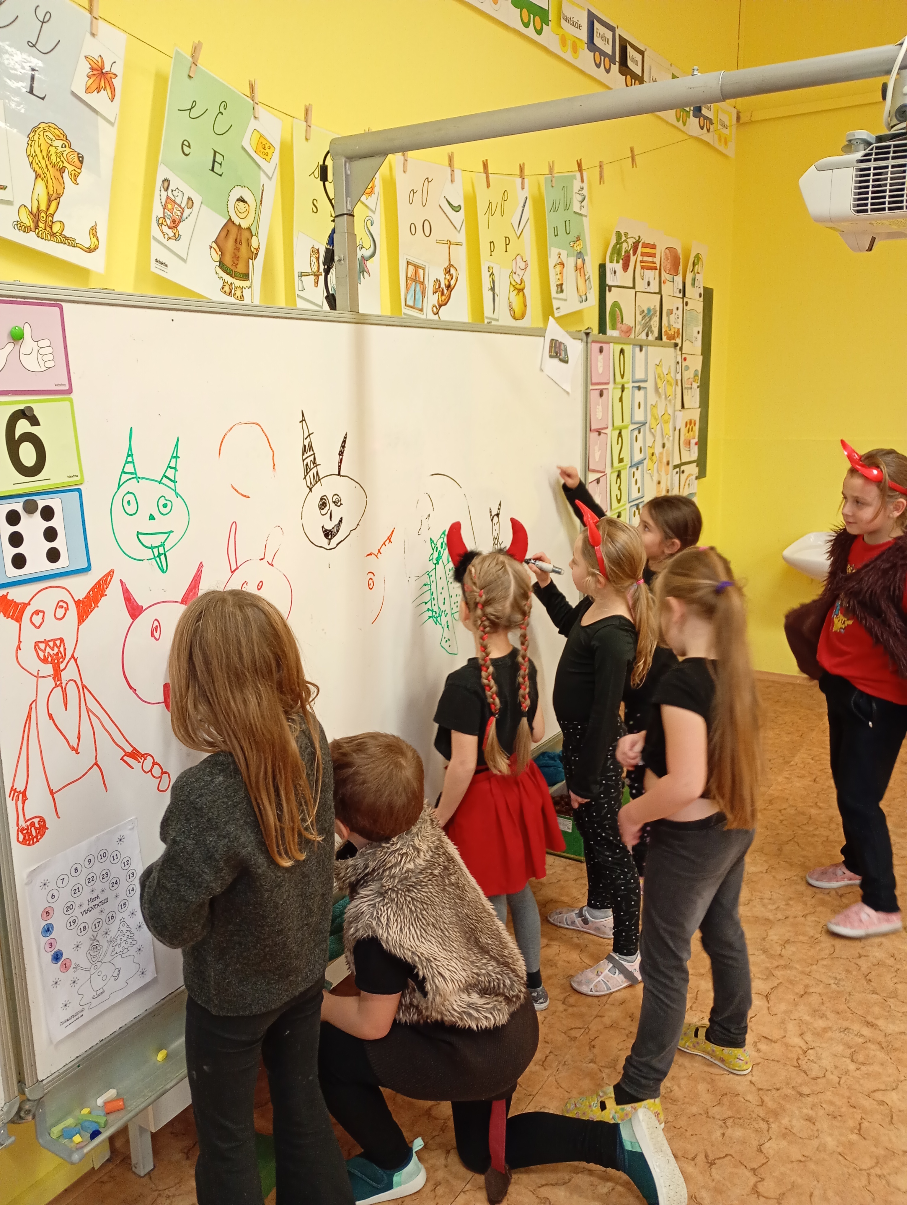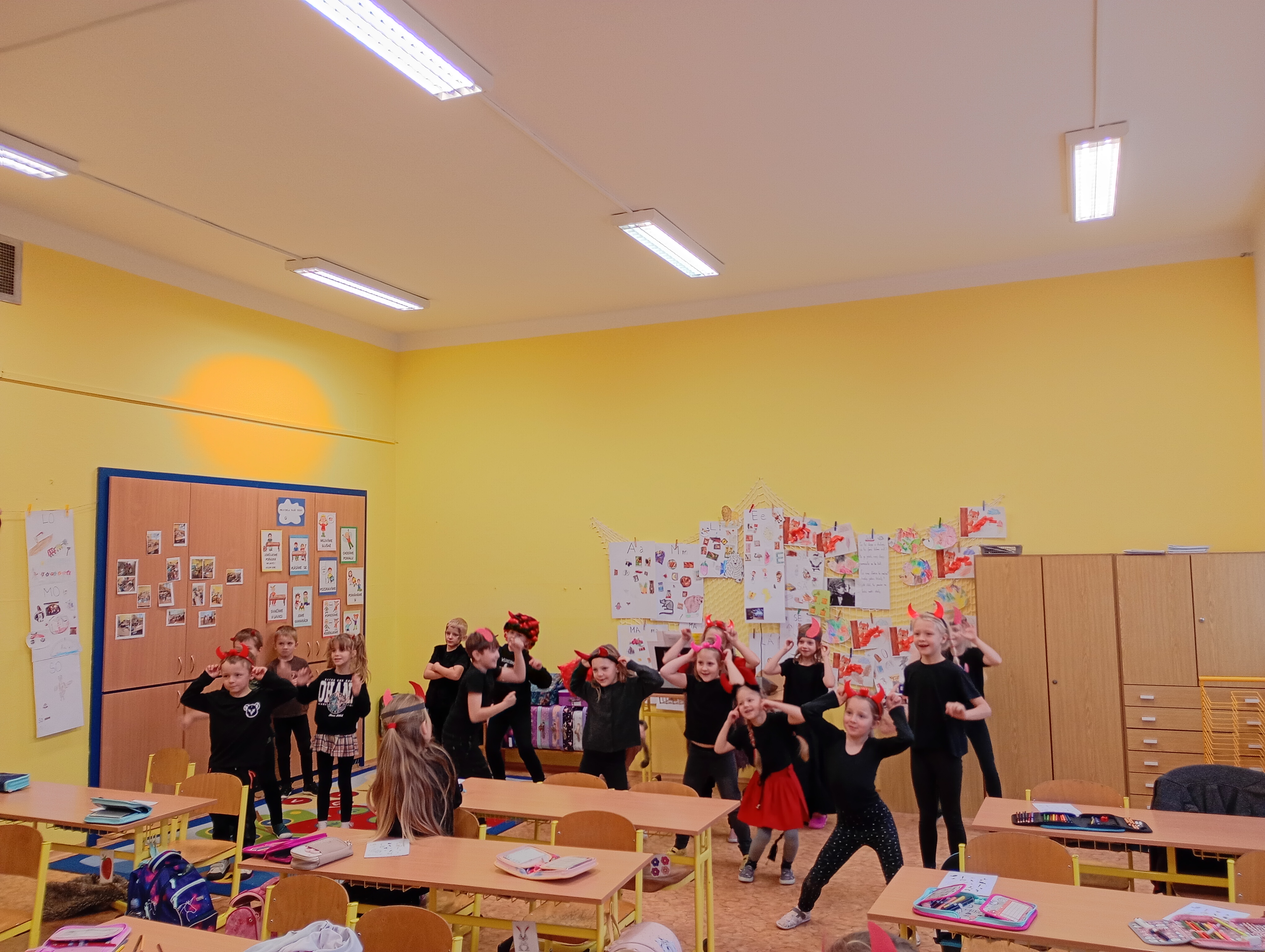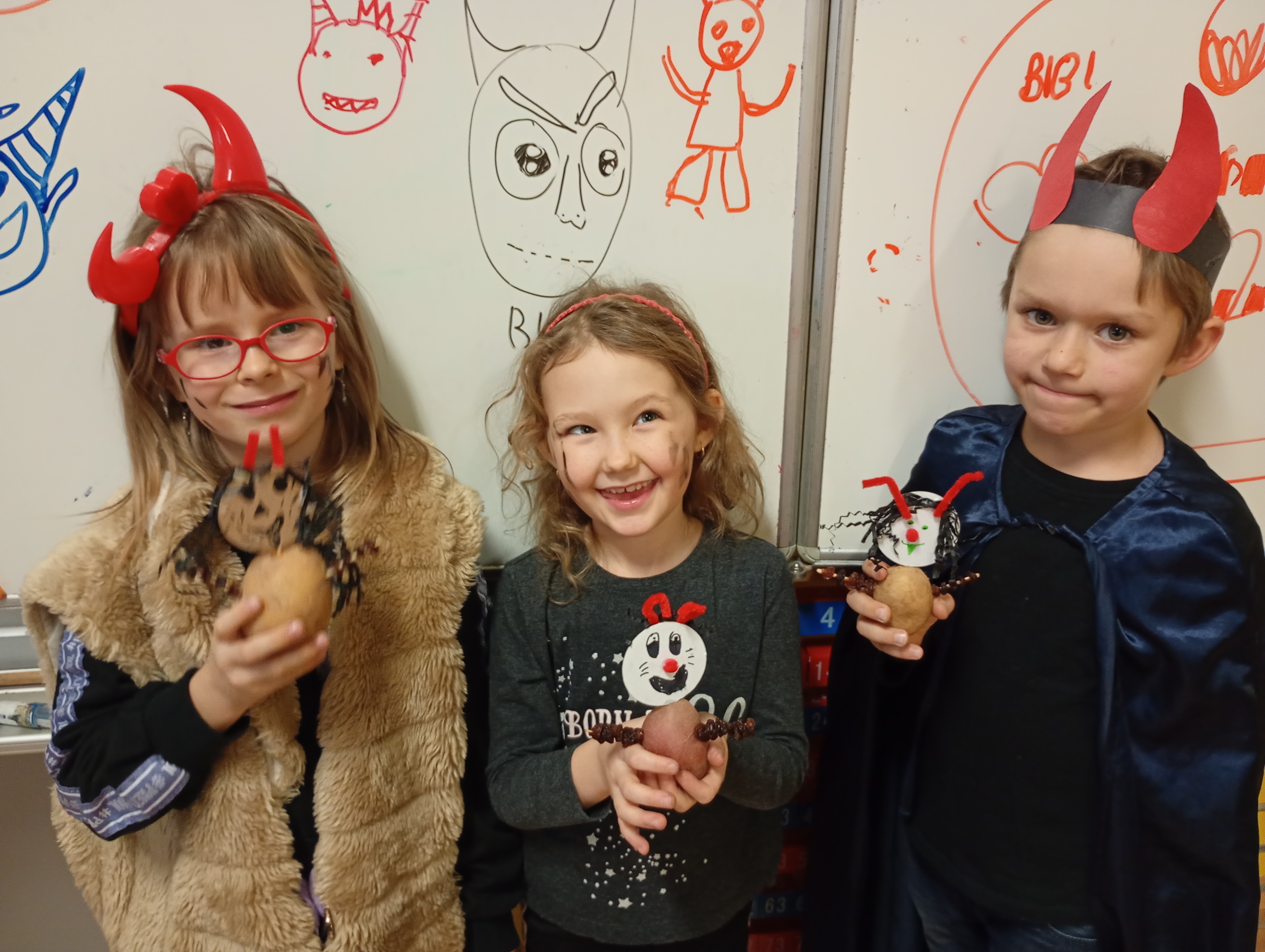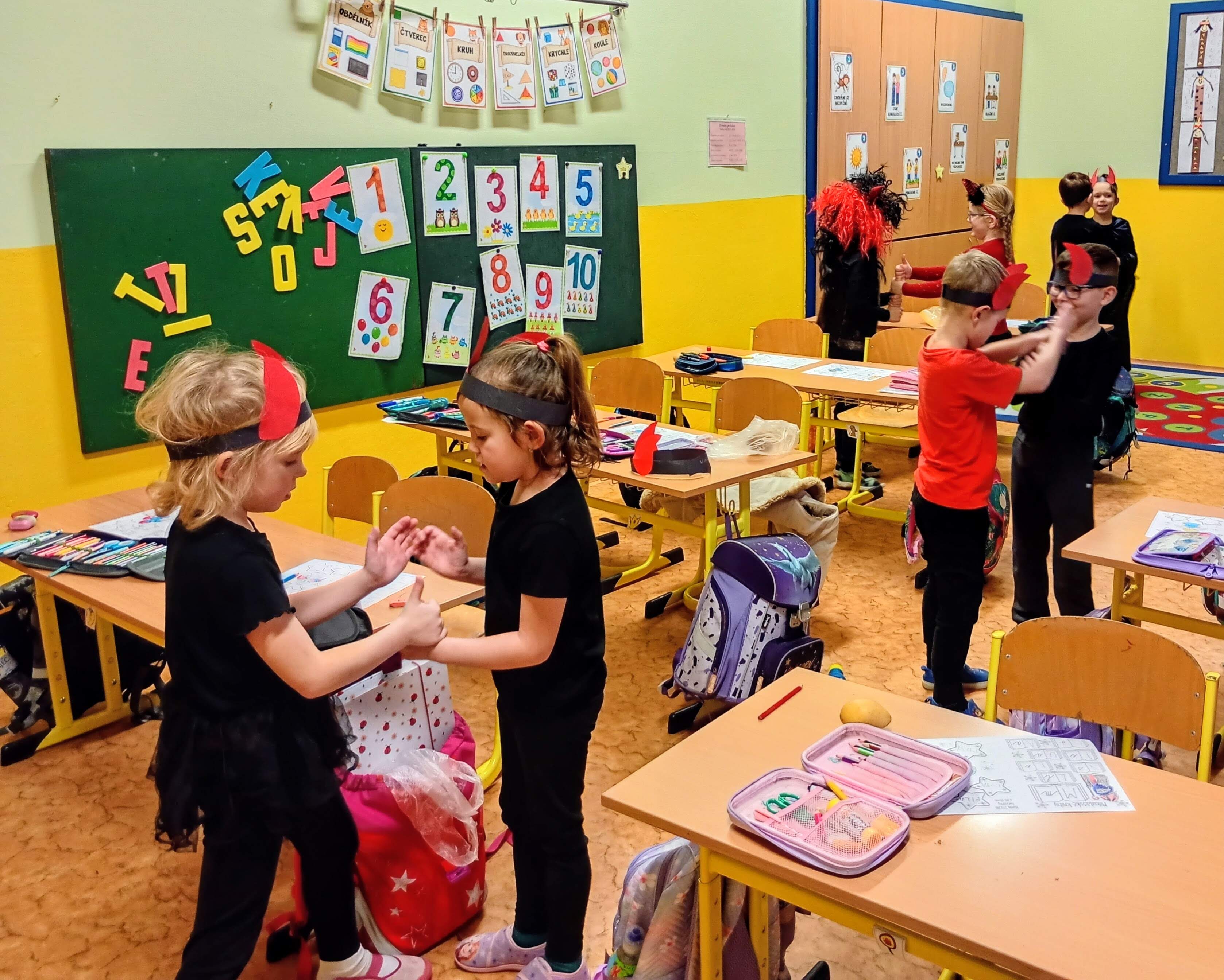 Žáci z prvních tříd si v pátek 5. prosince užili čertí vyučování. Plnili pekelné úkoly, zpívali, tvořili, tancovali, počítali. Děkujeme rodičům malých čertíků za pomoc s oblečením.