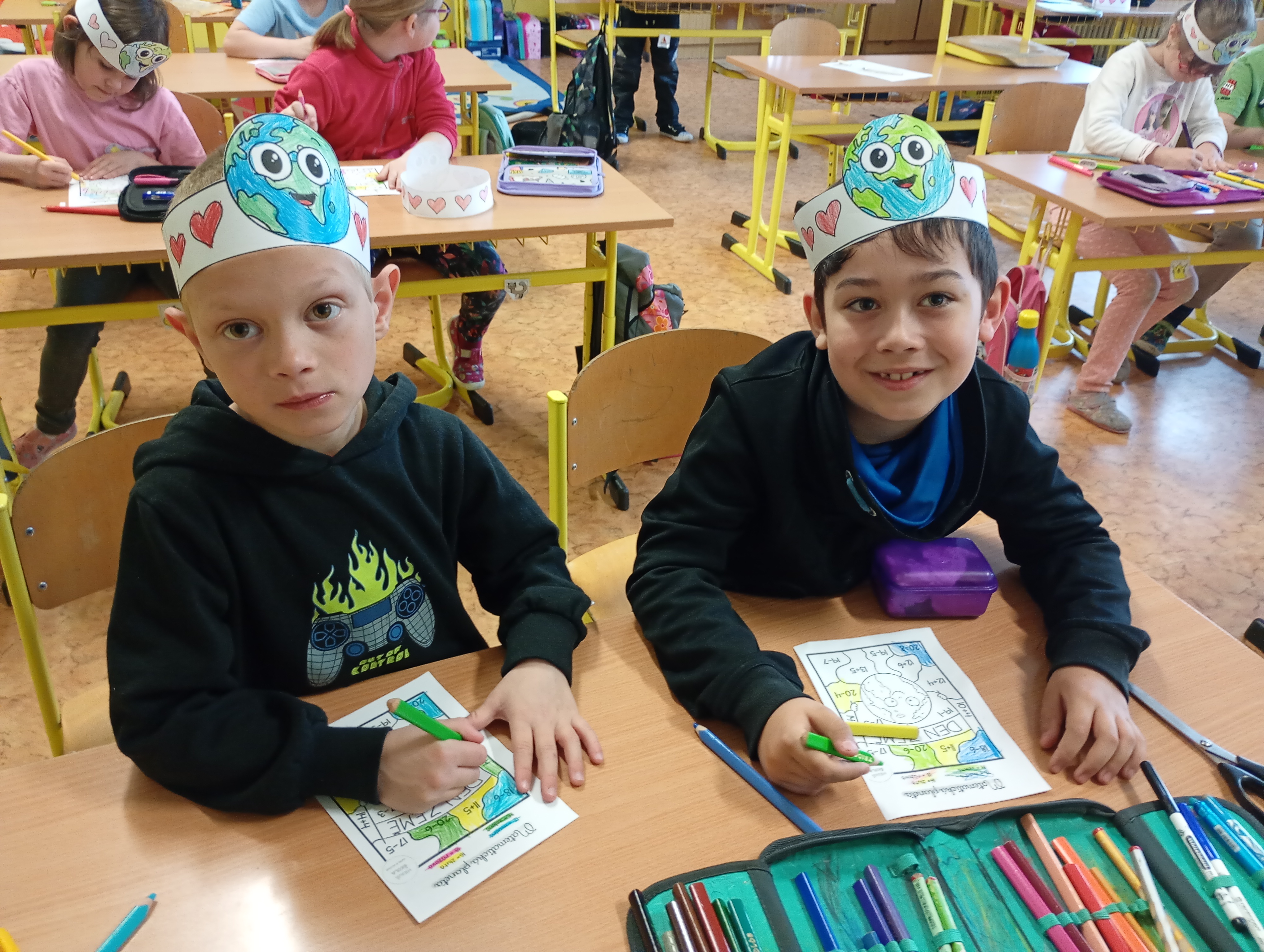 Děti z 1.A oslavily Den Země pestrým programem. Plnily matematické úkoly, skládaly z plastových víček, učily se třídit odpad a viděly krátký film z projektu Jeden svět. Nakonec tvořily venku z přírodních materiálů. Den si užily a učily se chránit přírodu. Podívejte se i na další akce a tvoření v 1.A .