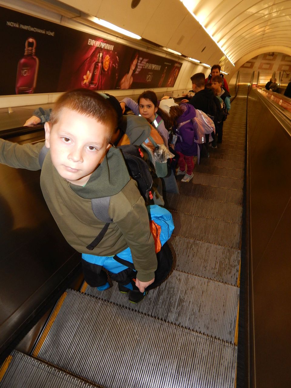 Po příjezdu do Prahy jsme nejprve vyzkoušeli metro. Několikrát se svezli po schodech, abychom uměli nastoupit i sestoupit. Vysvětlili jsme si, proč musíme stát na pravé straně schodů. Svezli jsme se metrem sem a tam, učili se orientovat ve značkách a cedulích.