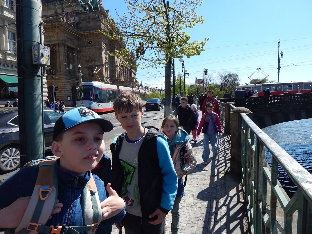 Po důkladné prohlídce jsme vyrazili na procházku starou Prahou a hledání památek podle přečtené knížky. Viděli jsme Národní divadlo, Vltavu, Hradčany, Karlův most, Staroměstské náměstí, Orloj, Václavské náměstí. Objevili jsme i mořskou pannu se dvěma ocasy. Nepovedlo se nám objevit knížete Bruncvíka se lvem.