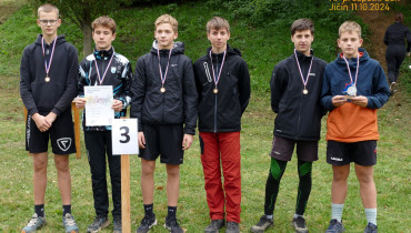Vítězstvím v okresním kole se naši starší žáci probojovali na krajské kolo této školní soutěže, které proběhlo za tradičního podzimního počasí v jičínském lesoparku Čeřovka. Nejlepší týmy z okresu zde změřily své běžecké terénní schopnosti ve všech kategoriích. Členitá a kluzká dvoukilometrová trať spravedlivě prověřila formu každého běžce. Naši borci nakonec dotáhli své snažení na „bednu“ a ubojovali třetí místo. Poděkování nejen za umístění, ale hlavně za ochotu reprezentovat školu tedy patří Ivanu Hornychovi, Zdendovi Klímovi, Williamu Křížovi, Vaškovi Troutnarovi, Marianu Hilscherovi a Honzovi Jirmanovi.