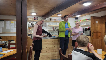 Chatař Aleš Mitterwald se postaral o parádní zázemí a vynikající atmosféru na chatě. Kromě krásného ubytování pro nás připravil i večer plný her, které byly zábavným zpestřením našeho pobytu. V kuchyni se o nás skvěle staral Martin Exner, jehož jídla byla nejen chutná, ale také výživná, což nám při náročném programu rozhodně pomohlo.