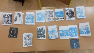 Poslední podzimní akcí bylo tvoření v muzeu papírových modelů, kdy jsme si vyzkoušeli pro nás úplně novou techniku – linoryt. Vytvořili jsme si přáníčka, která jsme již ladili do nadcházejícího času, času vánočního….