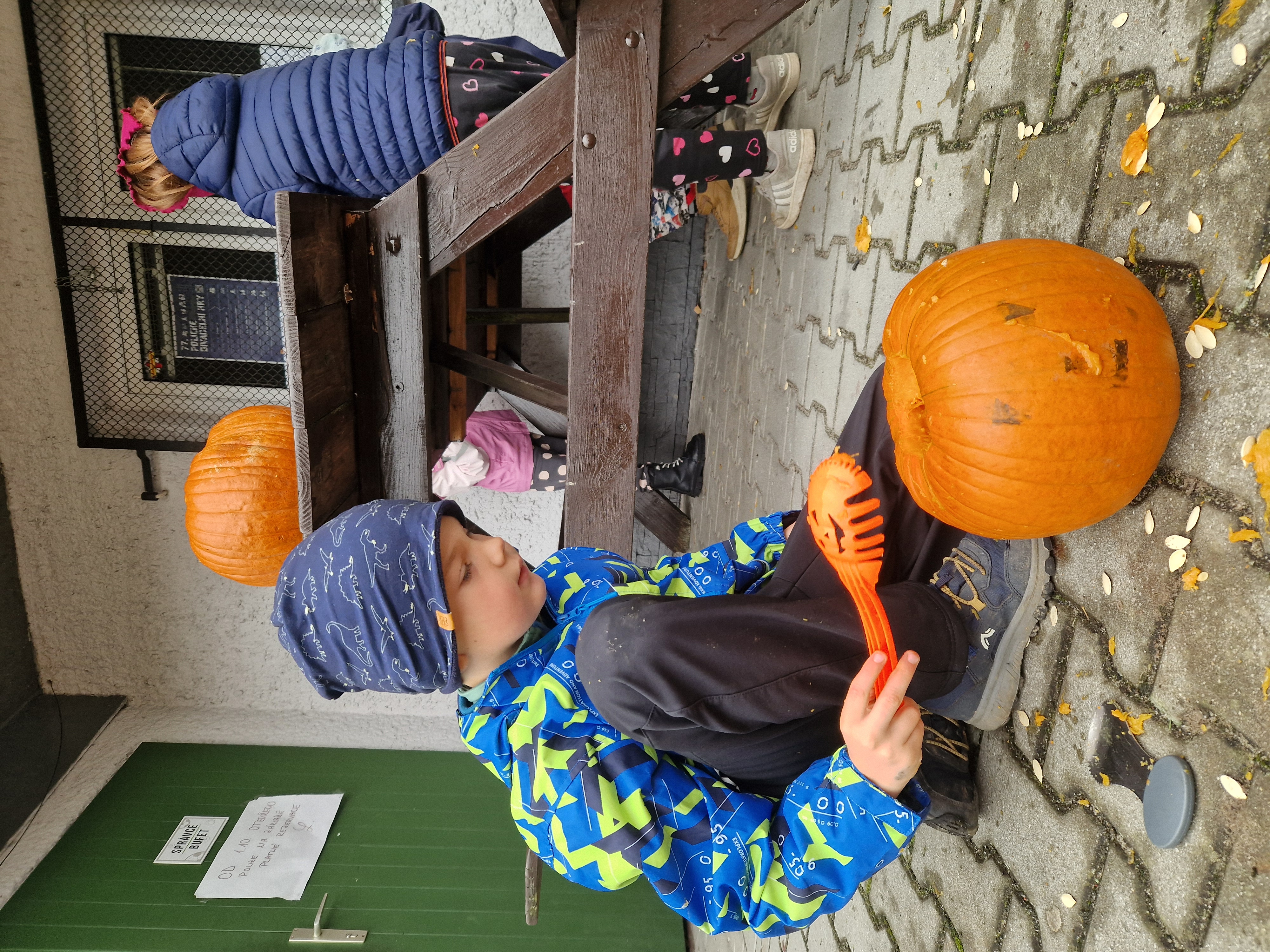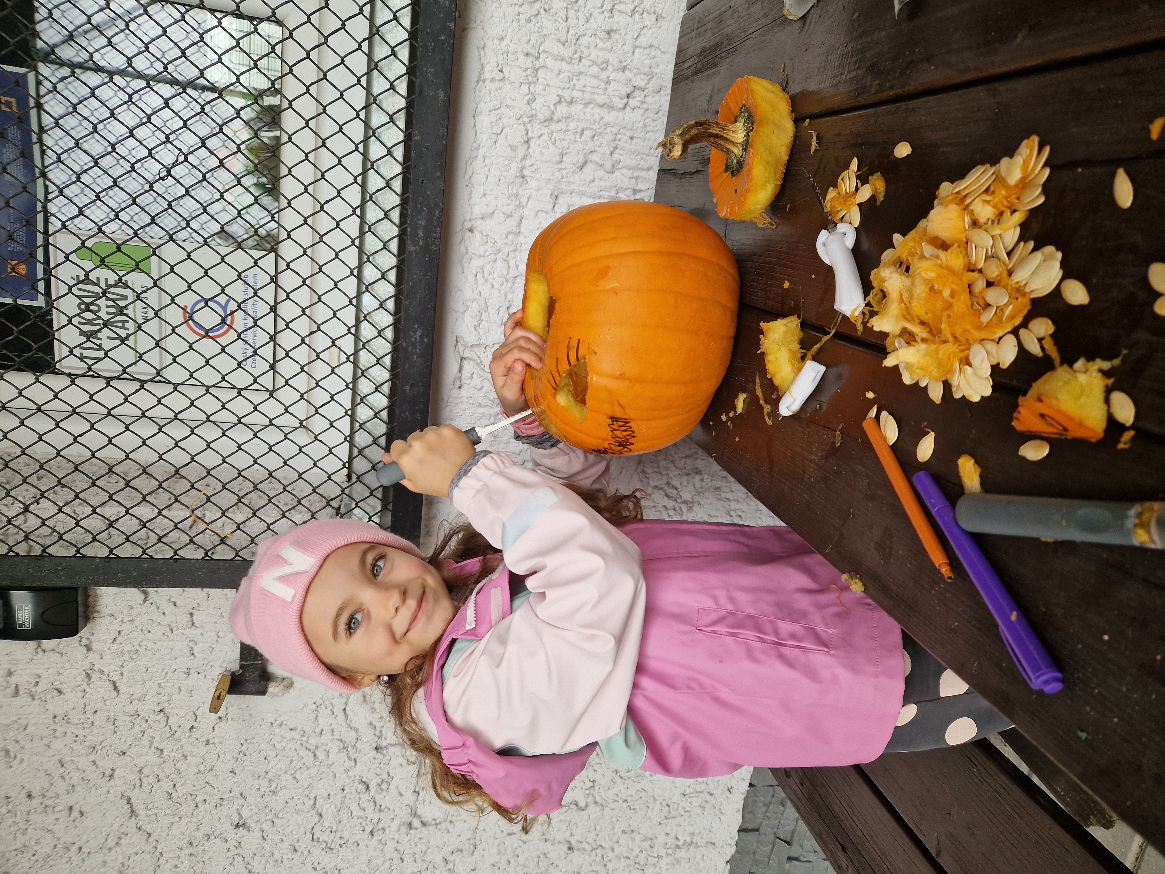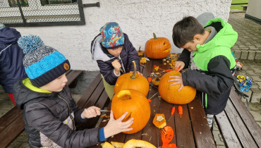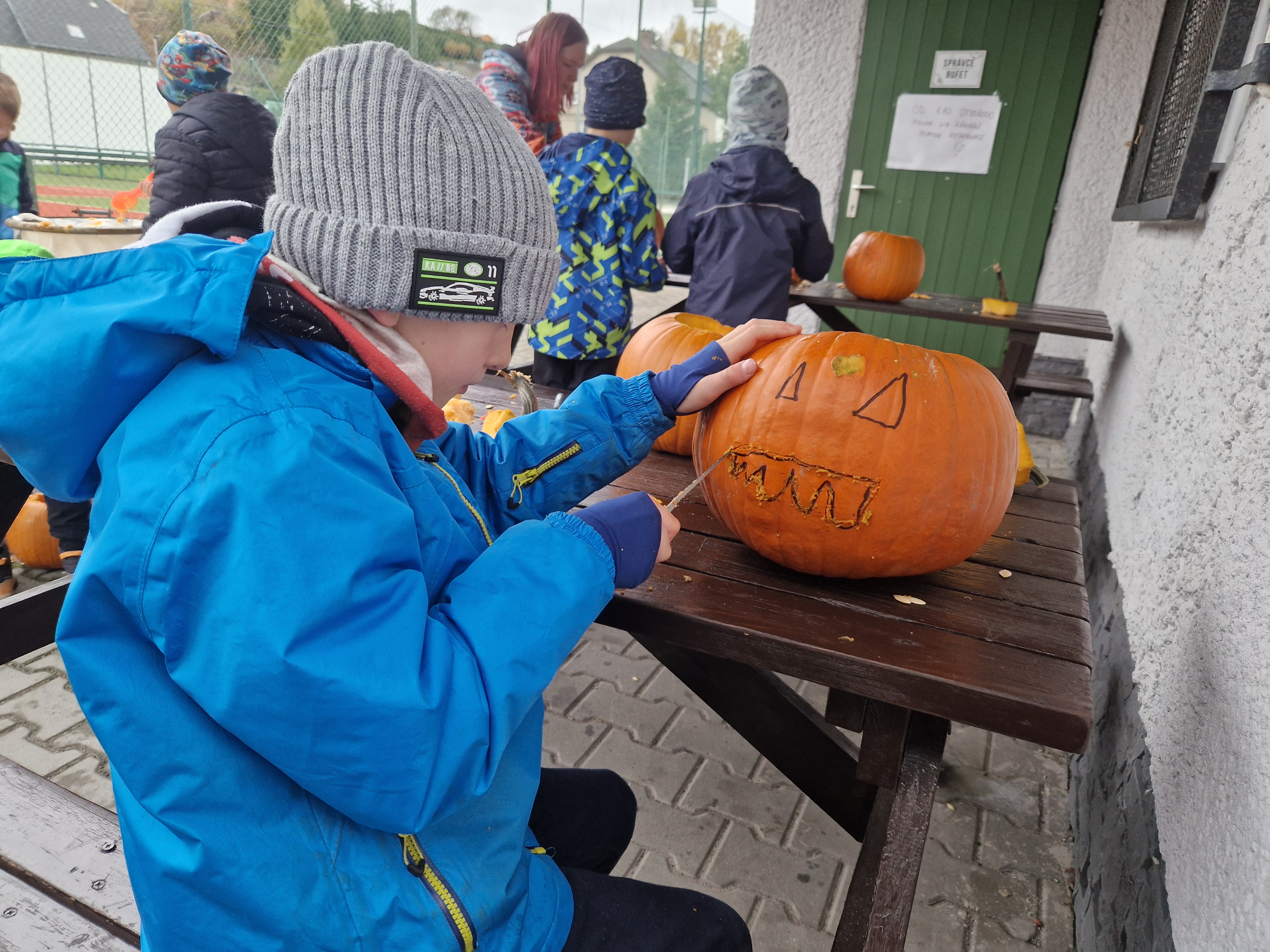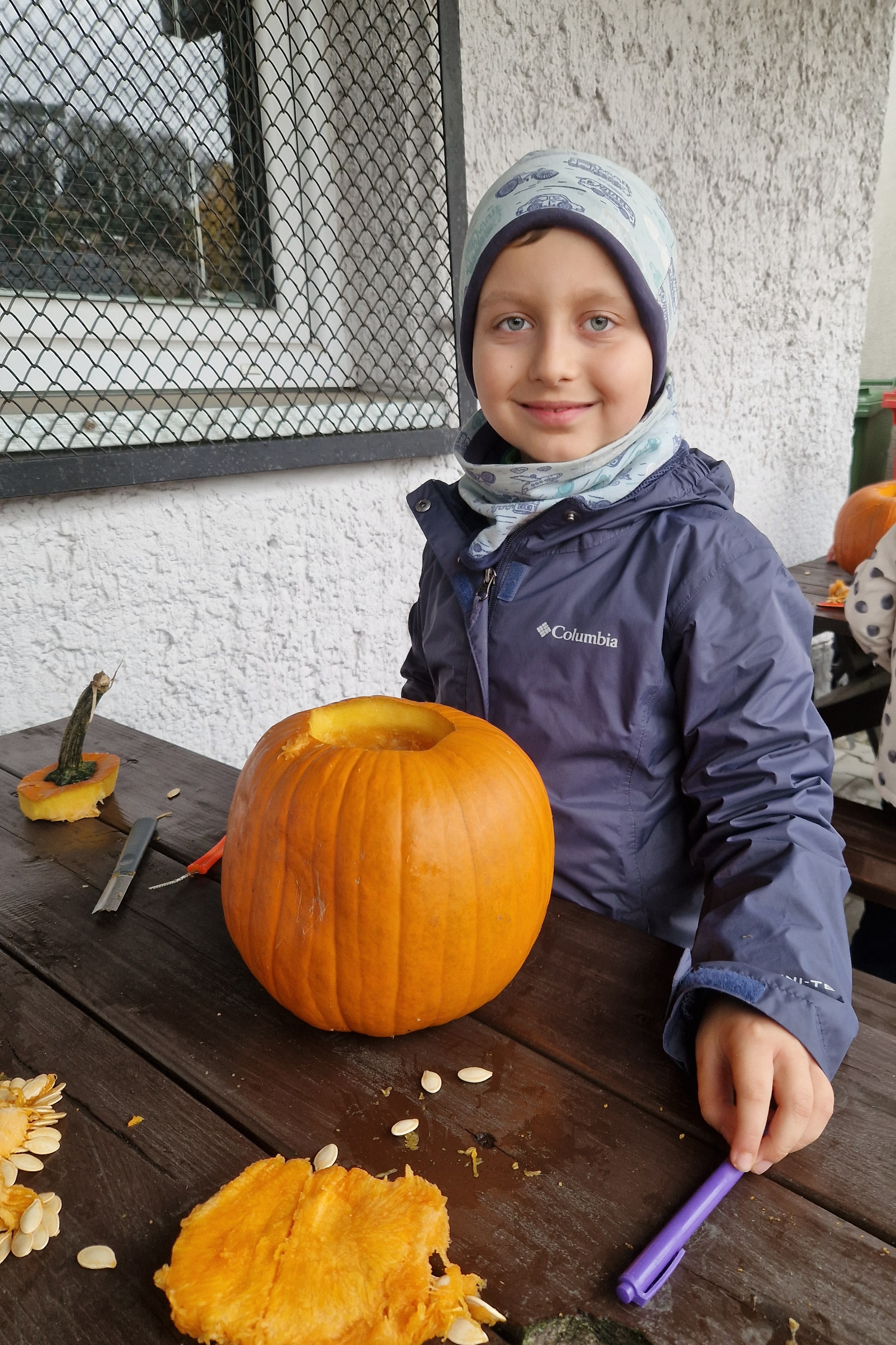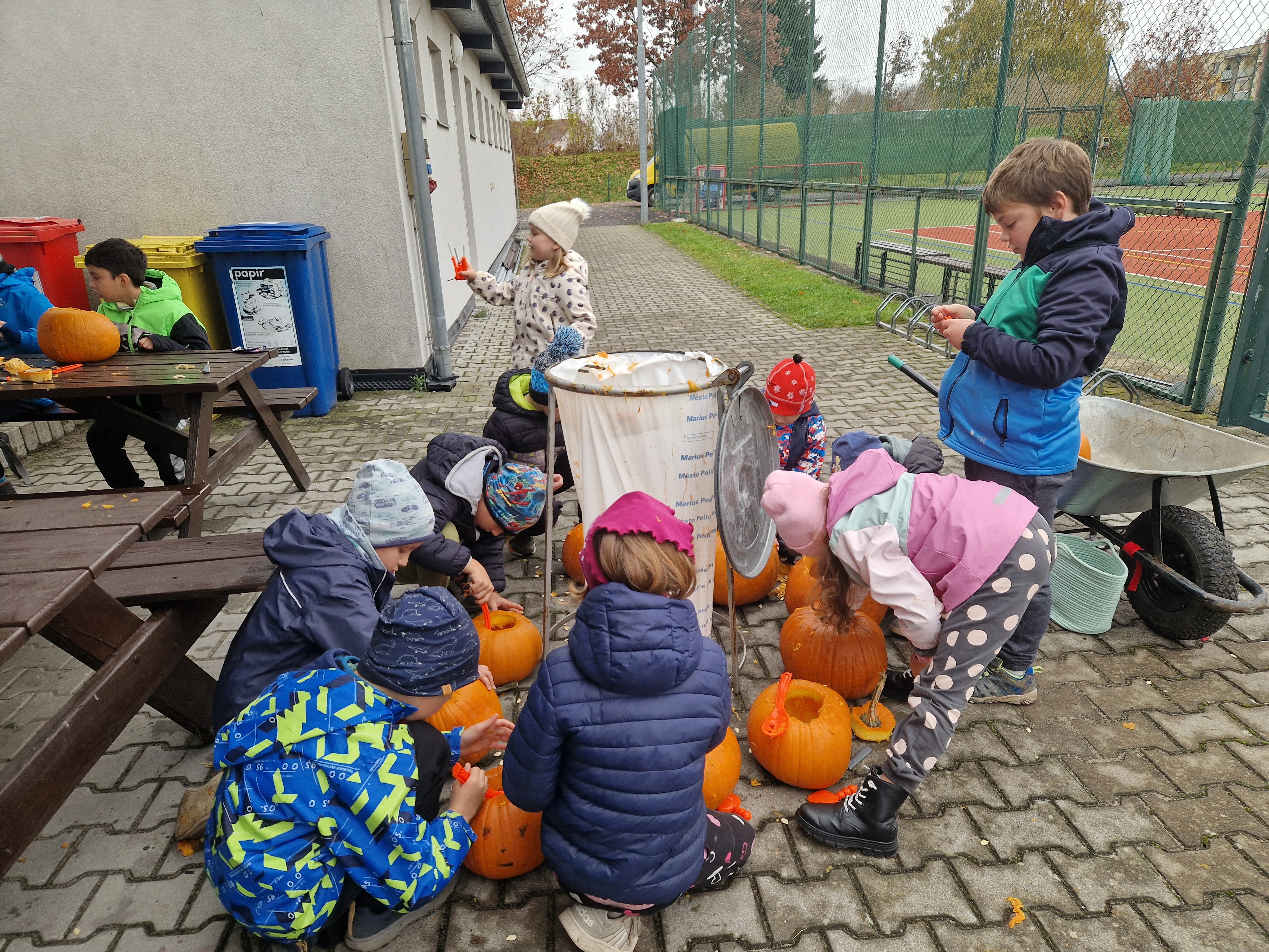 Na začátku října jsme navštívili knihovnu. Paní knihovnice dětem přečetla pohádku Jak Křemílek s Vochomůrkou vařili povidla. Během pohádky děti plnily úkoly a zapojily se do děje. Po pohádce si děti dle svého výběru půjčily knihy a kousek si přečetly. Během hodin estetiky jsme ve škole tiskli podzimní listy a jablíčka. Malovali jsme žaludy, rýsovali lišku, kde děti využily nové zkušenosti s pravítkem. Tvořili jsme ježky a dělali podzimní lesní omalovánku. Halloween jsme také stihli oslavit. Děti si úplně samy vydlabaly dýně na víceúčelovém hřišti. Moc se jim povedly a měly z nich radost! Ve třídě jsme si zahrály i naučné halloweenské hry - řazení jmen čarodějnic dle abecedy, čtení s porozuměním a přiřazování k halloweenským maskám a spoustu dalšího.