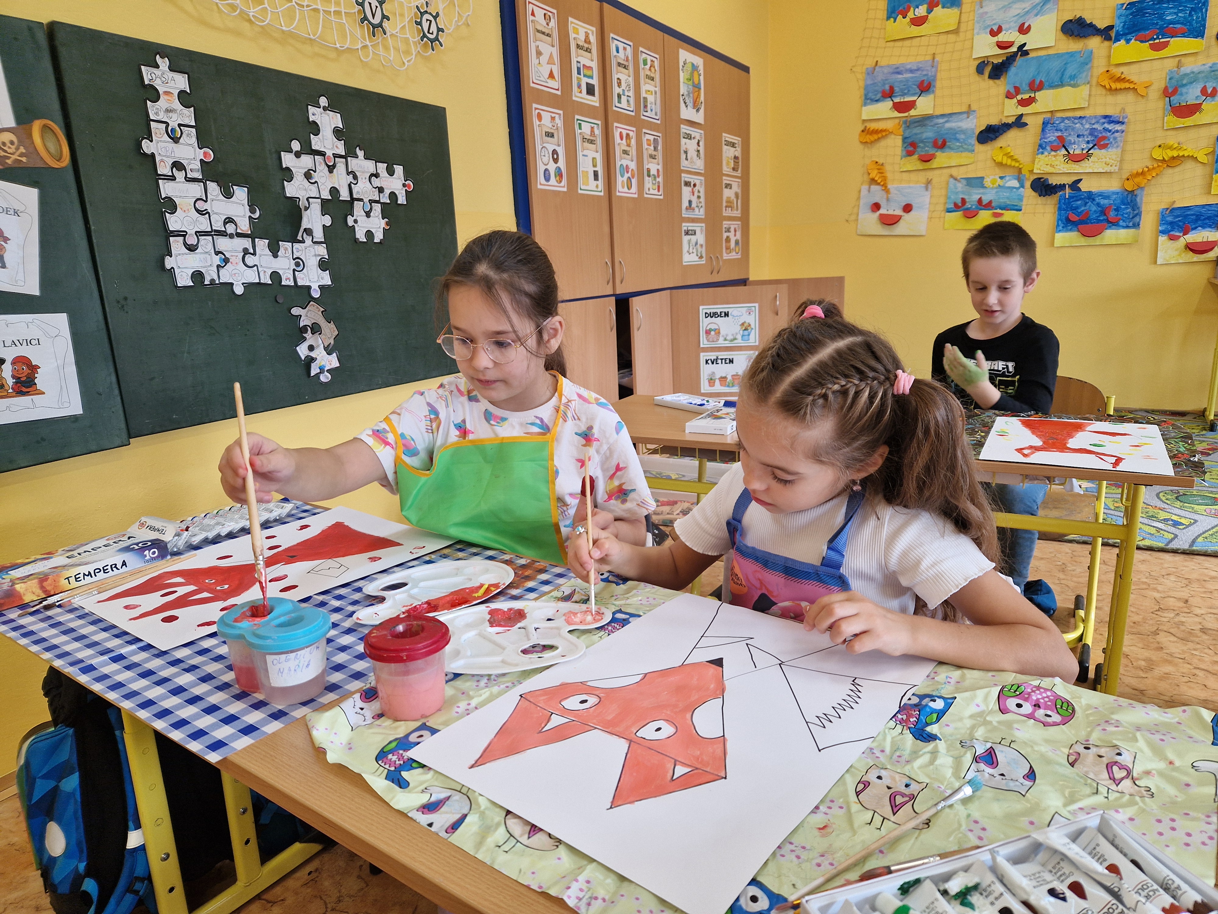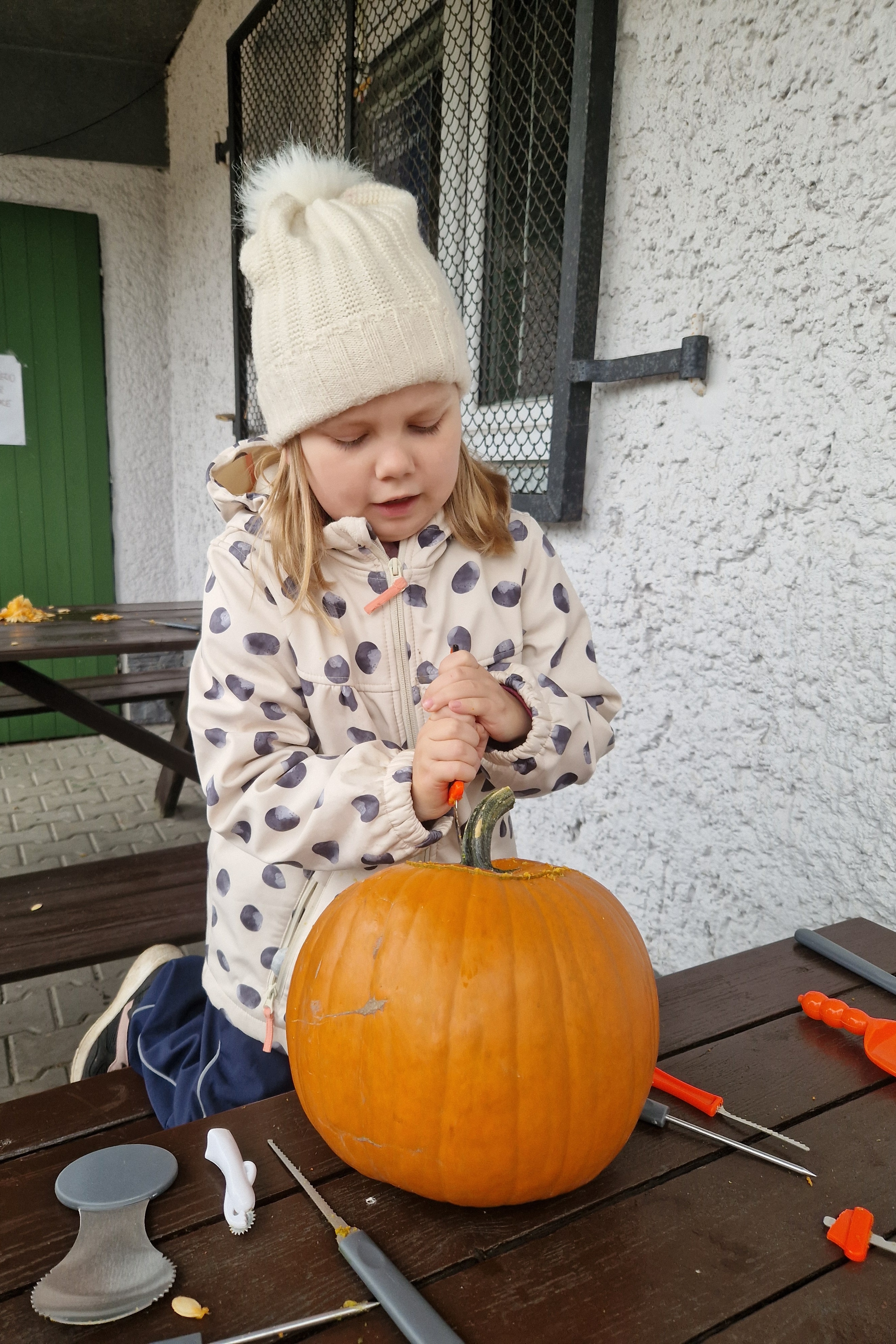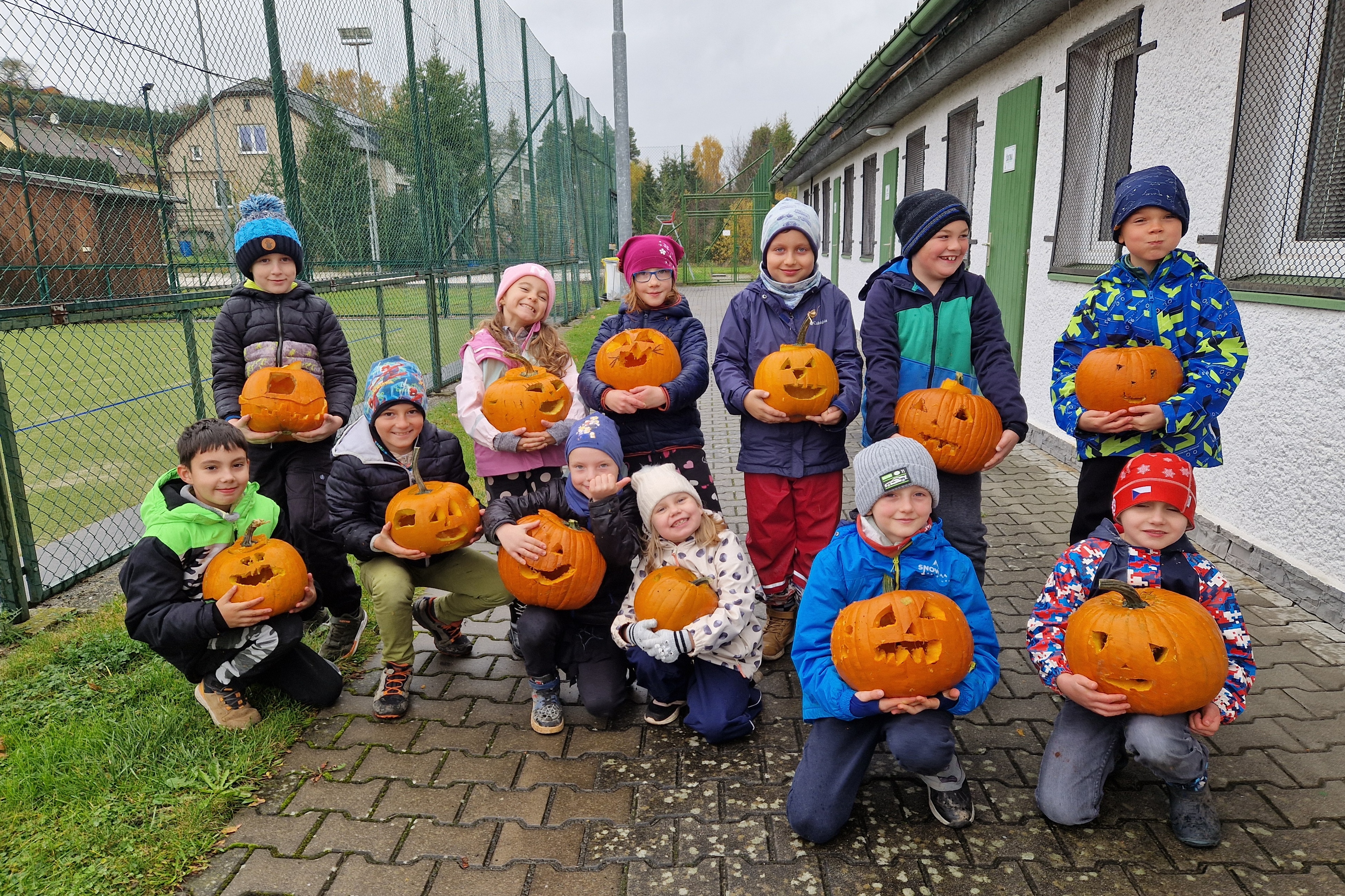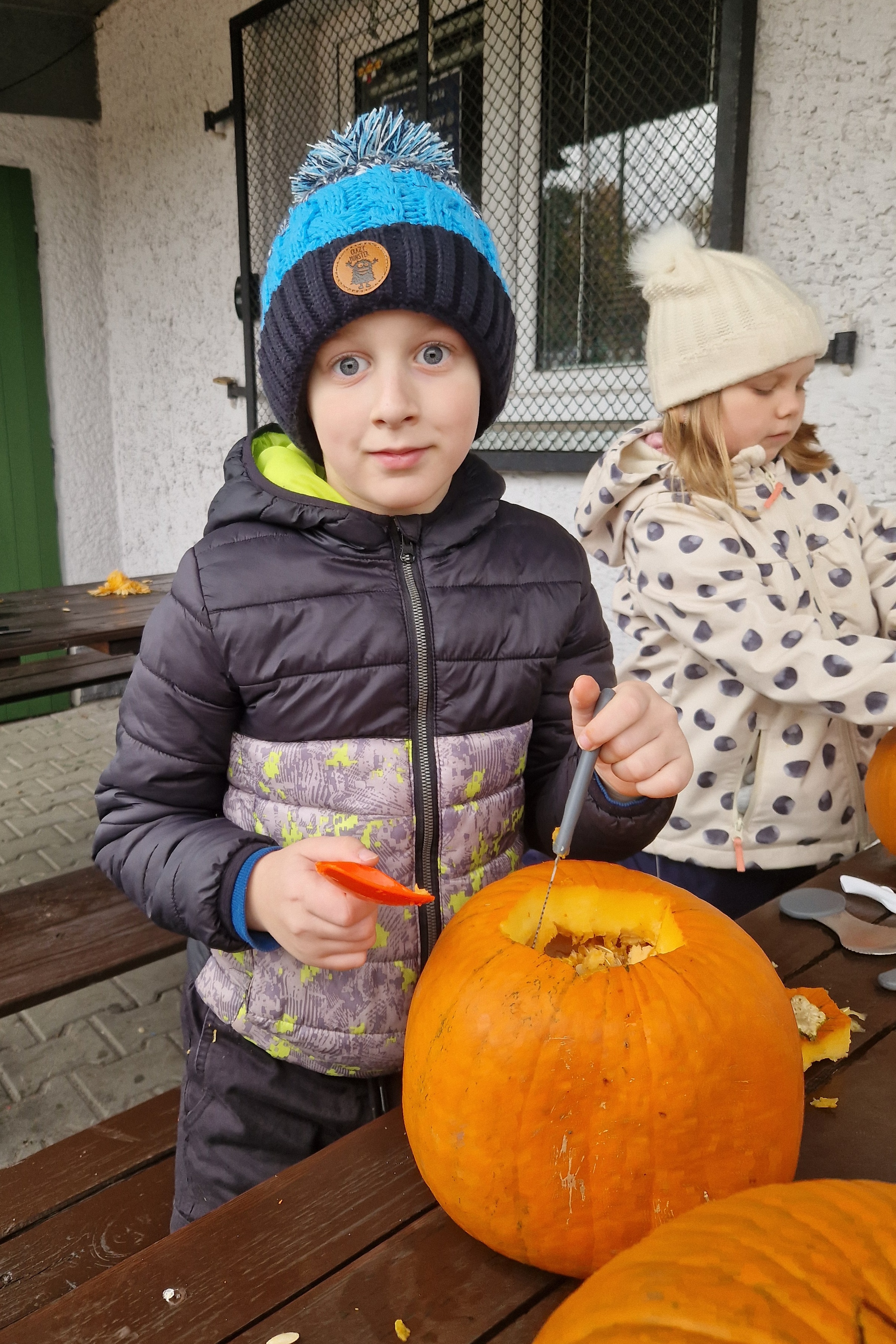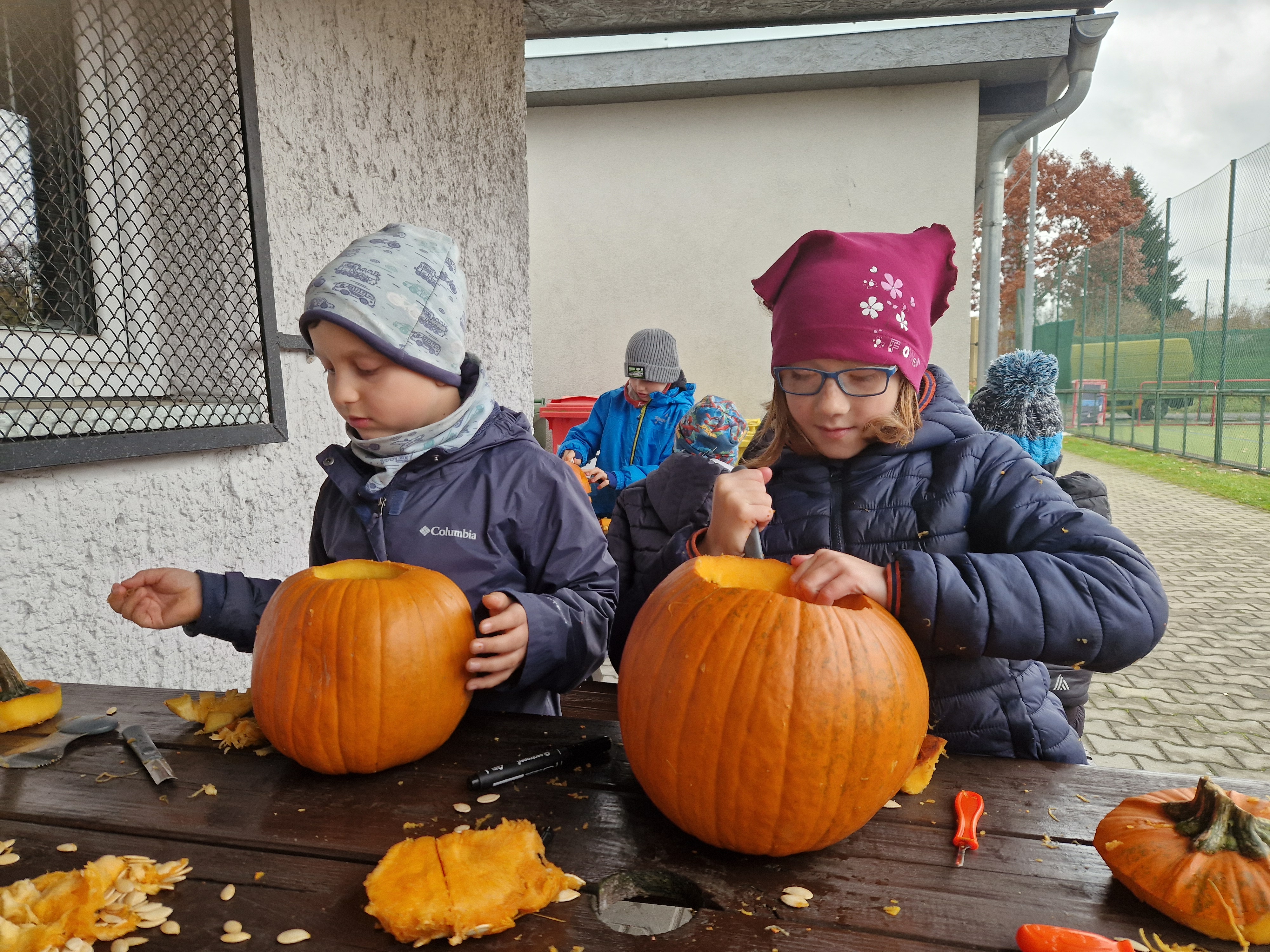 Na začátku října jsme navštívili knihovnu. Paní knihovnice dětem přečetla pohádku Jak Křemílek s Vochomůrkou vařili povidla. Během pohádky děti plnily úkoly a zapojily se do děje. Po pohádce si děti dle svého výběru půjčily knihy a kousek si přečetly. Během hodin estetiky jsme ve škole tiskli podzimní listy a jablíčka. Malovali jsme žaludy, rýsovali lišku, kde děti využily nové zkušenosti s pravítkem. Tvořili jsme ježky a dělali podzimní lesní omalovánku. Halloween jsme také stihli oslavit. Děti si úplně samy vydlabaly dýně na víceúčelovém hřišti. Moc se jim povedly a měly z nich radost! Ve třídě jsme si zahrály i naučné halloweenské hry - řazení jmen čarodějnic dle abecedy, čtení s porozuměním a přiřazování k halloweenským maskám a spoustu dalšího.
