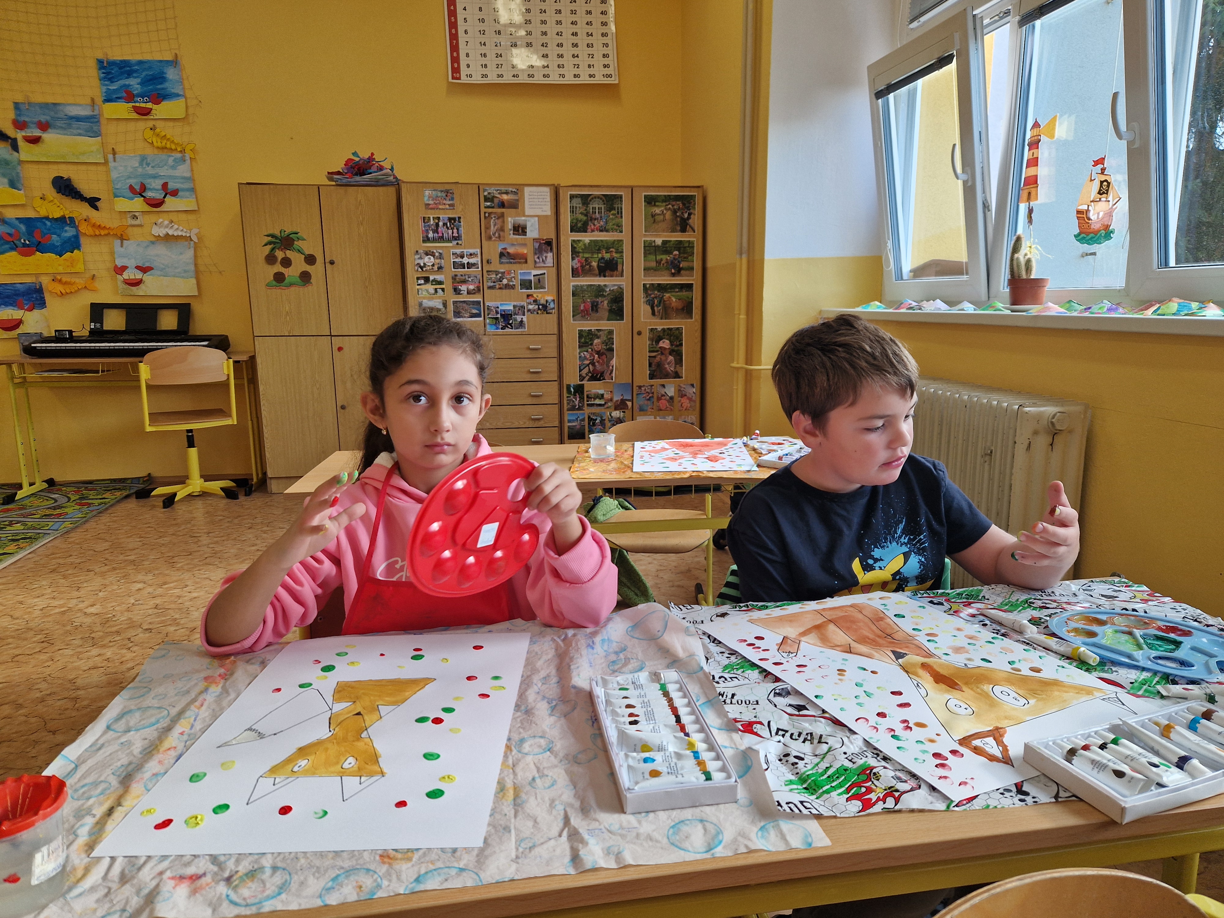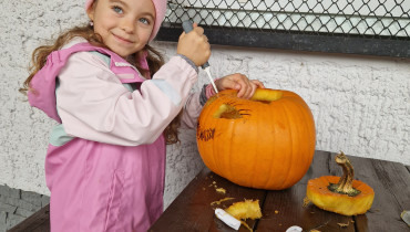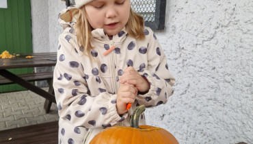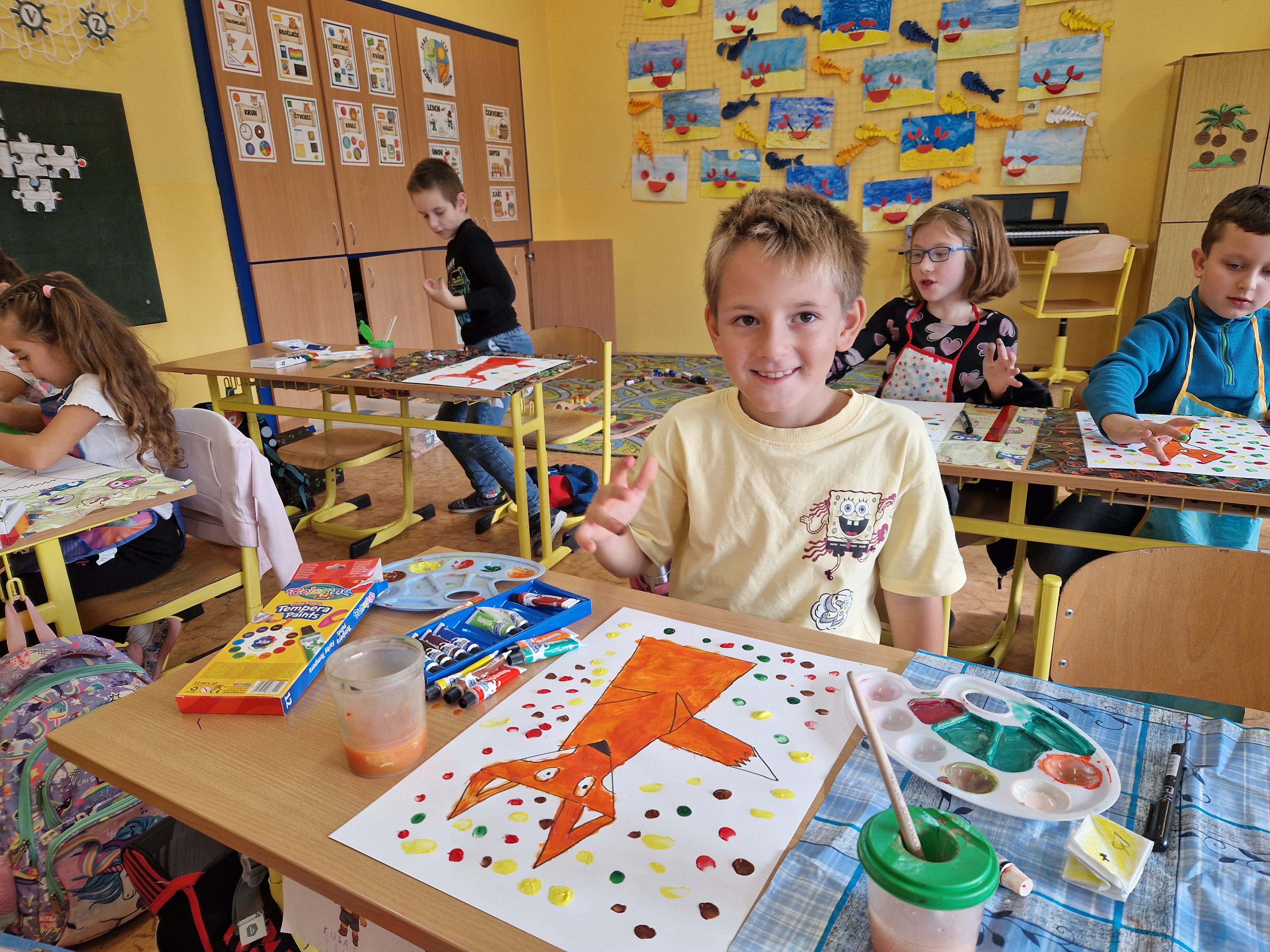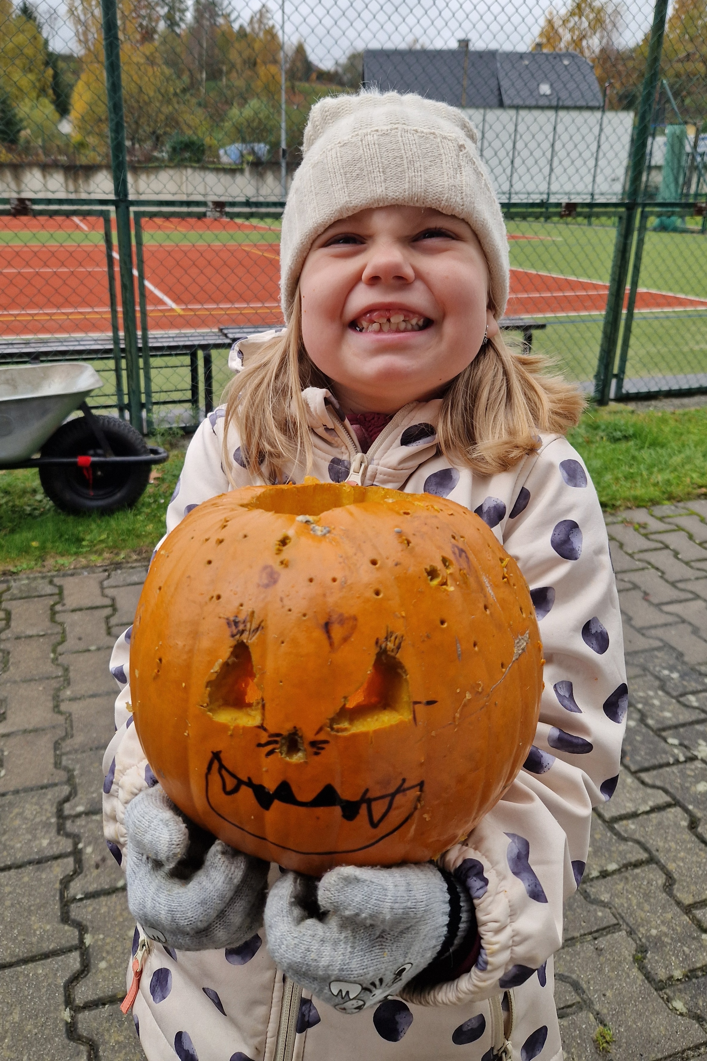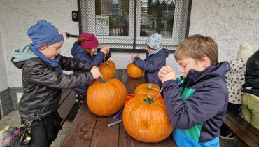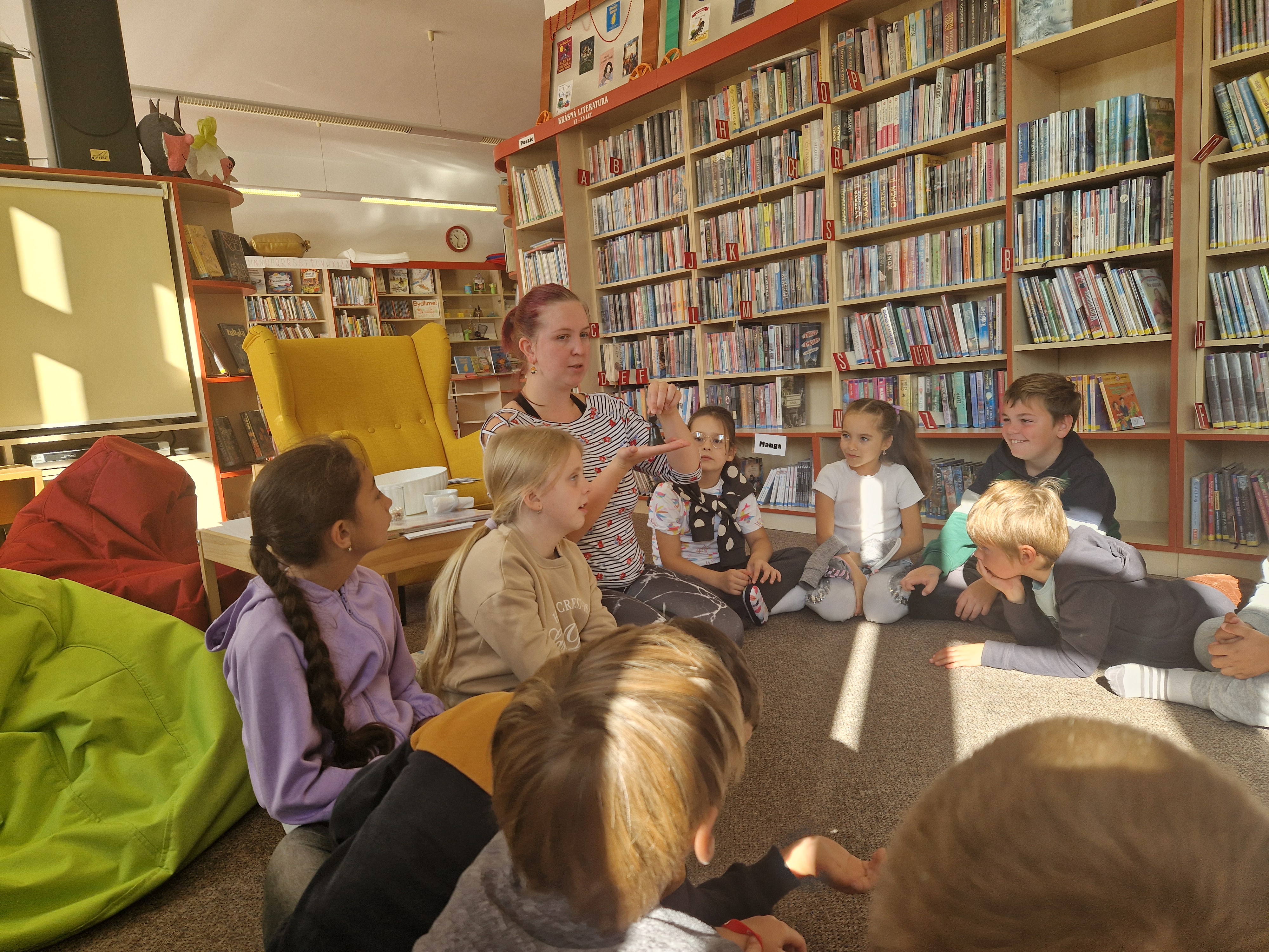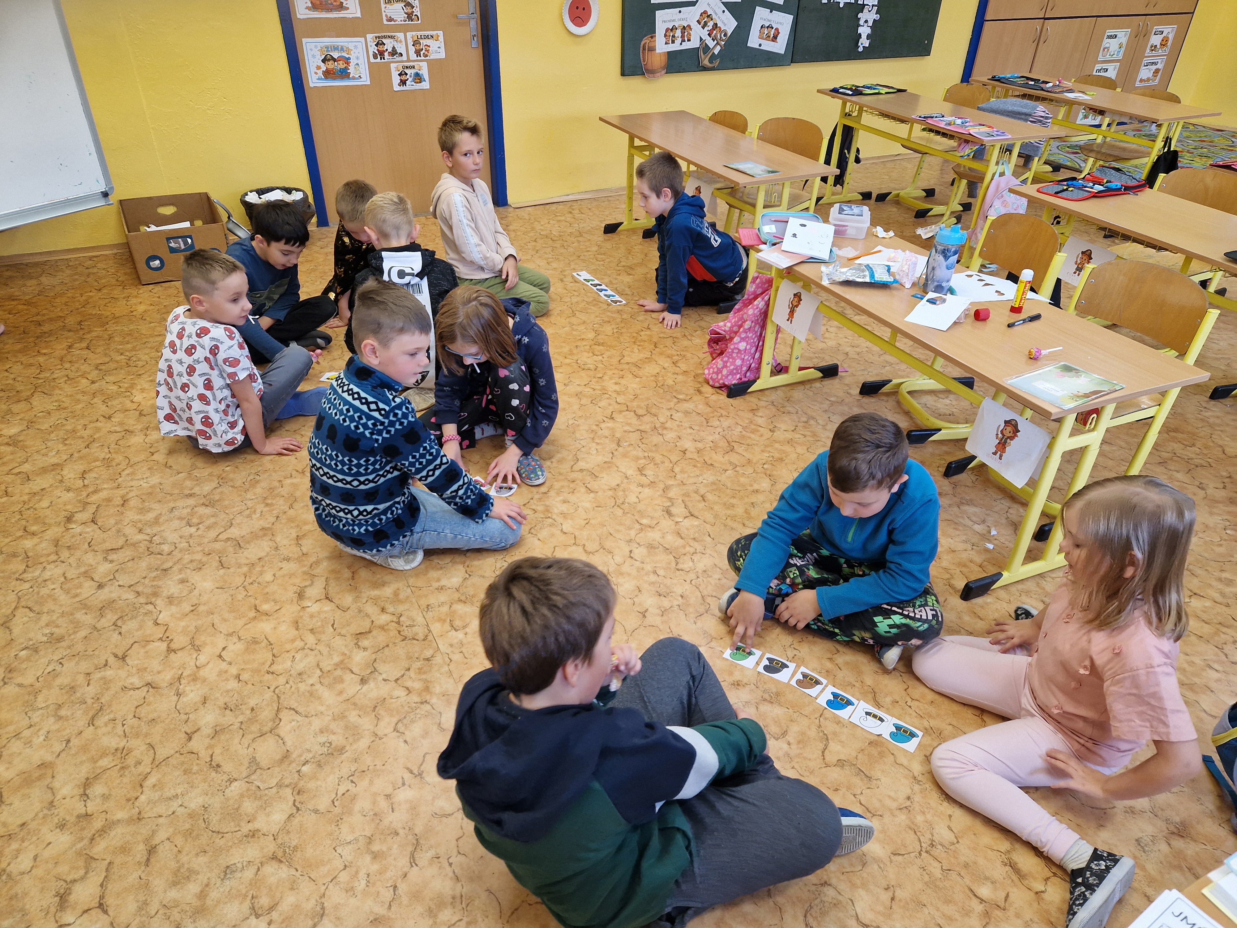 Na začátku října jsme navštívili knihovnu. Paní knihovnice dětem přečetla pohádku Jak Křemílek s Vochomůrkou vařili povidla. Během pohádky děti plnily úkoly a zapojily se do děje. Po pohádce si děti dle svého výběru půjčily knihy a kousek si přečetly. Během hodin estetiky jsme ve škole tiskli podzimní listy a jablíčka. Malovali jsme žaludy, rýsovali lišku, kde děti využily nové zkušenosti s pravítkem. Tvořili jsme ježky a dělali podzimní lesní omalovánku. Halloween jsme také stihli oslavit. Děti si úplně samy vydlabaly dýně na víceúčelovém hřišti. Moc se jim povedly a měly z nich radost! Ve třídě jsme si zahrály i naučné halloweenské hry - řazení jmen čarodějnic dle abecedy, čtení s porozuměním a přiřazování k halloweenským maskám a spoustu dalšího.