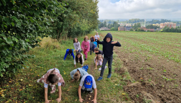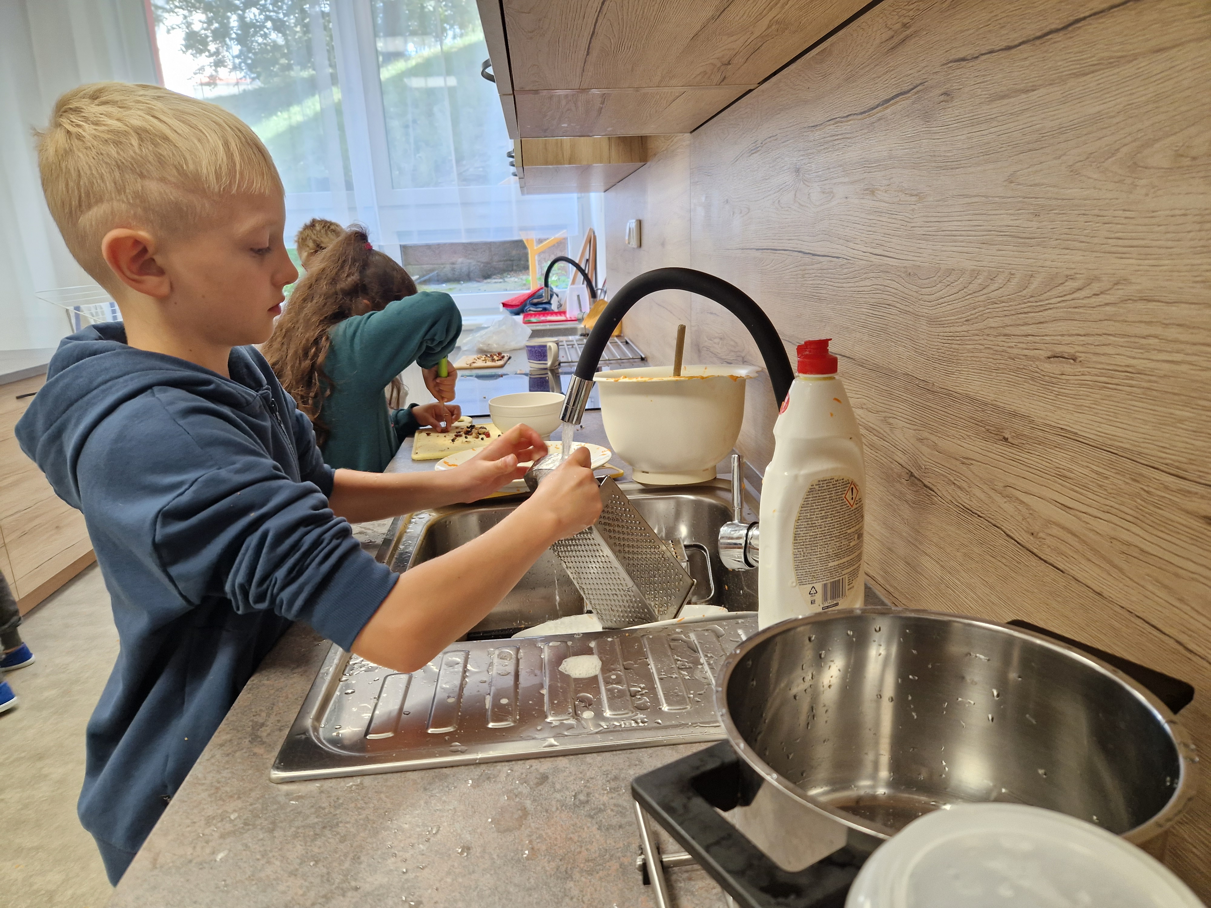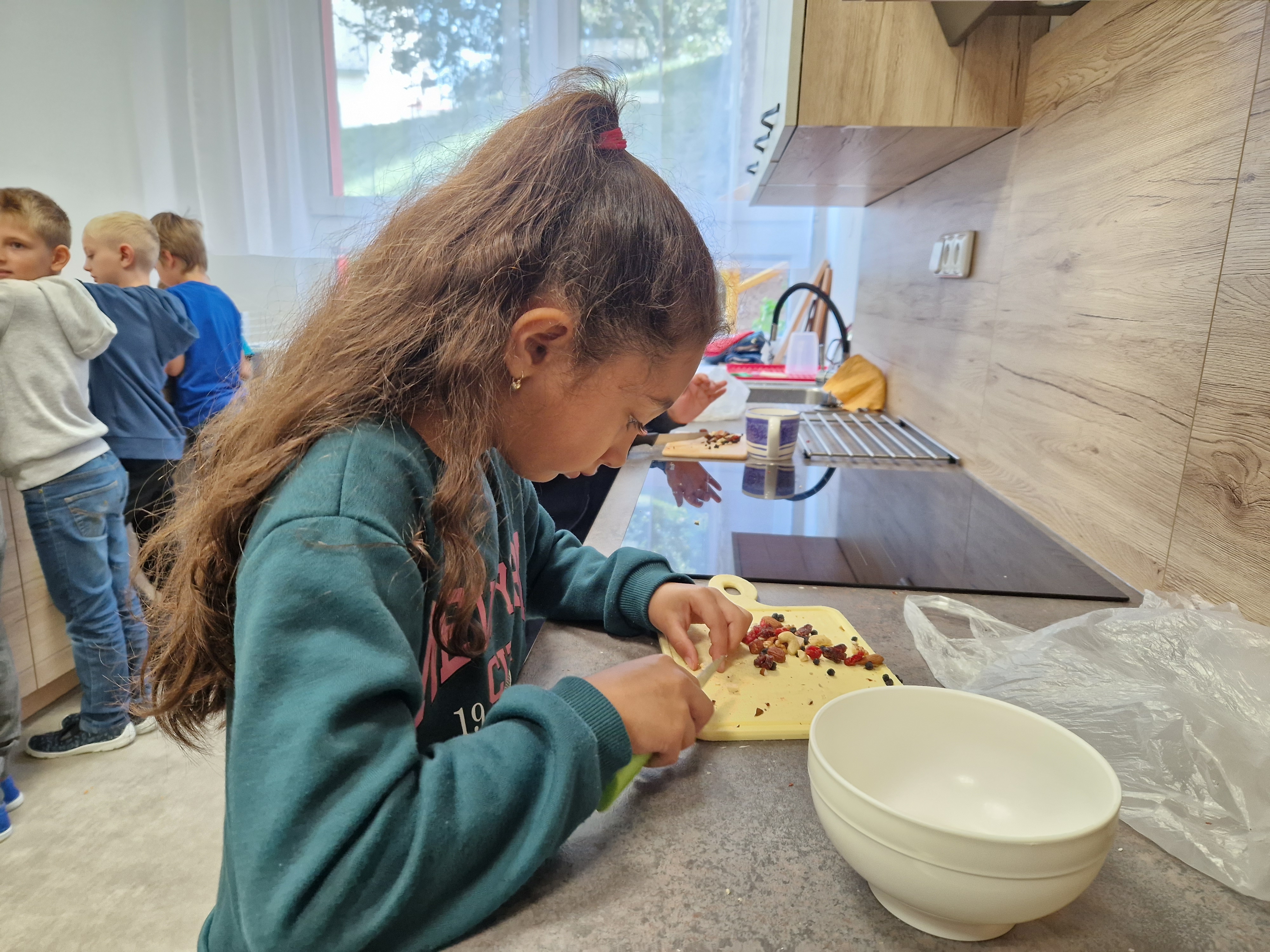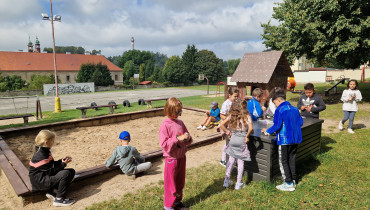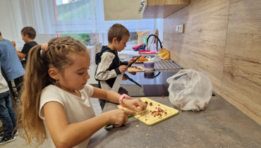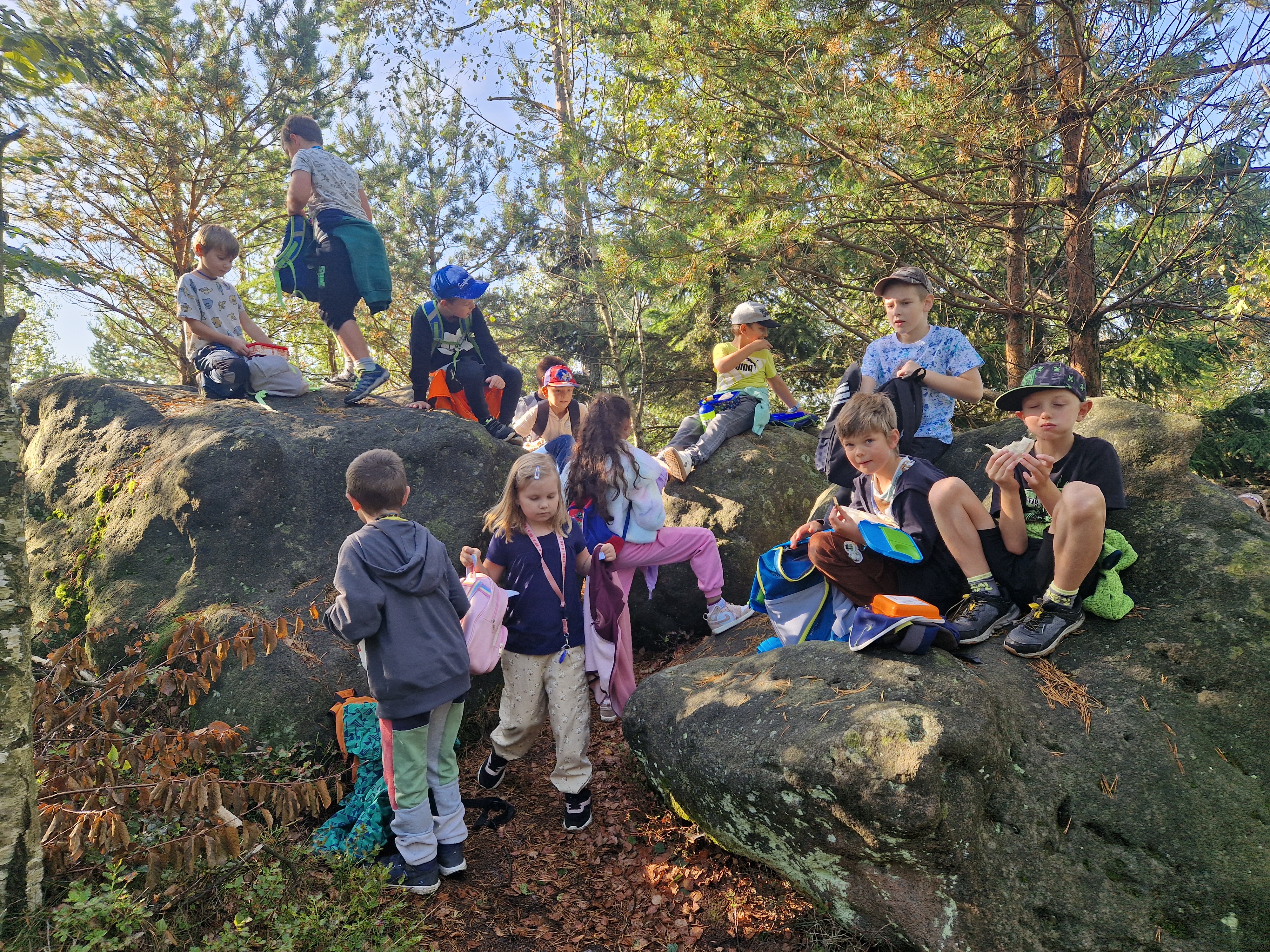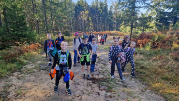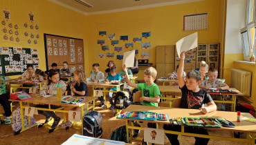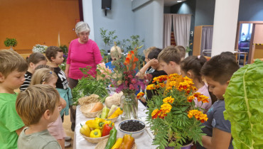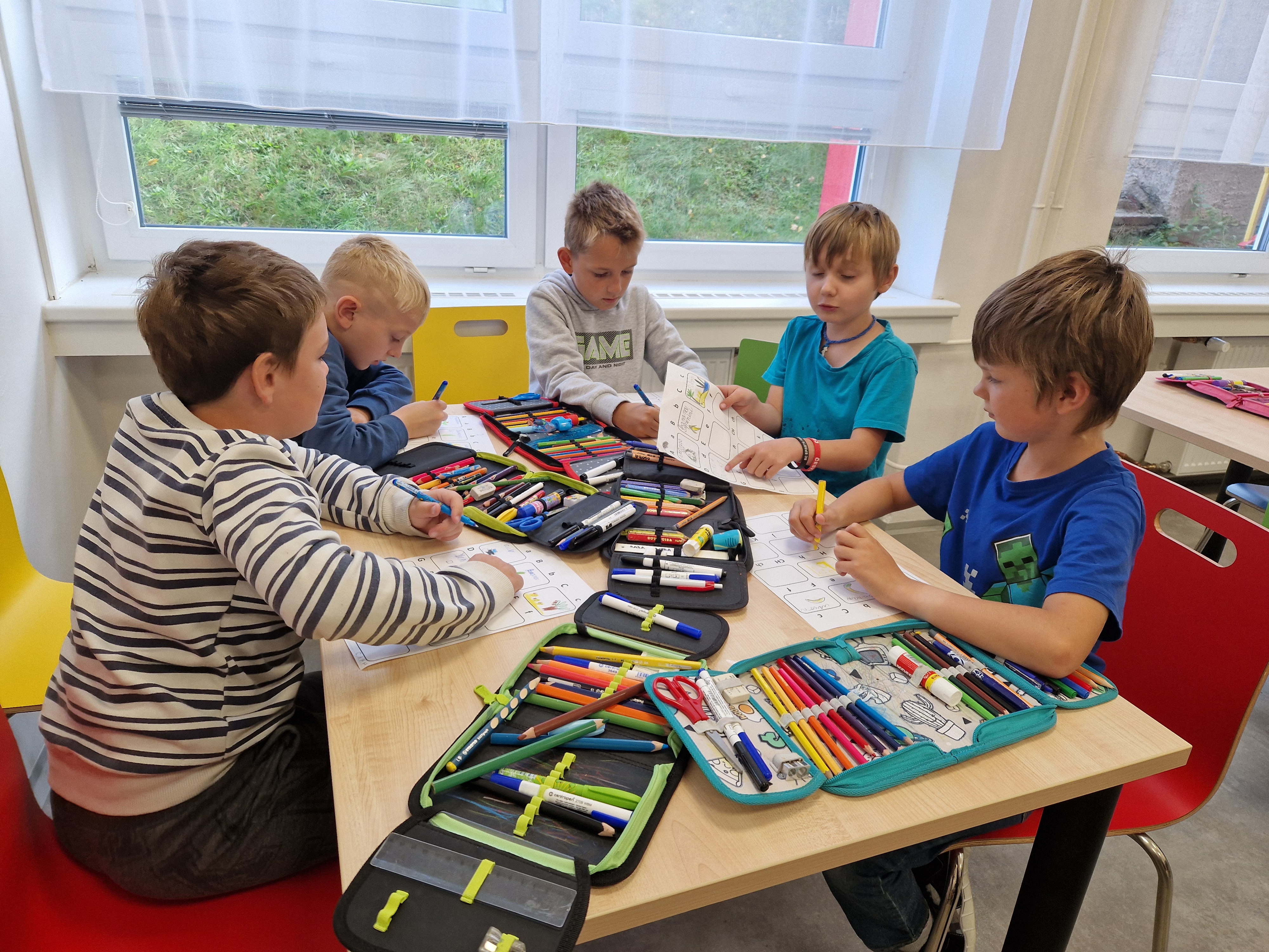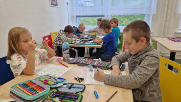 Tento školní rok nás bude provázet téma piráti. Celé září jsme proto zdobili třídu touto tématikou. Vyráběli jsme ryby, žraloky, chobotnice, medúzy a kraby. Vymýšleli jsme si společně pirátská pravidla, která jsou důležitá, aby nám všem bylo ve třídě dobře. První týden jsme vyrazili na pirátskou stezku a plnili během ní různé úkoly. Na konci nás čekal za odměnu poklad. Také nás jeden den učili žáci devátých ročníků - dětem se tento den moc líbil. Třetí týden v září jsme využili hezkého počasí a vyrazili na výlet na Slavný. Poznávali jsme po cestě stromy a keře, dali si svačinu na skalách a postavili domečky pro skřítky. Navštívili jsme také Zahrádkářskou výstavu v Pellyho domech, kde jsme si zopakovali ovoce a zeleninu našich zahrádek, prohlédli si květiny, kaktusy a koutek M. D. Rettigové. A nesměl chybět pokrm z mrkve- mrkvová buchta, kterou jsme společně upekli ve školní kuchyňce a pak také s chutí společně snědli.