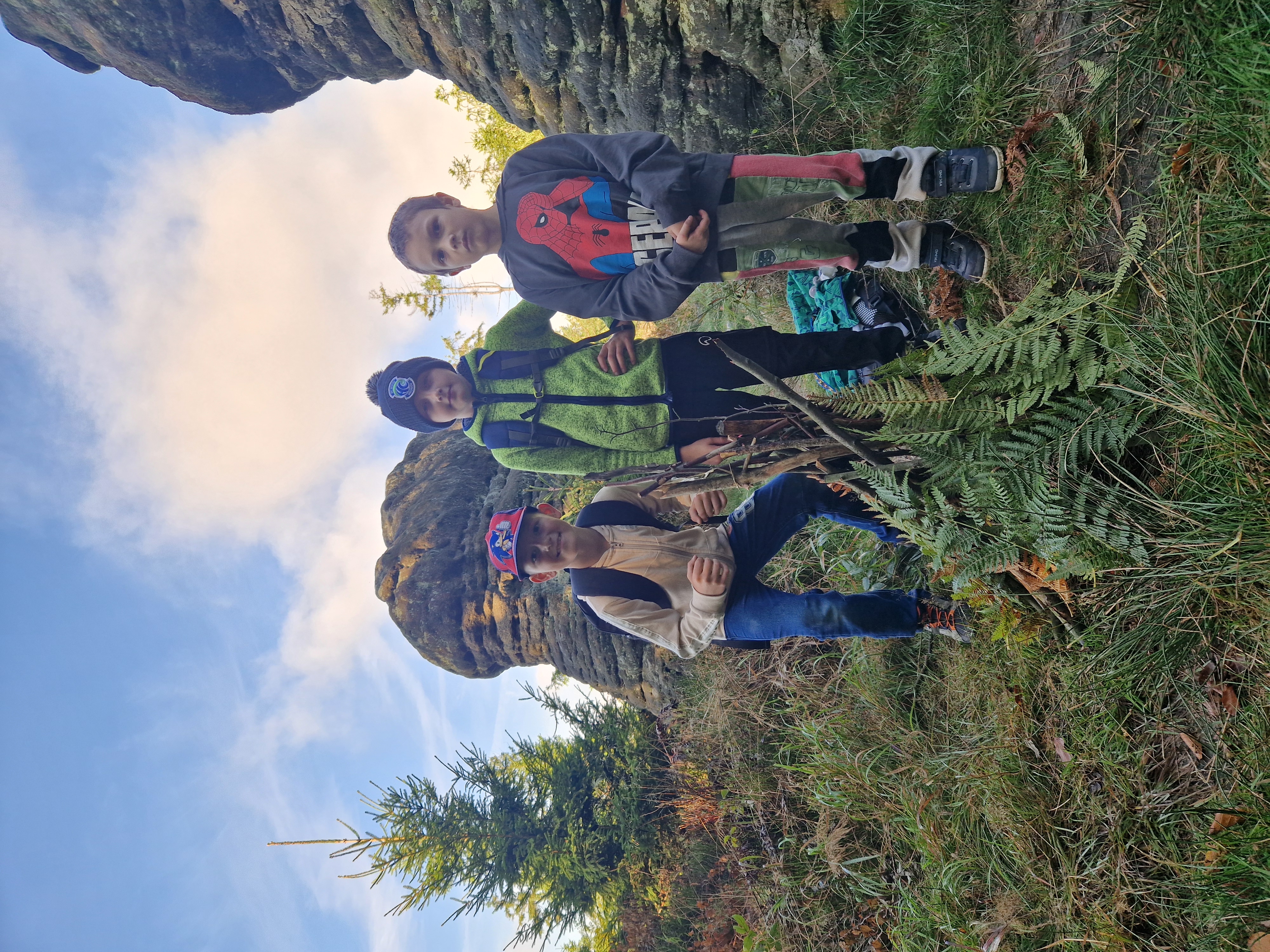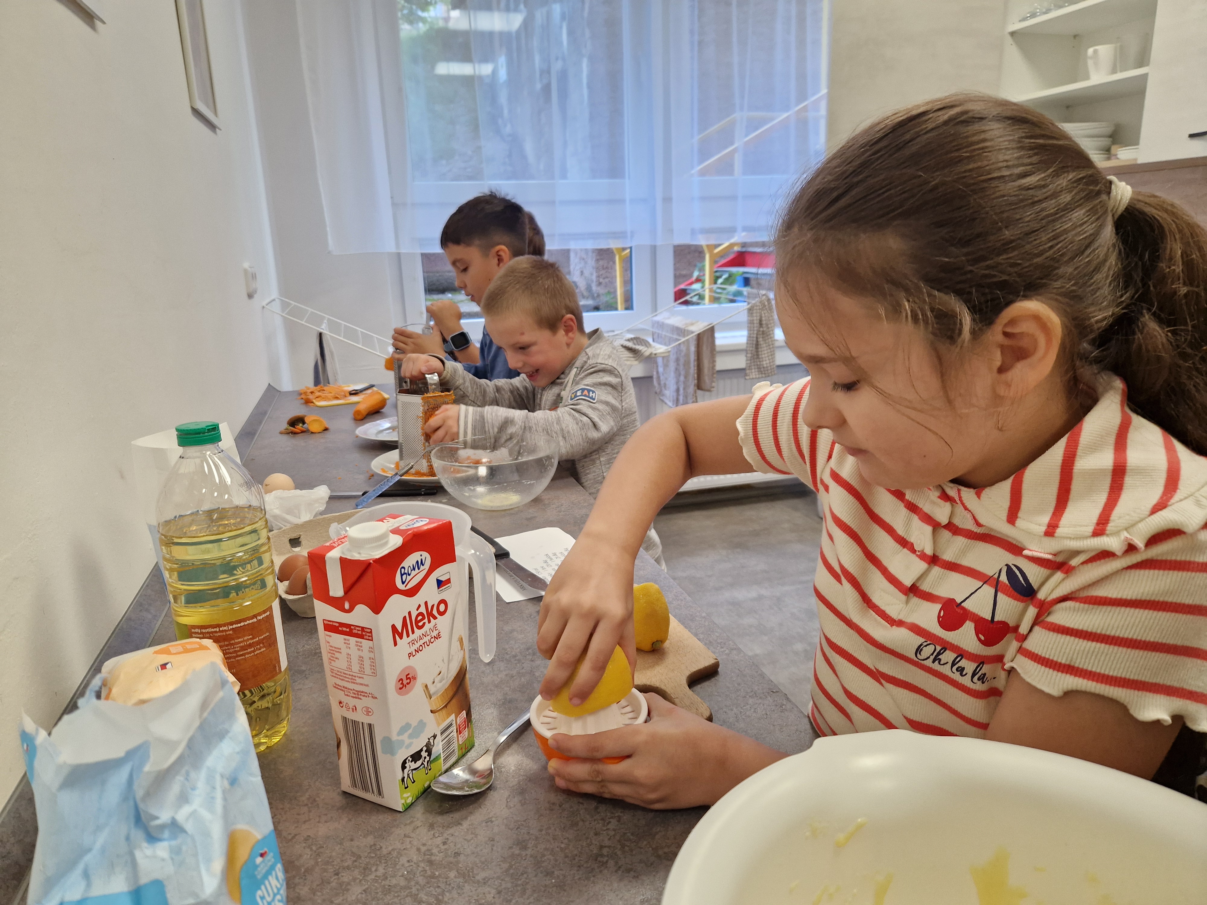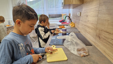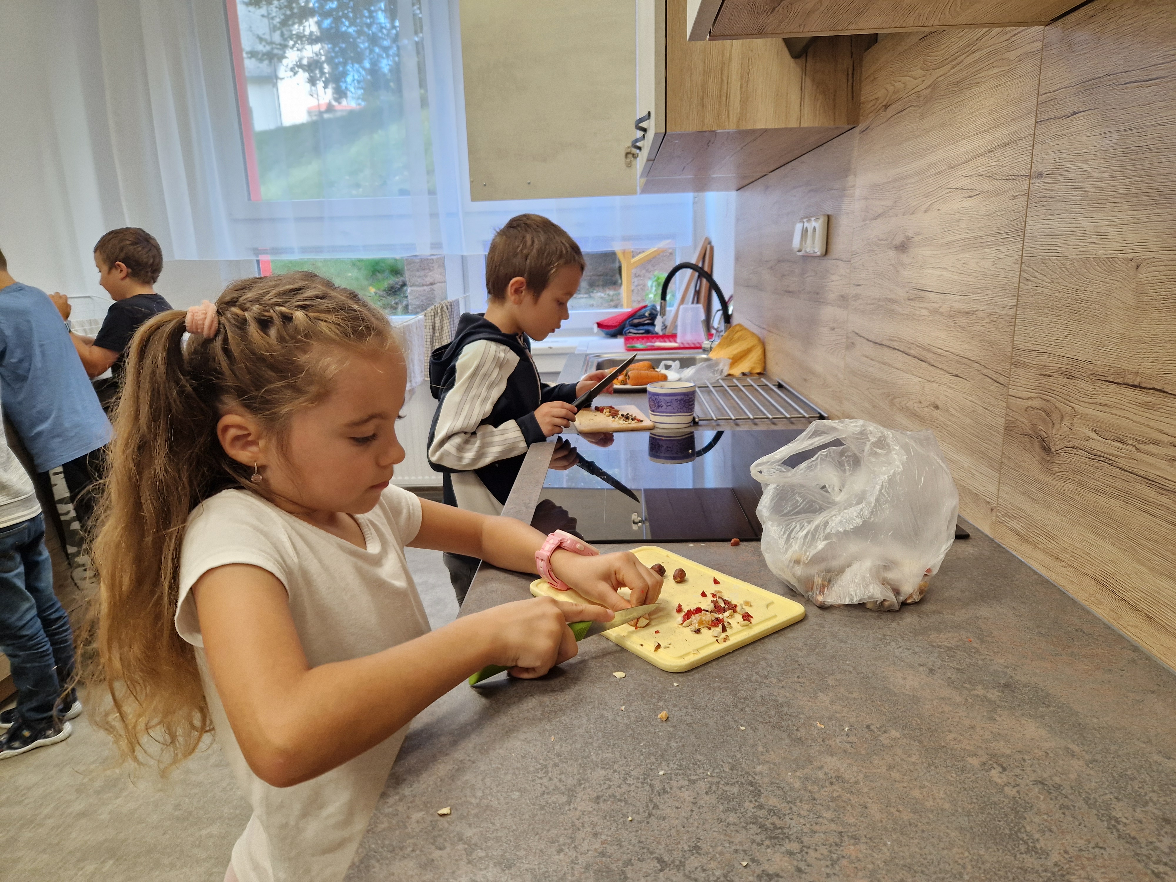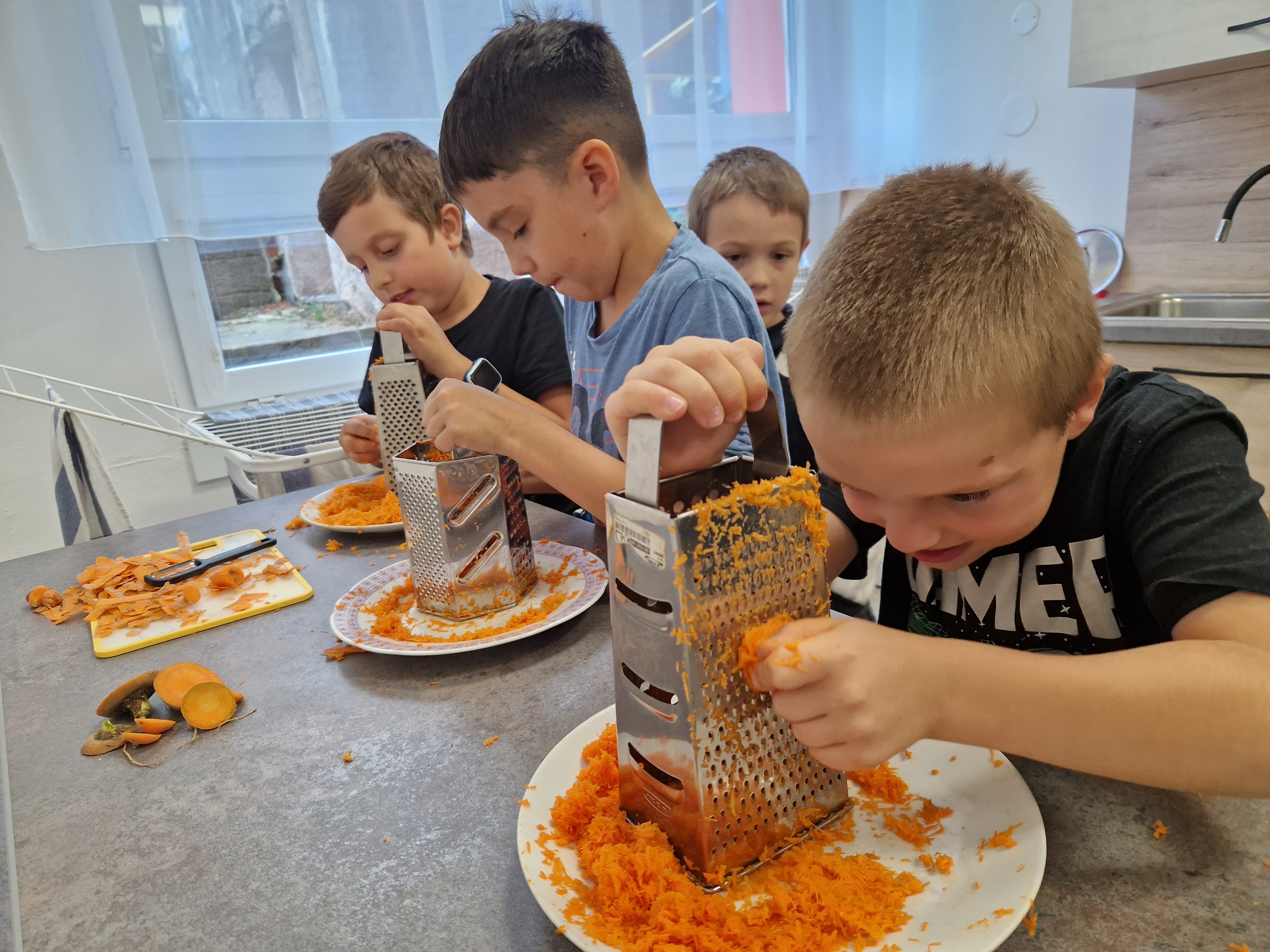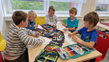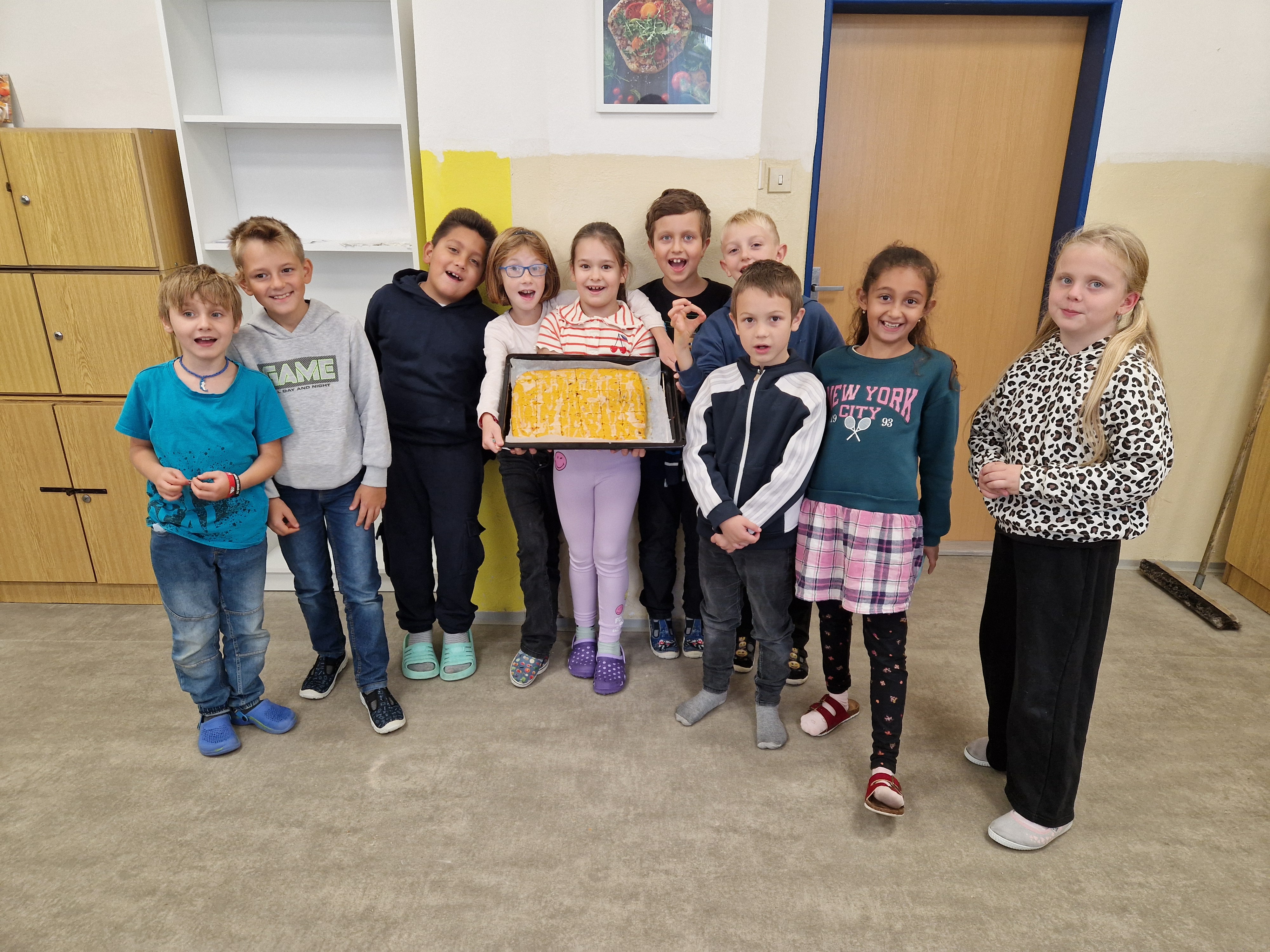 Tento školní rok nás bude provázet téma piráti. Celé září jsme proto zdobili třídu touto tématikou. Vyráběli jsme ryby, žraloky, chobotnice, medúzy a kraby. Vymýšleli jsme si společně pirátská pravidla, která jsou důležitá, aby nám všem bylo ve třídě dobře. První týden jsme vyrazili na pirátskou stezku a plnili během ní různé úkoly. Na konci nás čekal za odměnu poklad. Také nás jeden den učili žáci devátých ročníků - dětem se tento den moc líbil. Třetí týden v září jsme využili hezkého počasí a vyrazili na výlet na Slavný. Poznávali jsme po cestě stromy a keře, dali si svačinu na skalách a postavili domečky pro skřítky. Navštívili jsme také Zahrádkářskou výstavu v Pellyho domech, kde jsme si zopakovali ovoce a zeleninu našich zahrádek, prohlédli si květiny, kaktusy a koutek M. D. Rettigové. A nesměl chybět pokrm z mrkve- mrkvová buchta, kterou jsme společně upekli ve školní kuchyňce a pak také s chutí společně snědli.