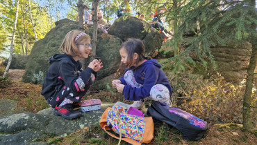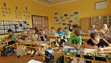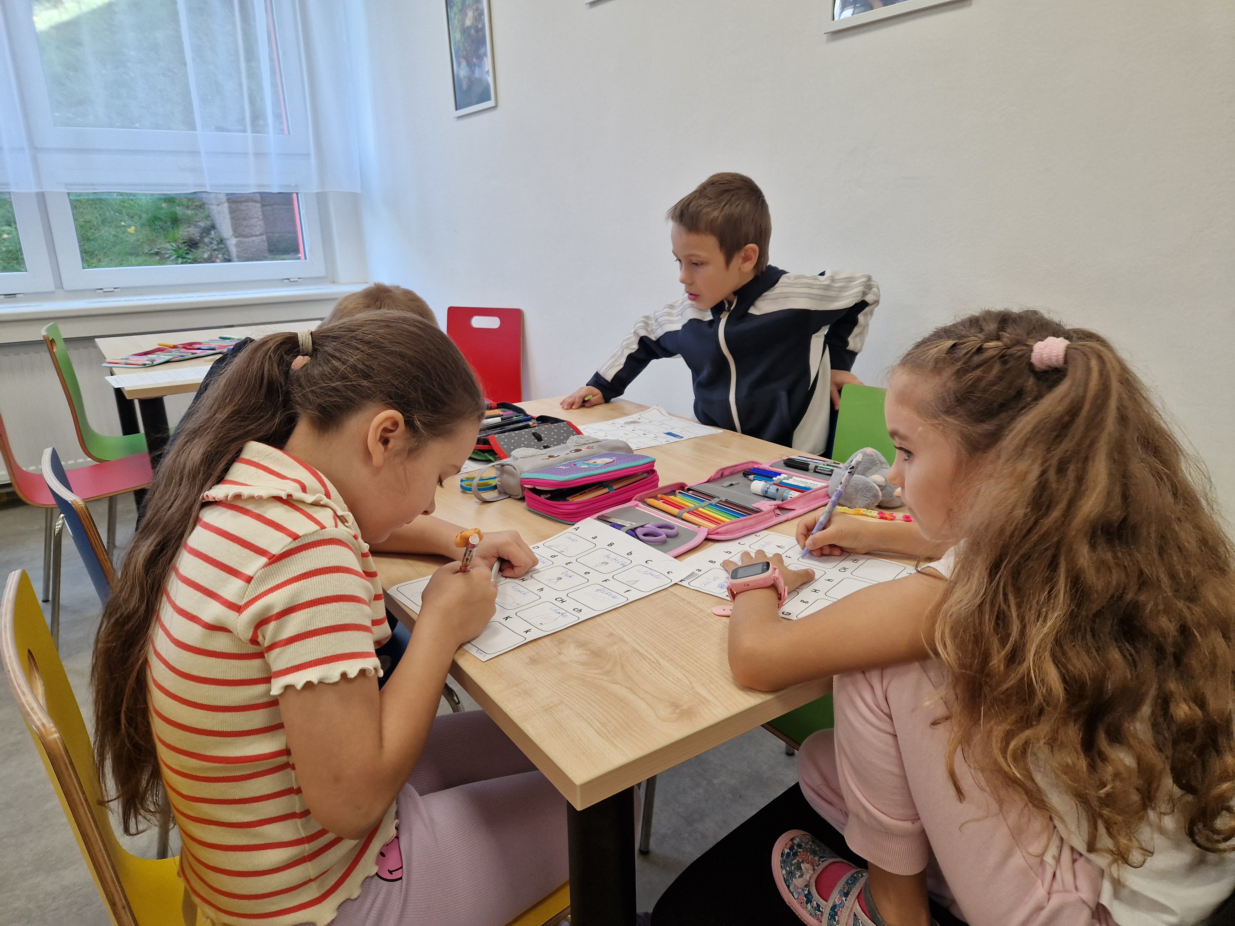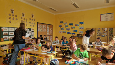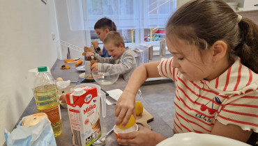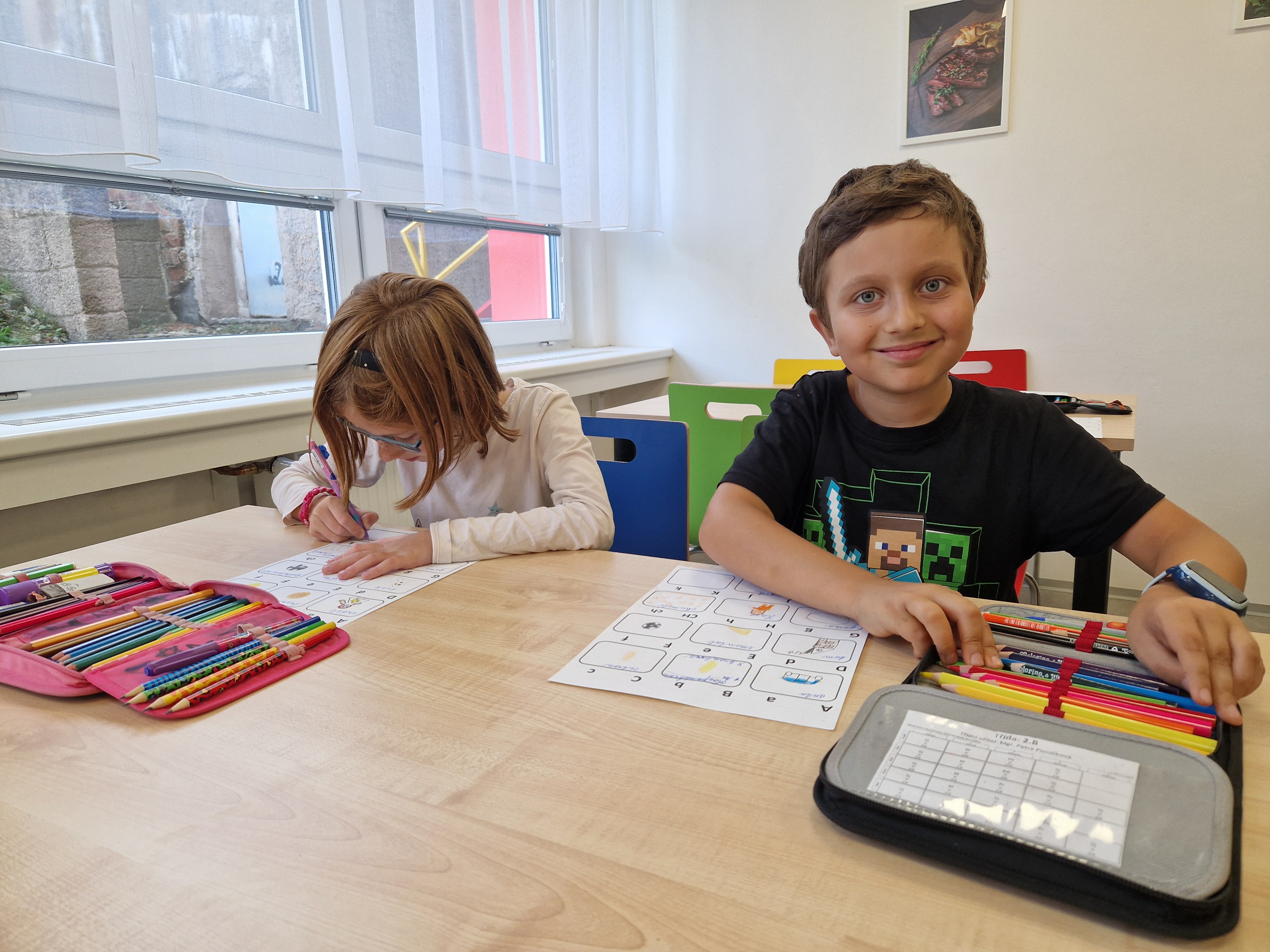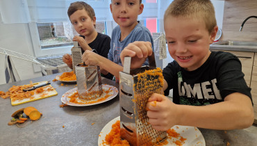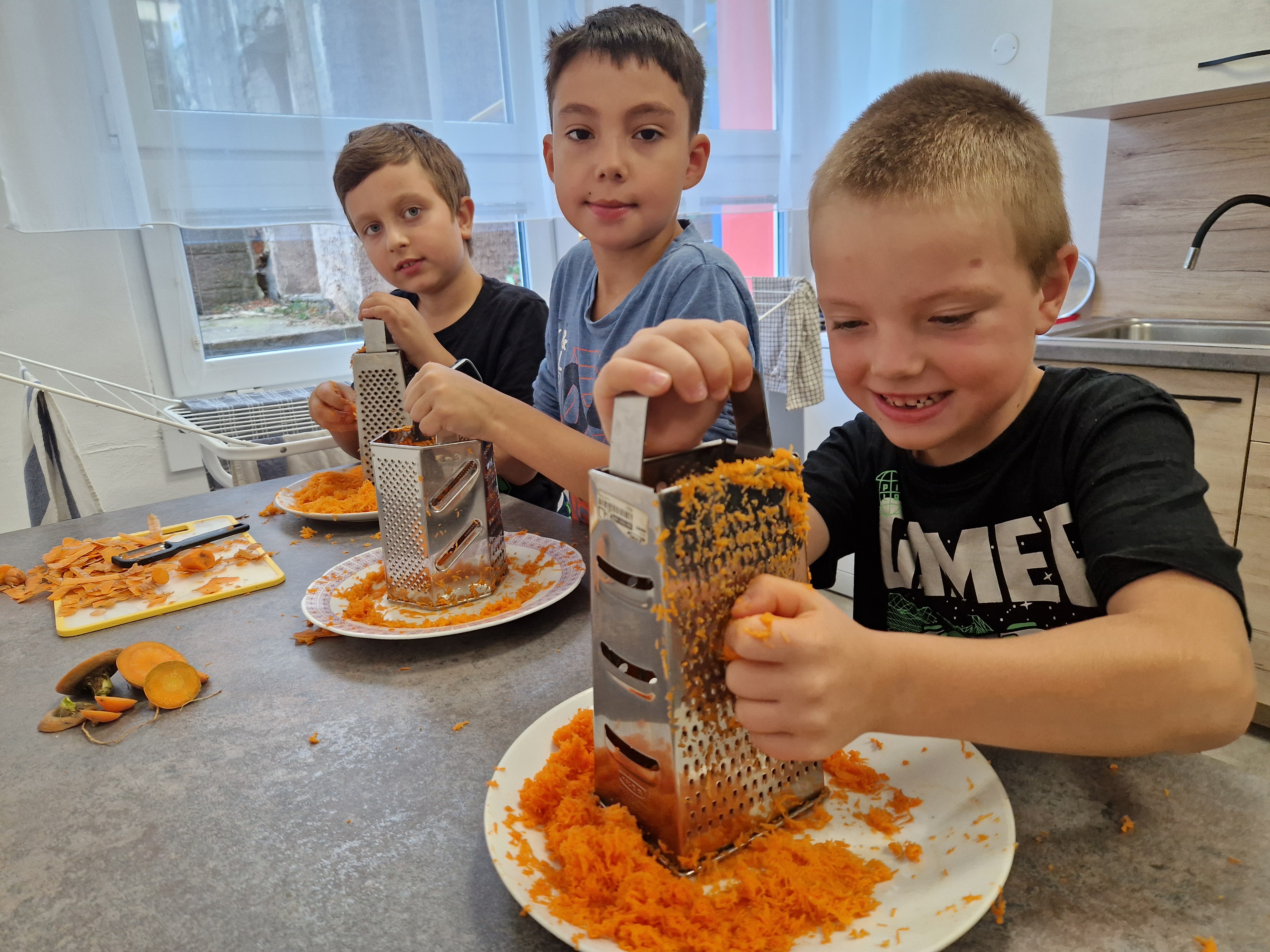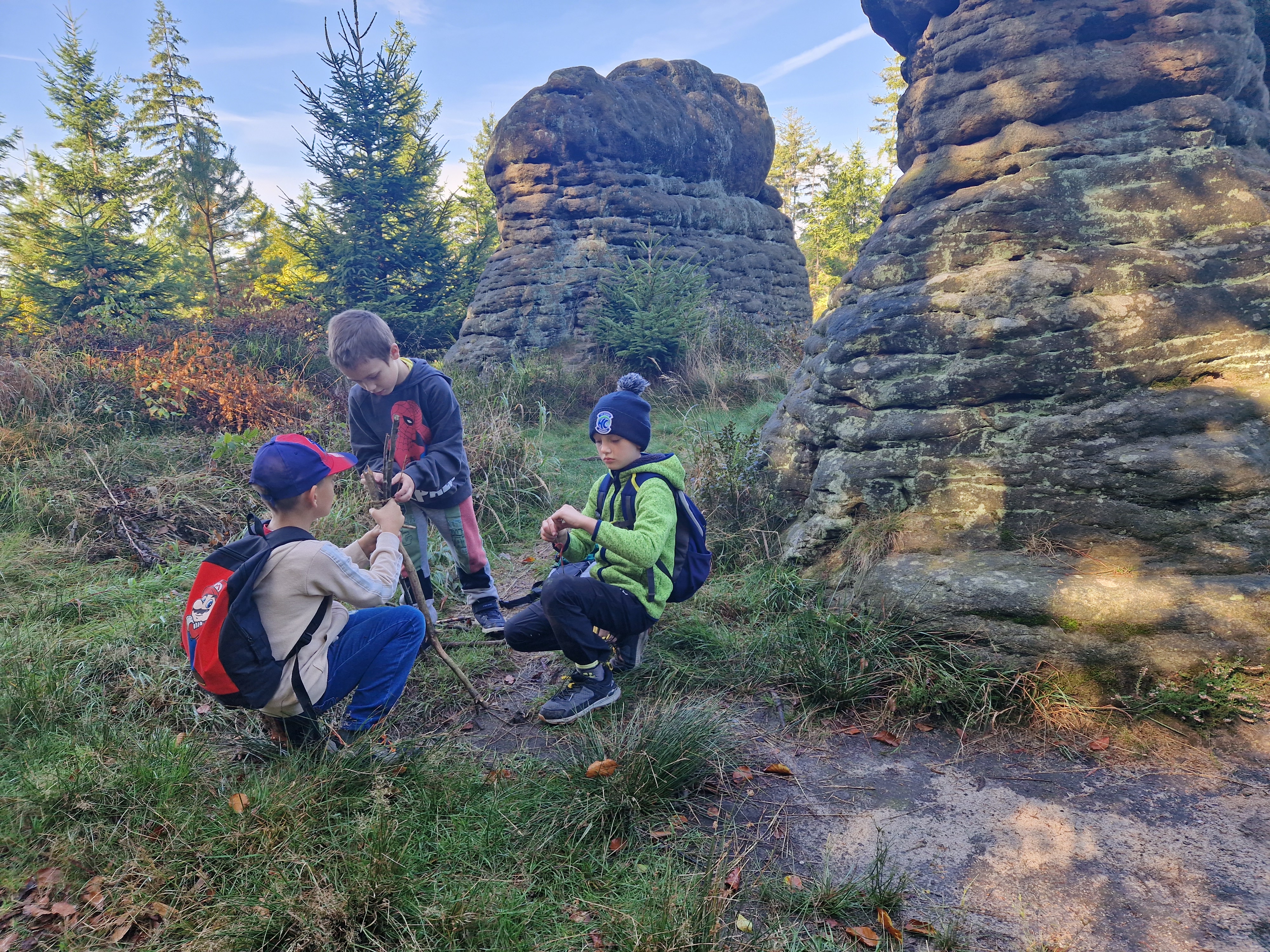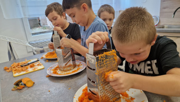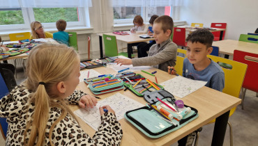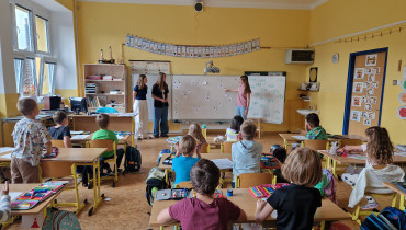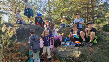 Tento školní rok nás bude provázet téma piráti. Celé září jsme proto zdobili třídu touto tématikou. Vyráběli jsme ryby, žraloky, chobotnice, medúzy a kraby. Vymýšleli jsme si společně pirátská pravidla, která jsou důležitá, aby nám všem bylo ve třídě dobře. První týden jsme vyrazili na pirátskou stezku a plnili během ní různé úkoly. Na konci nás čekal za odměnu poklad. Také nás jeden den učili žáci devátých ročníků - dětem se tento den moc líbil. Třetí týden v září jsme využili hezkého počasí a vyrazili na výlet na Slavný. Poznávali jsme po cestě stromy a keře, dali si svačinu na skalách a postavili domečky pro skřítky. Navštívili jsme také Zahrádkářskou výstavu v Pellyho domech, kde jsme si zopakovali ovoce a zeleninu našich zahrádek, prohlédli si květiny, kaktusy a koutek M. D. Rettigové. A nesměl chybět pokrm z mrkve- mrkvová buchta, kterou jsme společně upekli ve školní kuchyňce a pak také s chutí společně snědli.